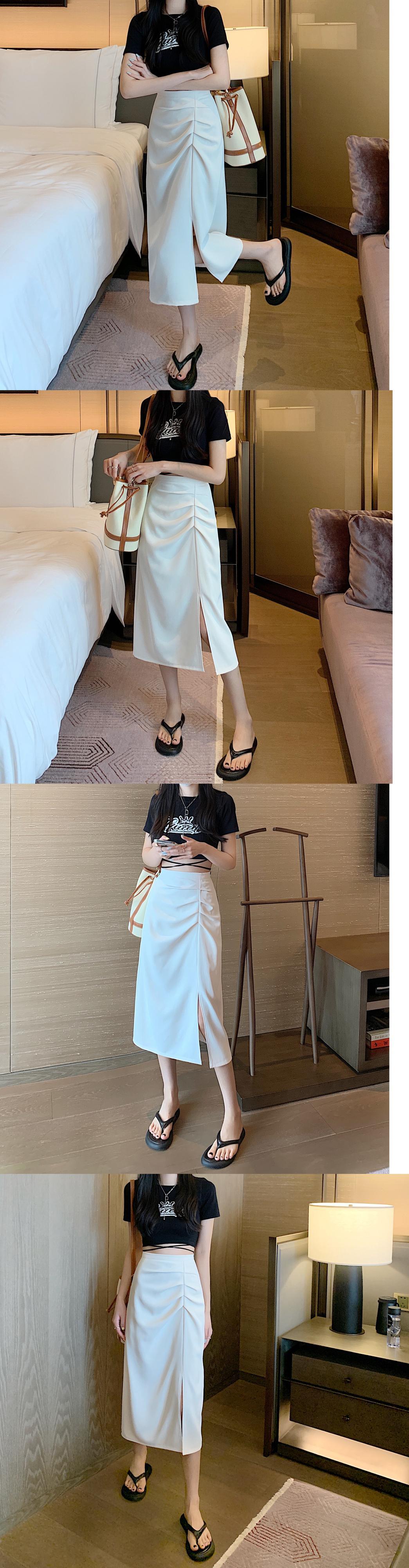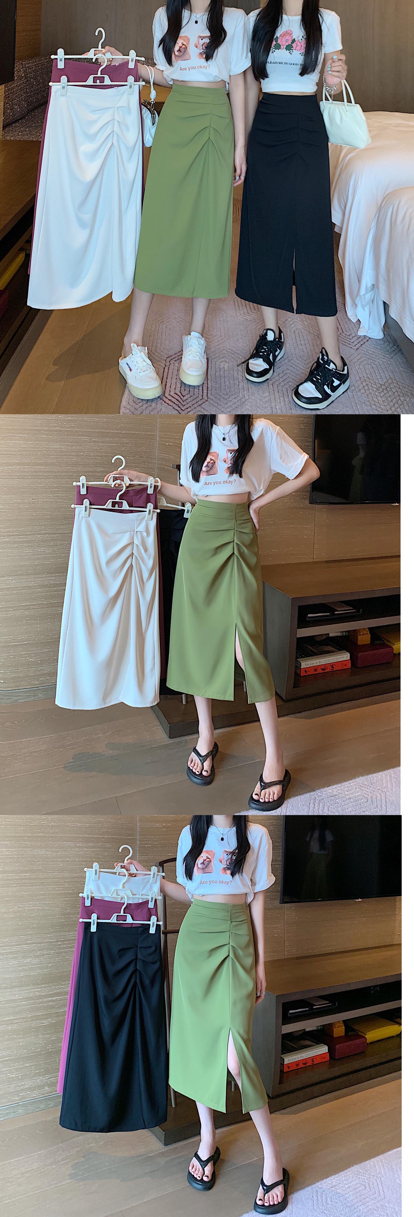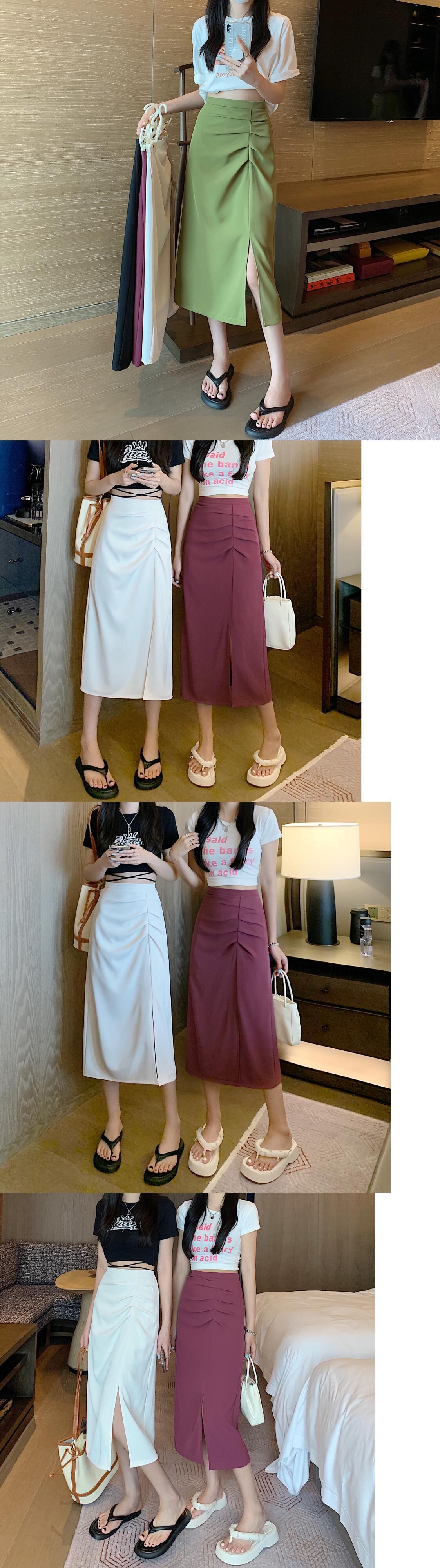 ラズベリーカラースプリットスカートレディースサマーハイウエストバッグヒップAラインロングスカートサマーシェイクスカートスモールサマー ハイウェスト 夏物 746006358144396 | framboise21