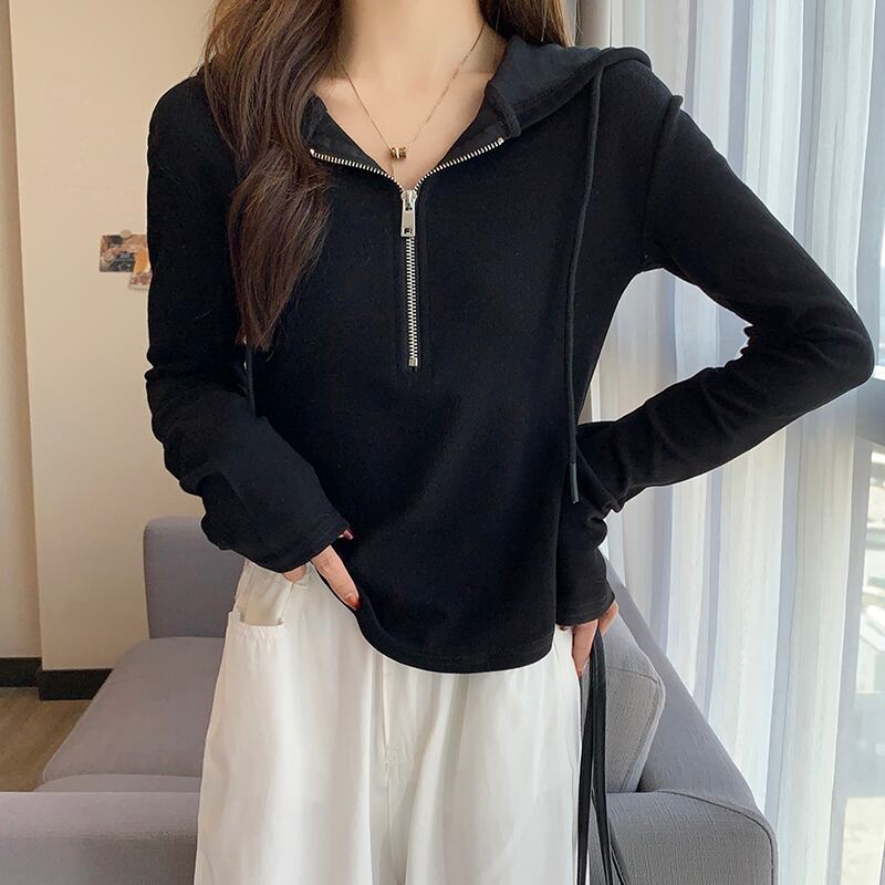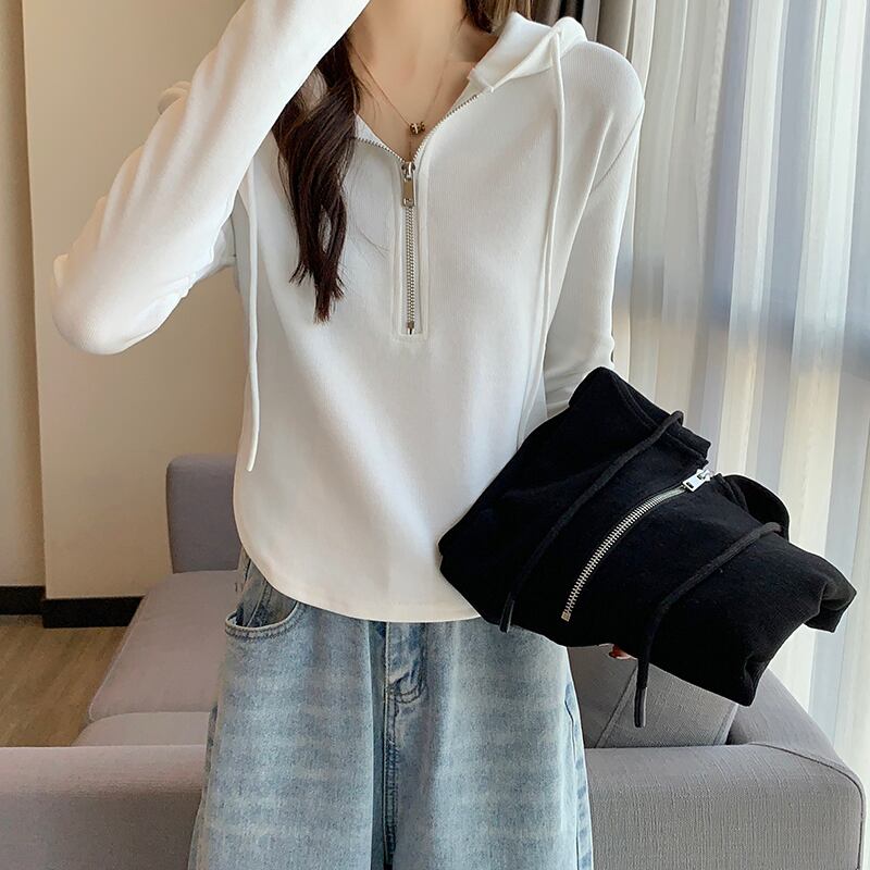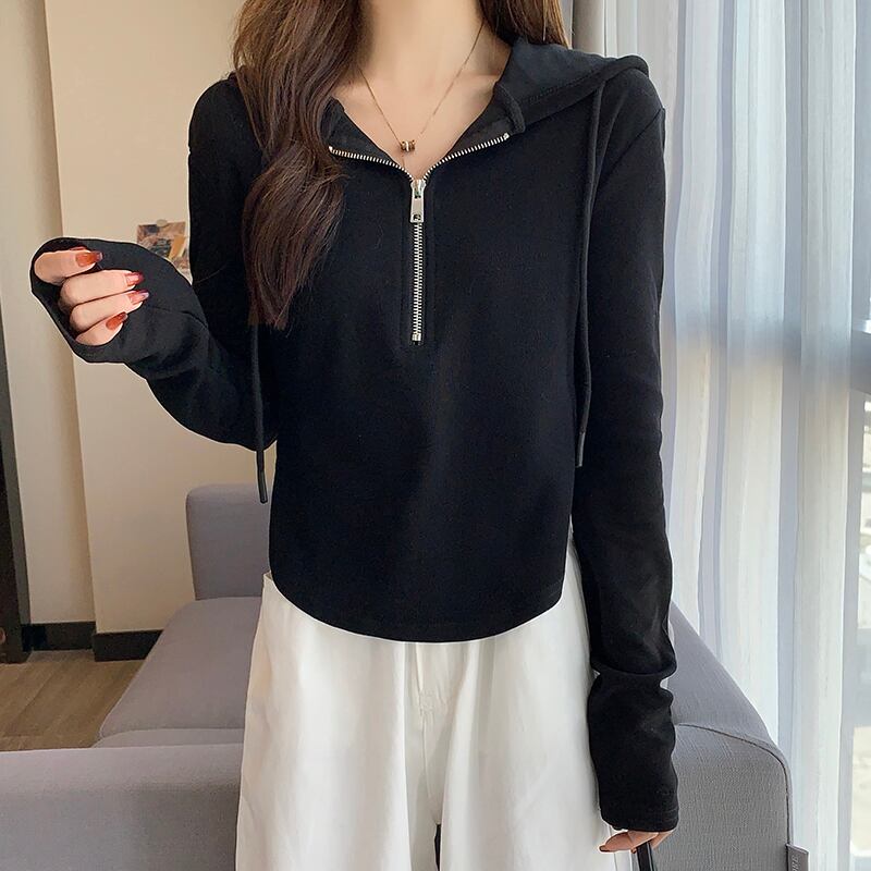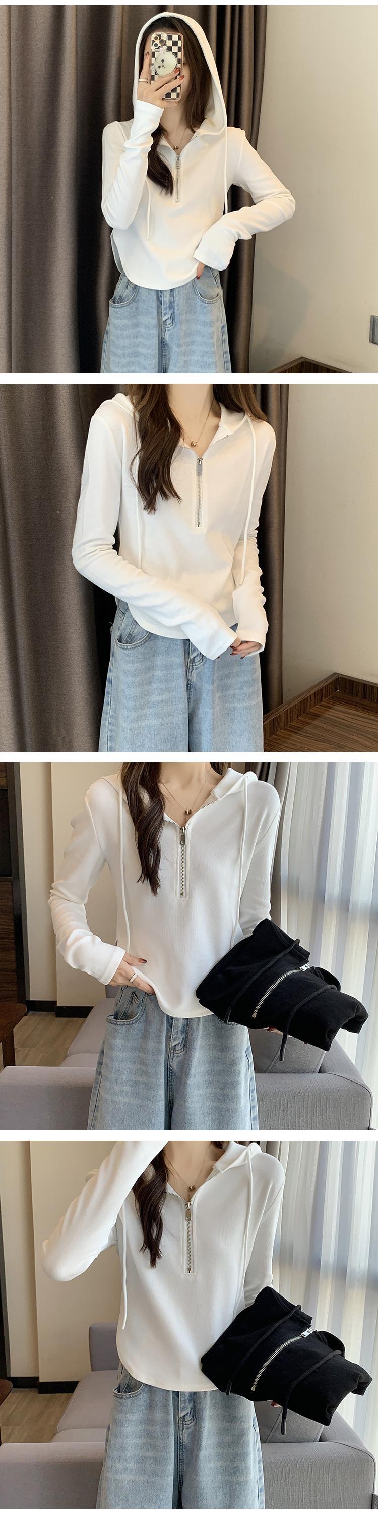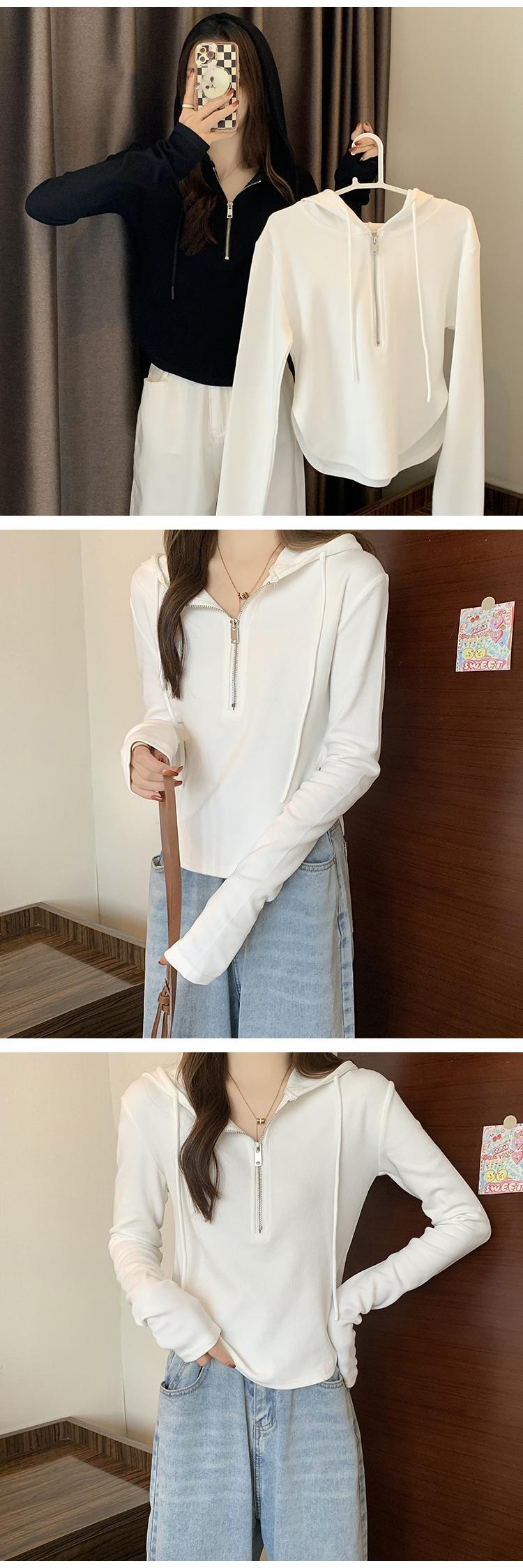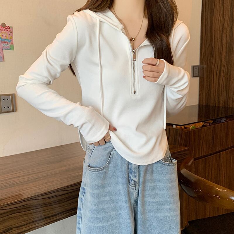 春と秋の2022年の新しい白い長袖トップの女性のデザインの不規則な短いスリットのフード付きのセーターのトレンド ショート ロング ホワイト スプリング 春物 オータム 秋物 7460099208168283 | framboise21