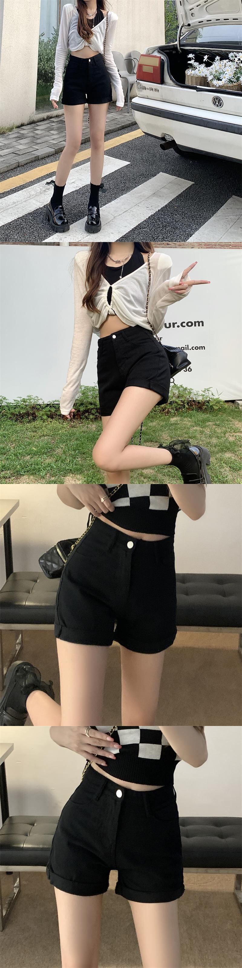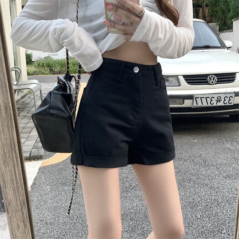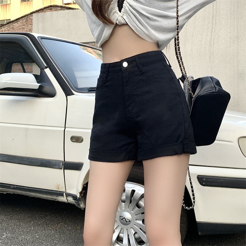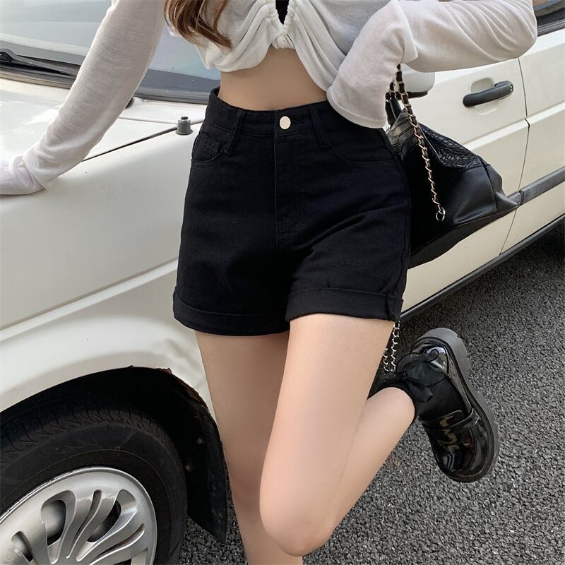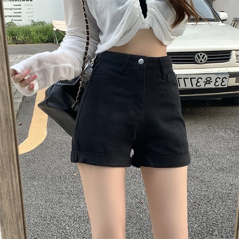 ブラックデニムショートパンツ女性の夏の薄いハイウエストパンツネットレッドのデザインは、薄くて巻き毛のハイウエストAラインパンツです サマー 夏物 ショーツ ブルマー 746005975201254 | framboise21