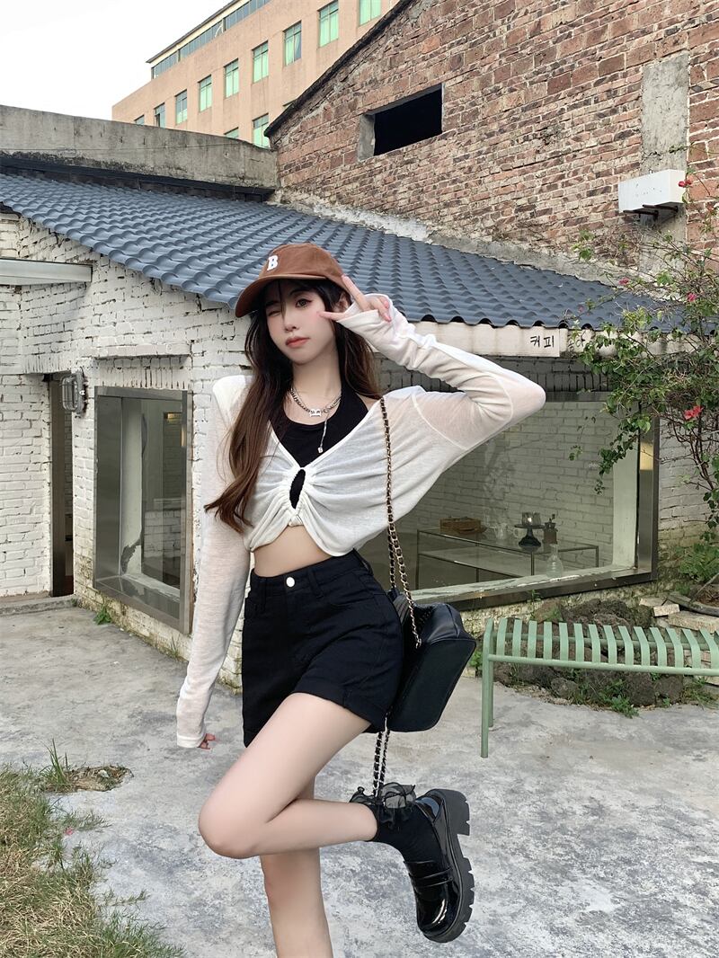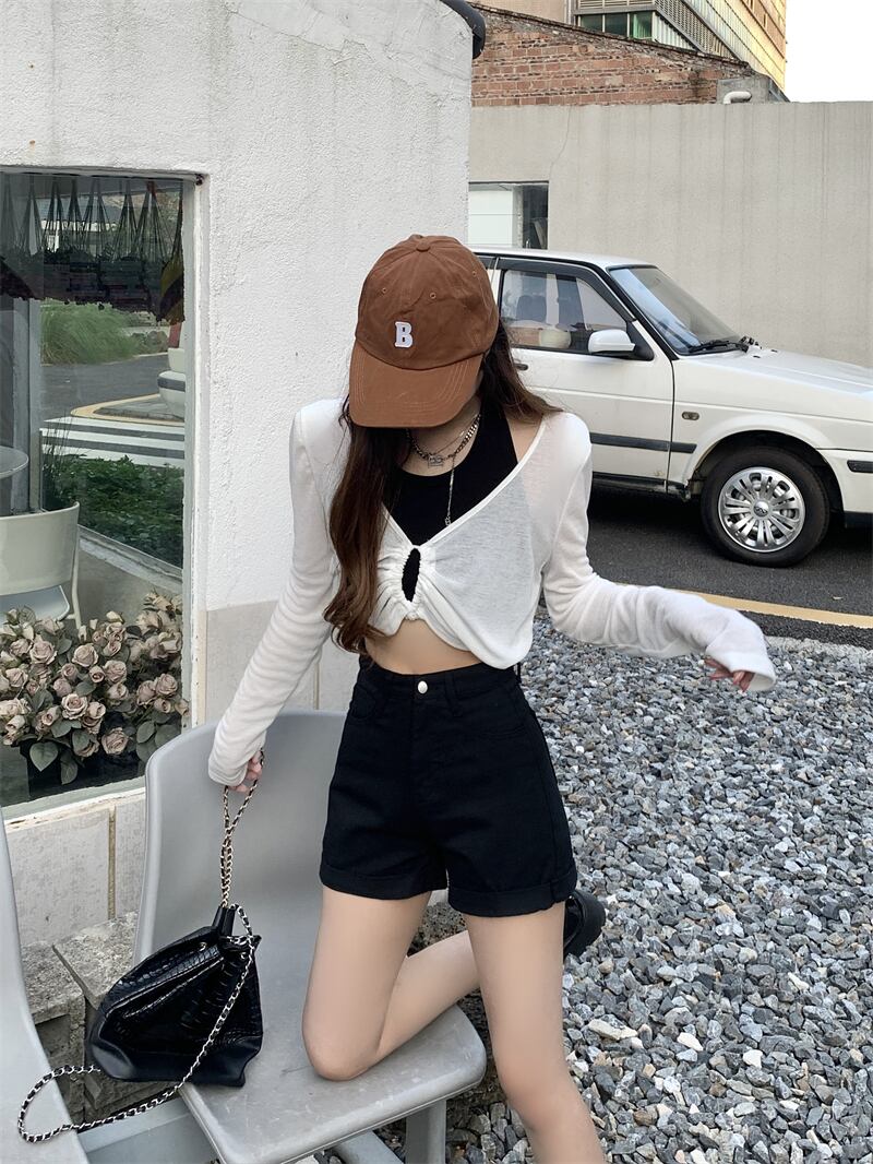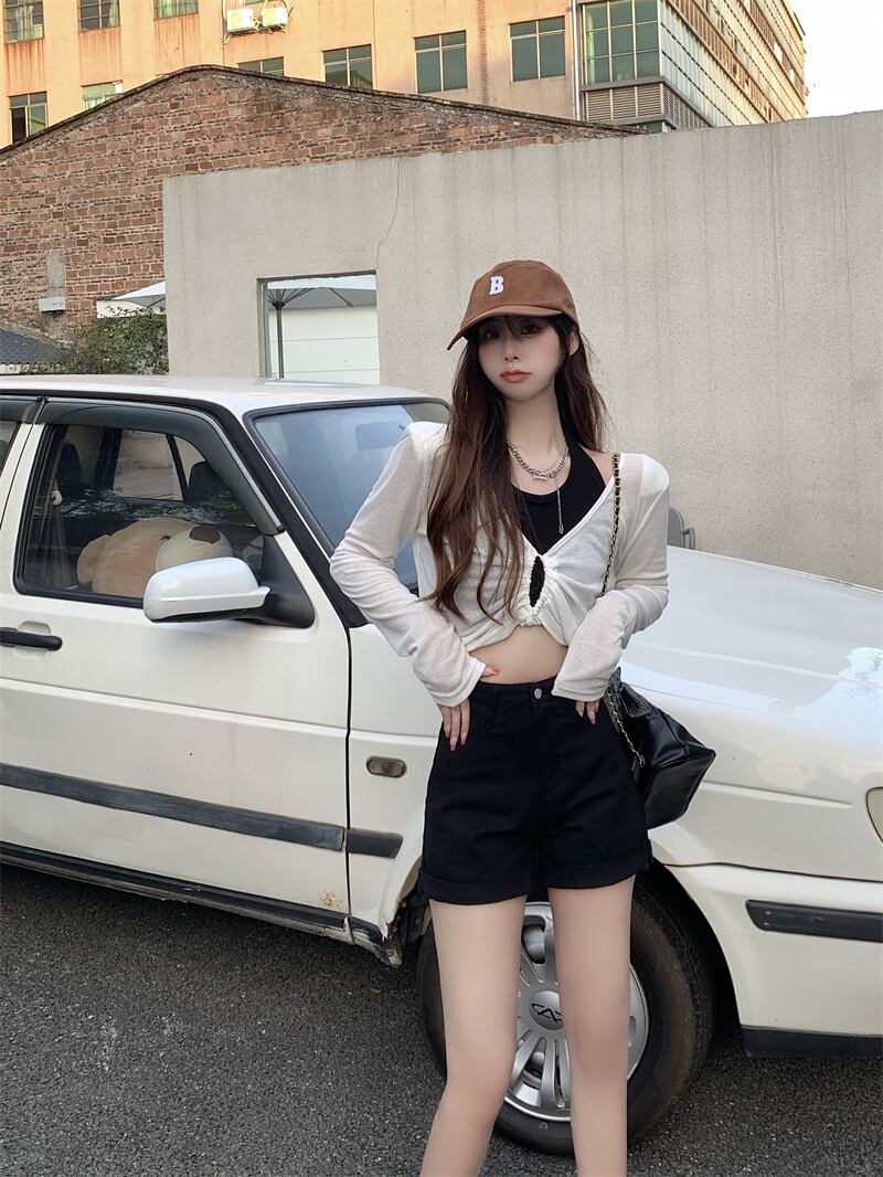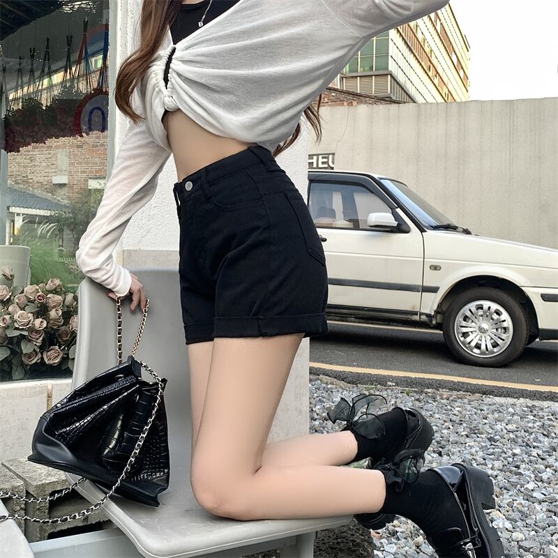ブラックデニムショートパンツ女性の夏の薄いハイウエストパンツネットレッドのデザインは、薄くて巻き毛のハイウエストAラインパンツです サマー 夏物 ショーツ ブルマー 746005975201254 | framboise21