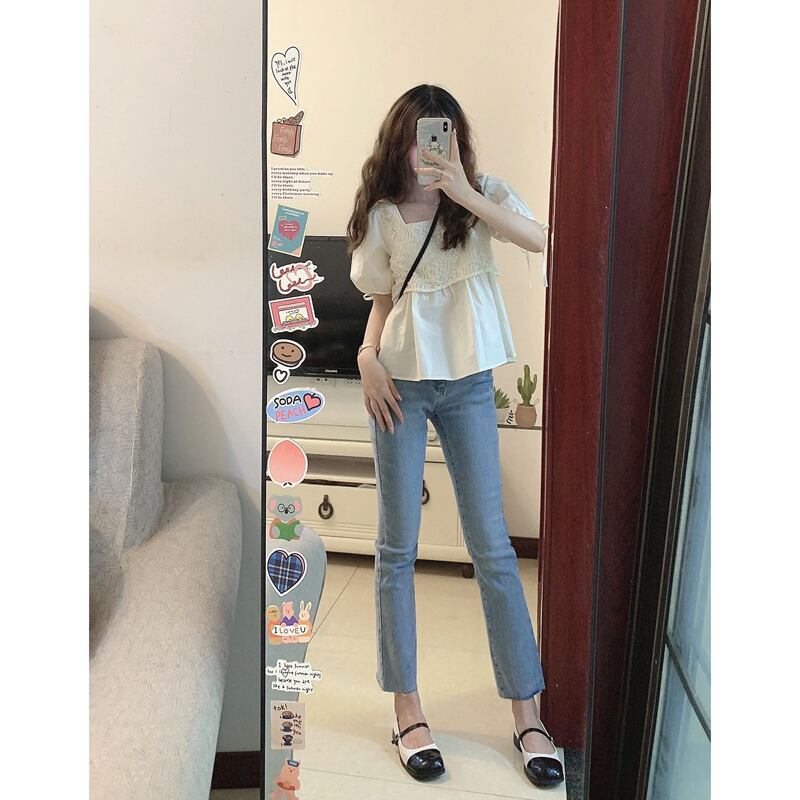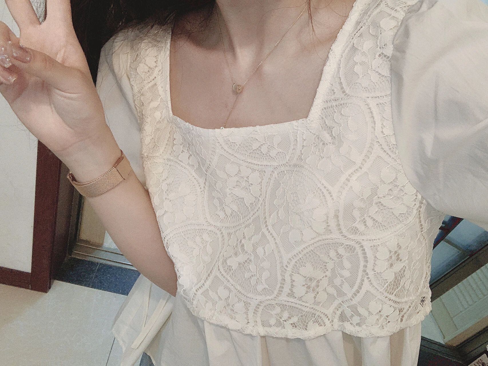 レーススクエアカラーシャツ女性の夏の薄いフェイクツーピースドールシャツファッションデザインショートバブル半袖トップ サマー 夏物 スクウェア 7460076100693491 | framboise21