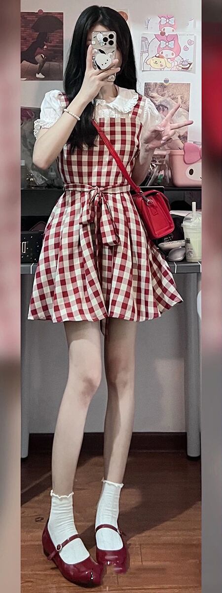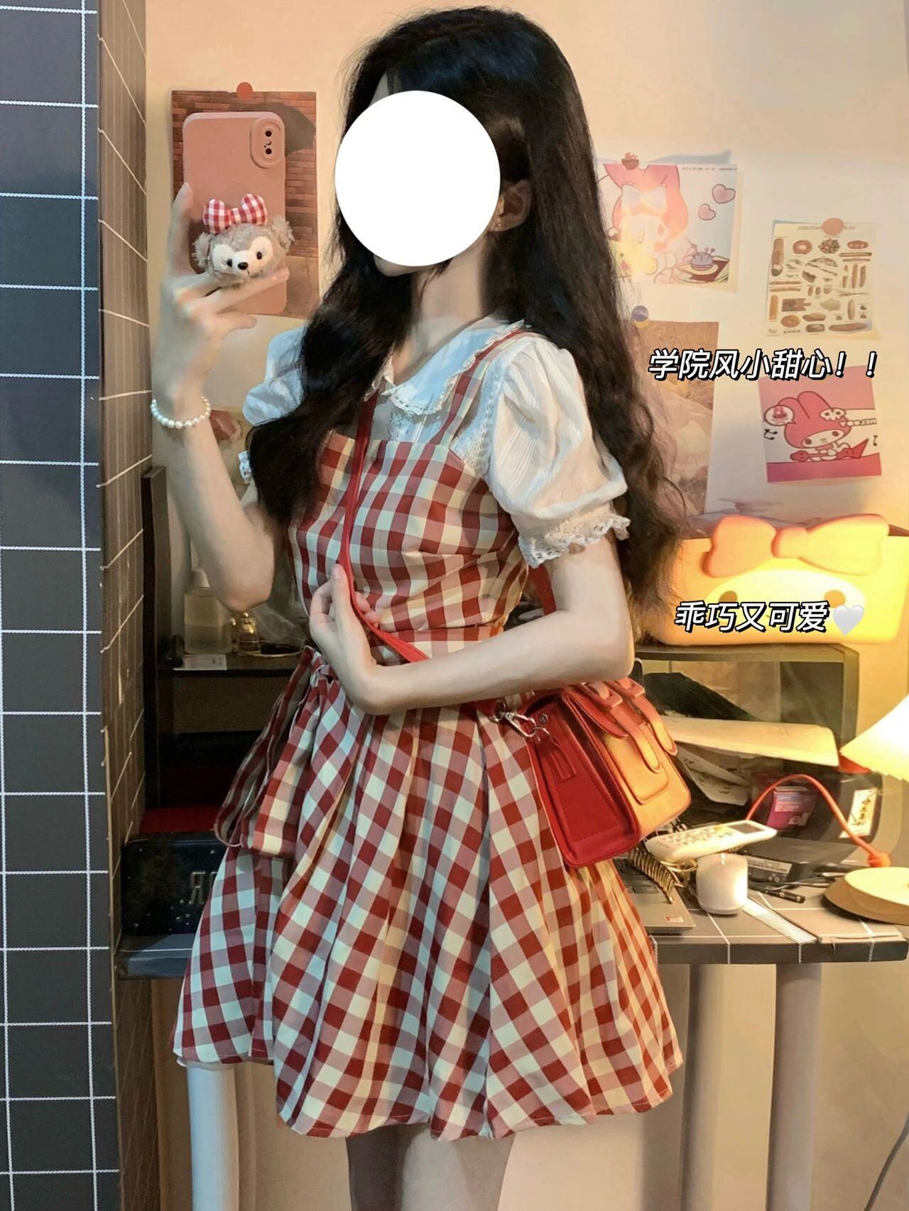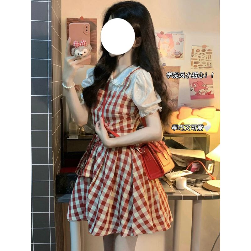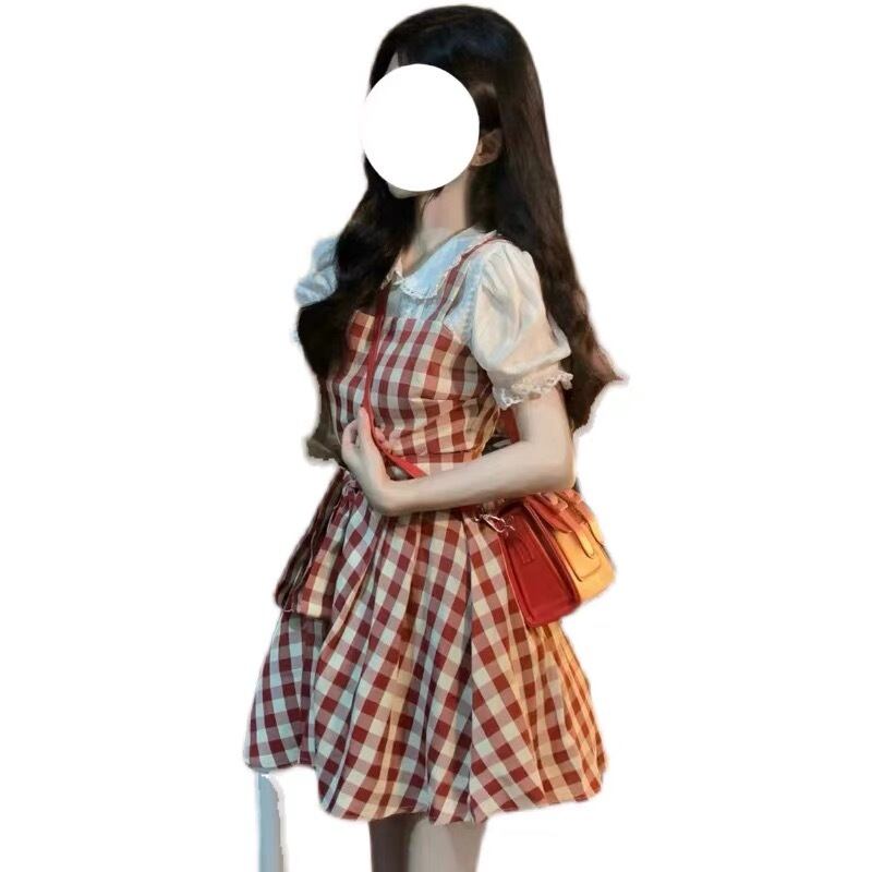 チェック柄ワンピース レディース 夏 ノースリーブ シャツ サスペンダースカート レトロなデザイン感 ウエスト細め 細身 ショートスカート サマー 夏物 7460031605722492 | framboise21