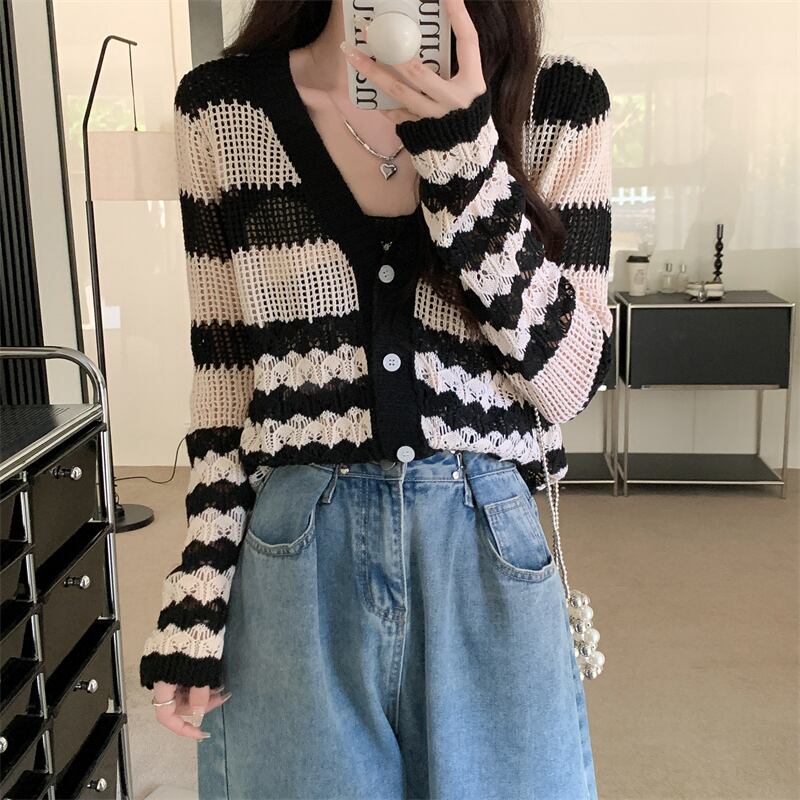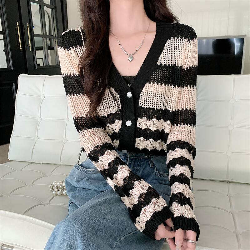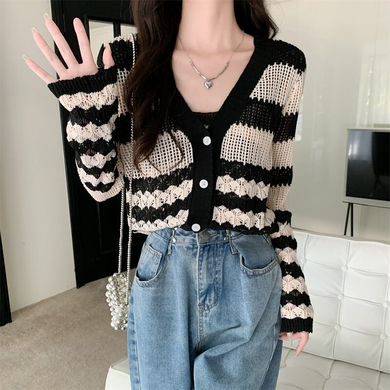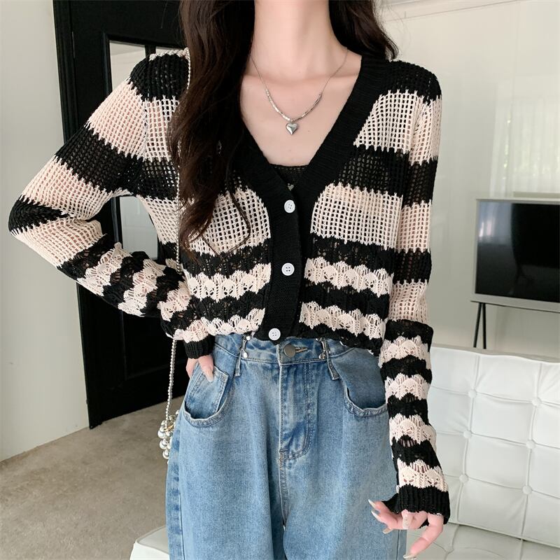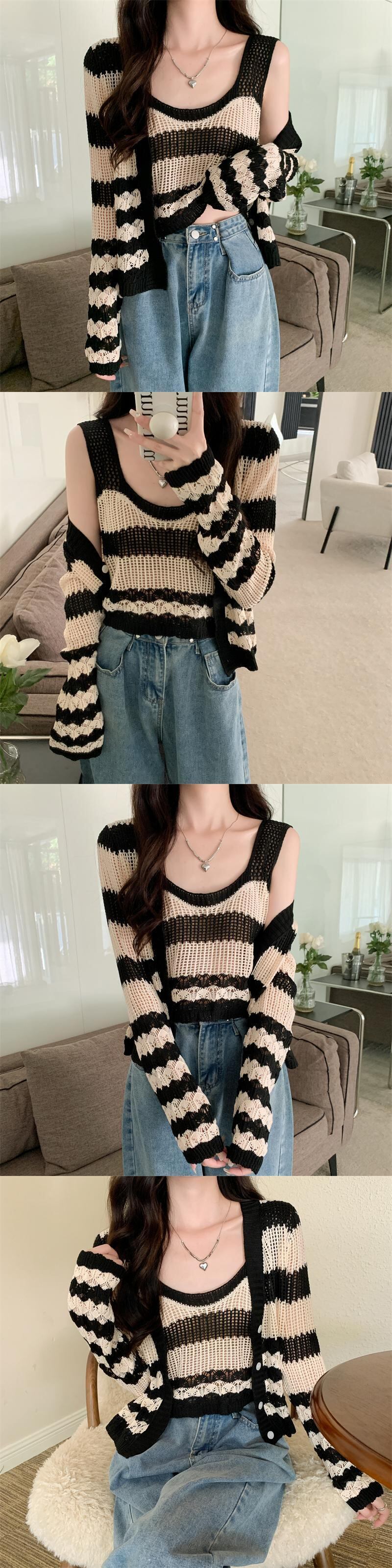 中空 日焼け止め カーディガン レディース 夏 薄手 ニット ブラウス 小さめ コート サスペンダー付き アウター 短め 冷房 シャツ 2点セット ショート サマー 夏物 7460042793178487 | framboise21