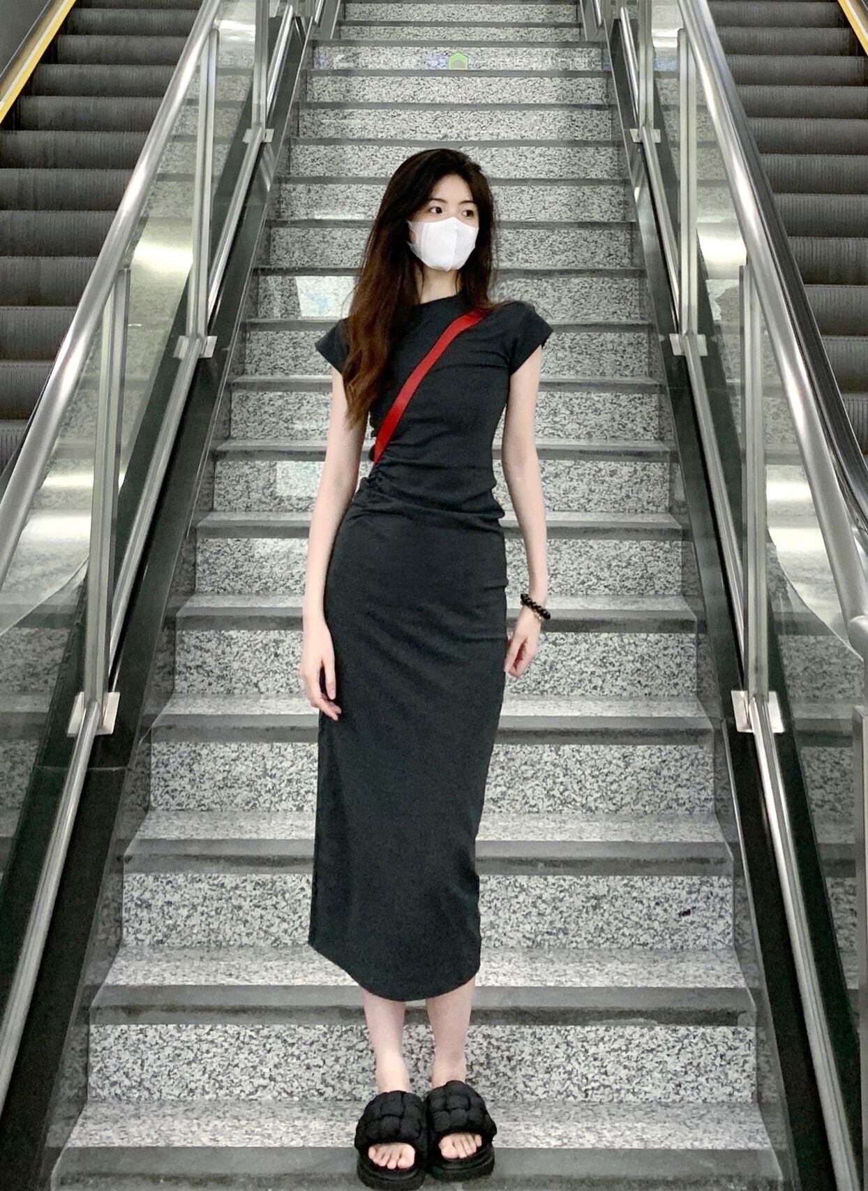 ダークグレー ワンピース レディース 夏 スリム バッグ ヒップ ロングスカート デザインセンス ウエスト 薄手 半袖 Tシャツ スカート サマー 夏物 7460041458443928 | framboise21