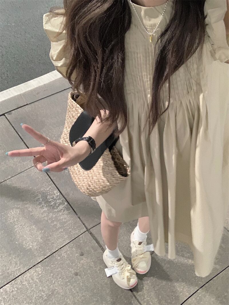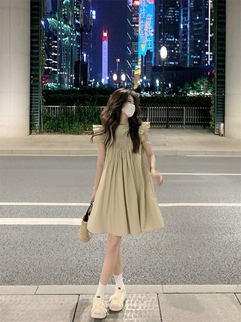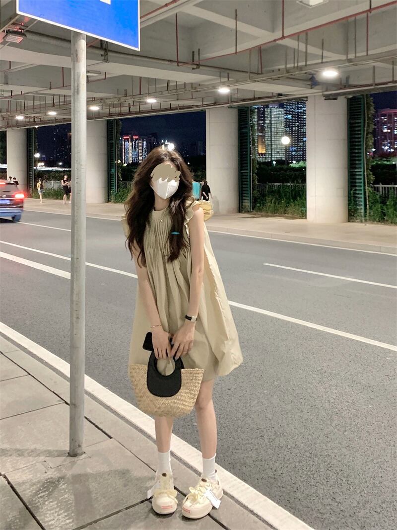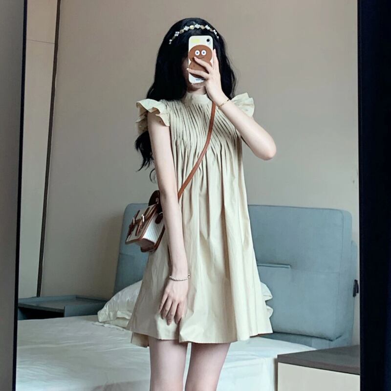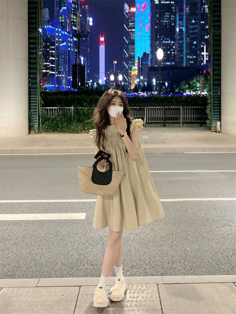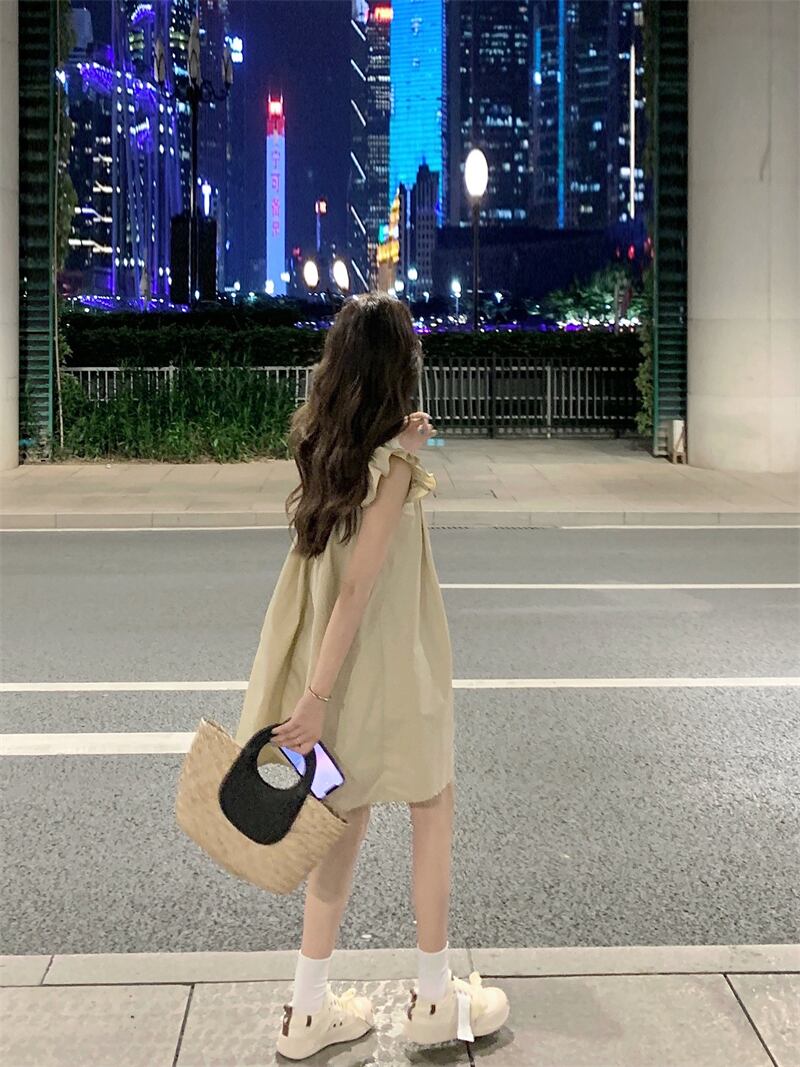 カーキ ノースリーブ ドレス女性の 2022 年夏新しいフレンチ レトロ デザイン センス フリル小さなフライング スリーブ スカート サマー 夏物 7460026812386612 | framboise21