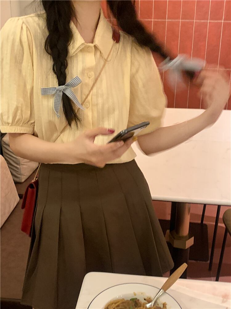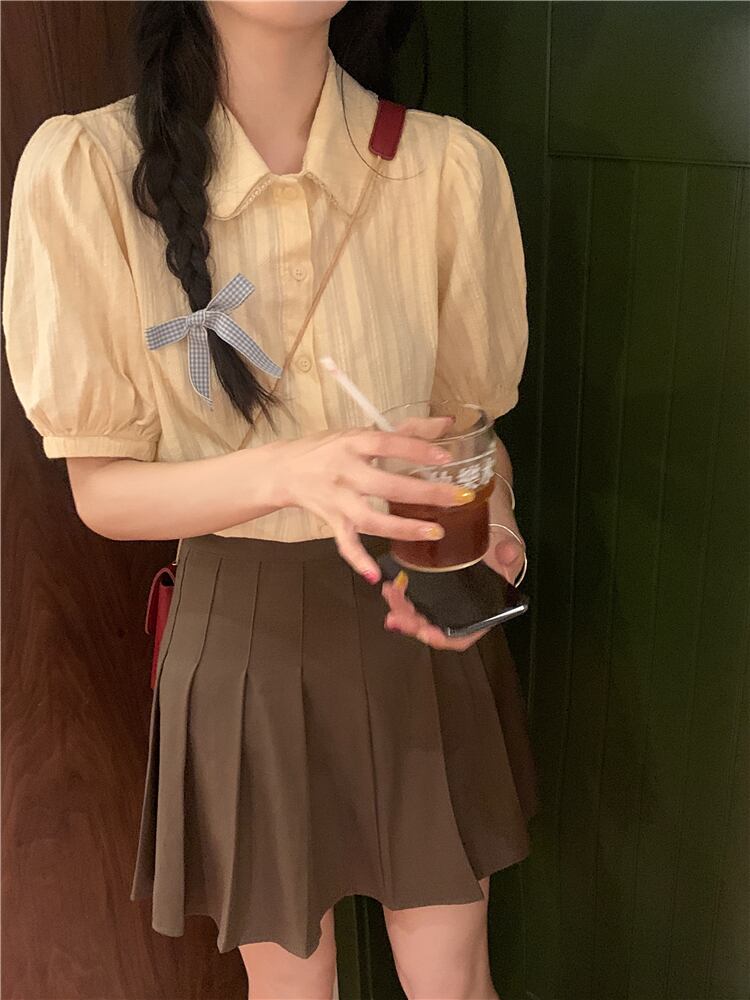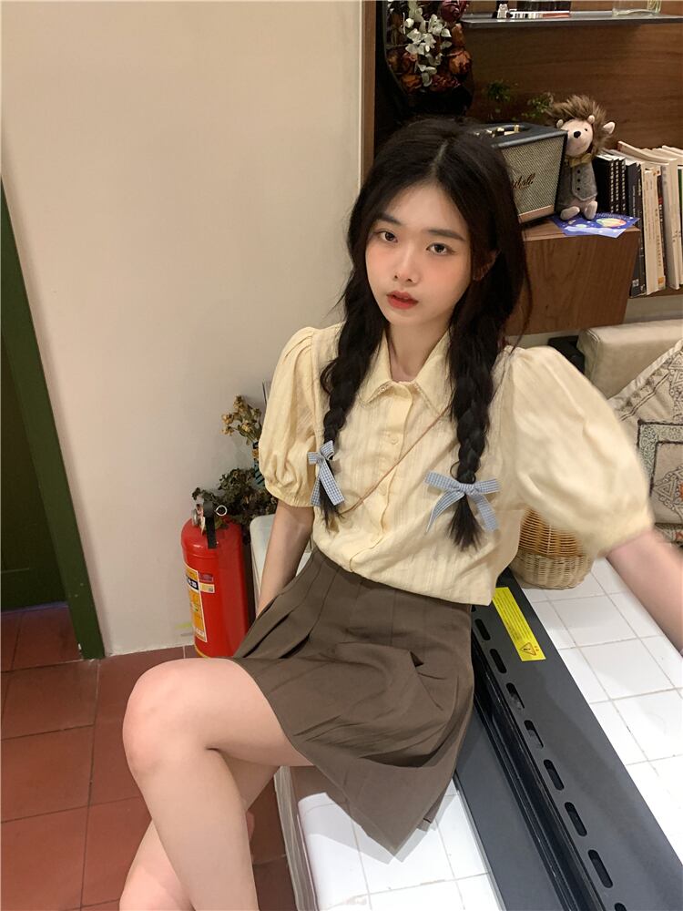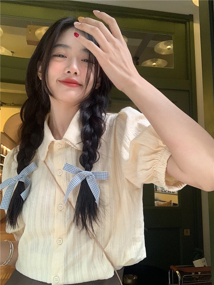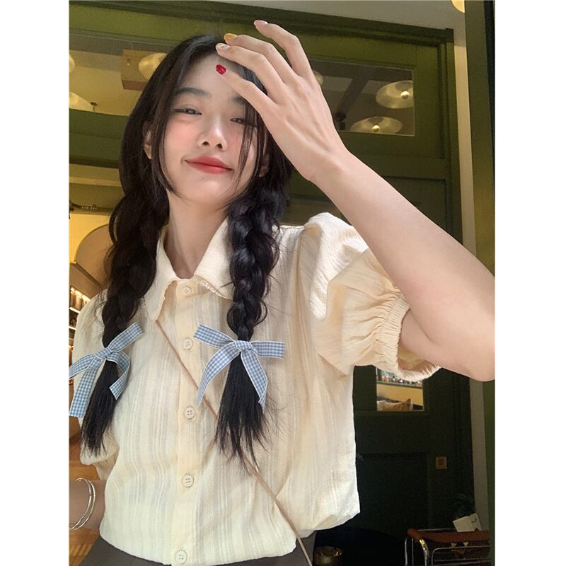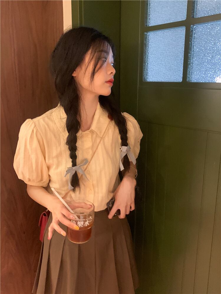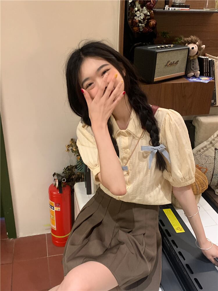 スタイル シック カレッジ サマー エイジ リダクション ドール カラー シャツ パフスリーブ ミルク アプリコット デザイン ポロ トップ 夏物 7460031906736580 | framboise21