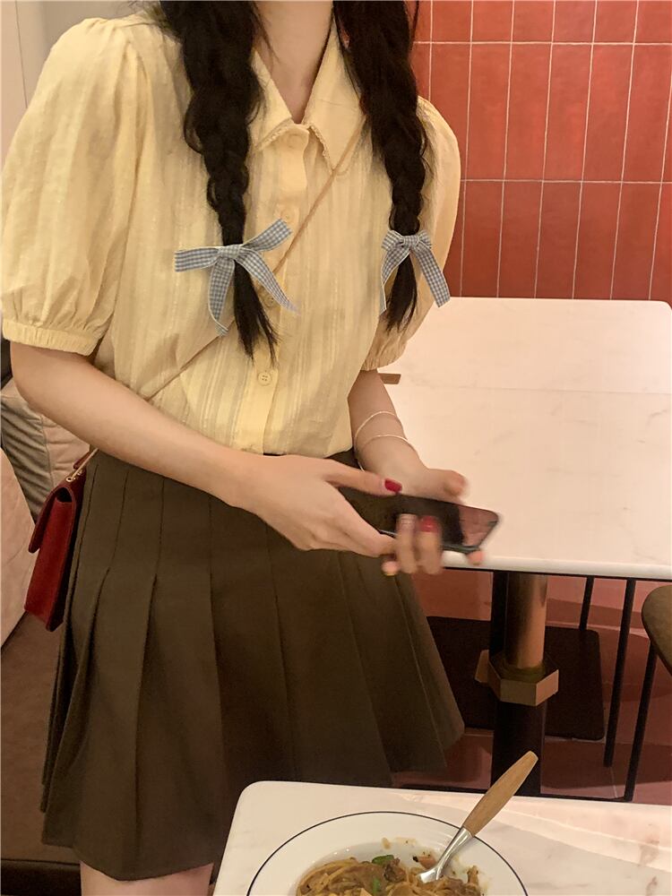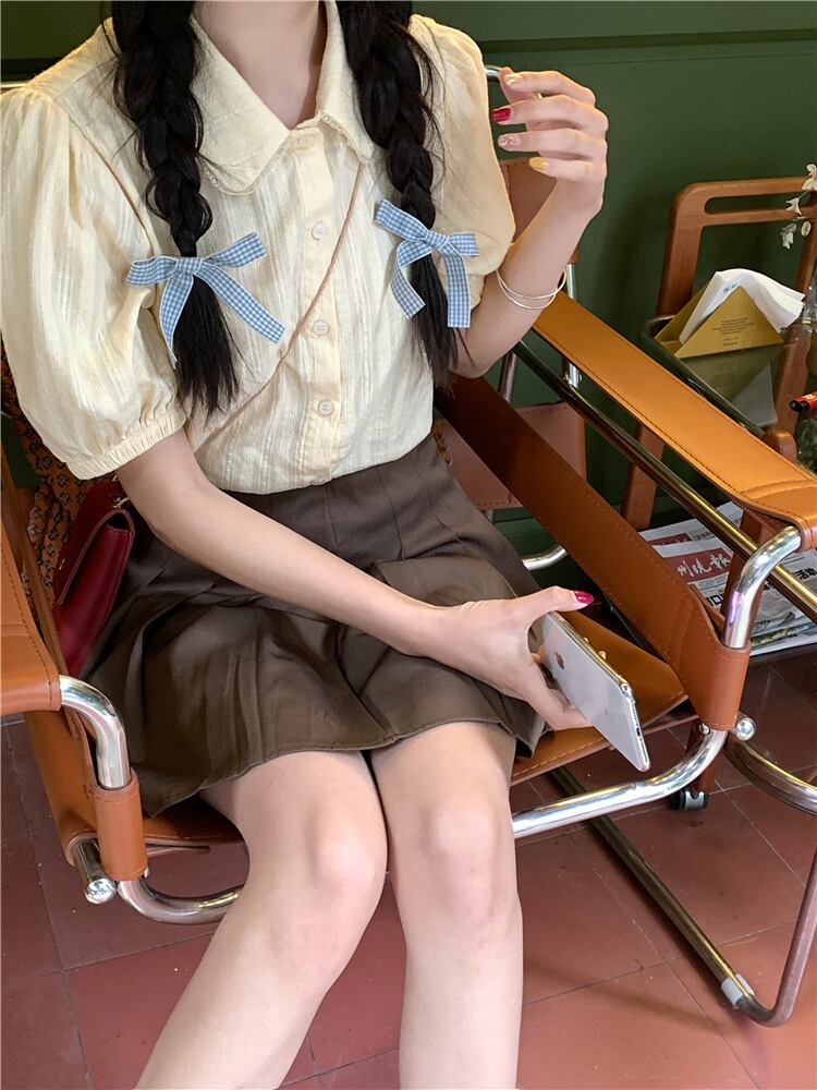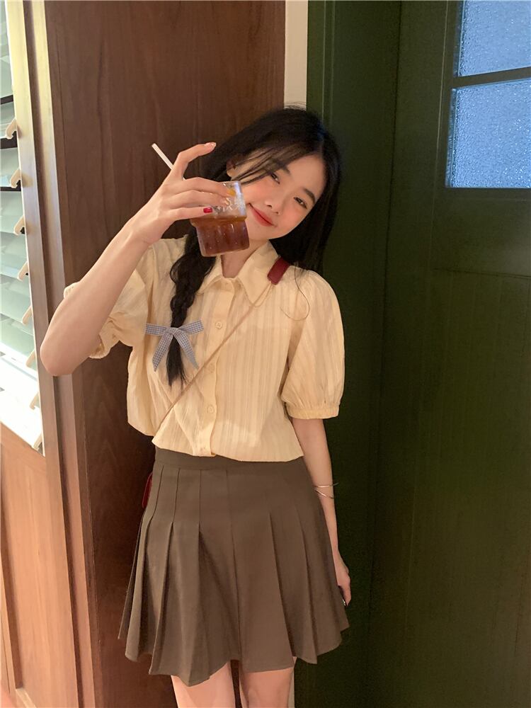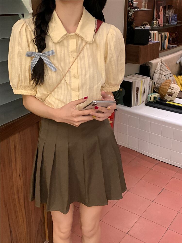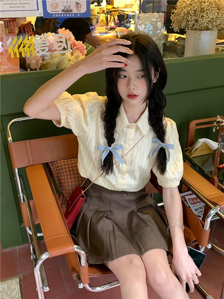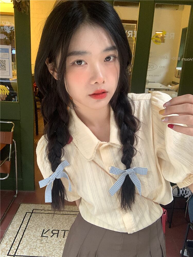 スタイル シック カレッジ サマー エイジ リダクション ドール カラー シャツ パフスリーブ ミルク アプリコット デザイン ポロ トップ 夏物 7460031906736580 | framboise21