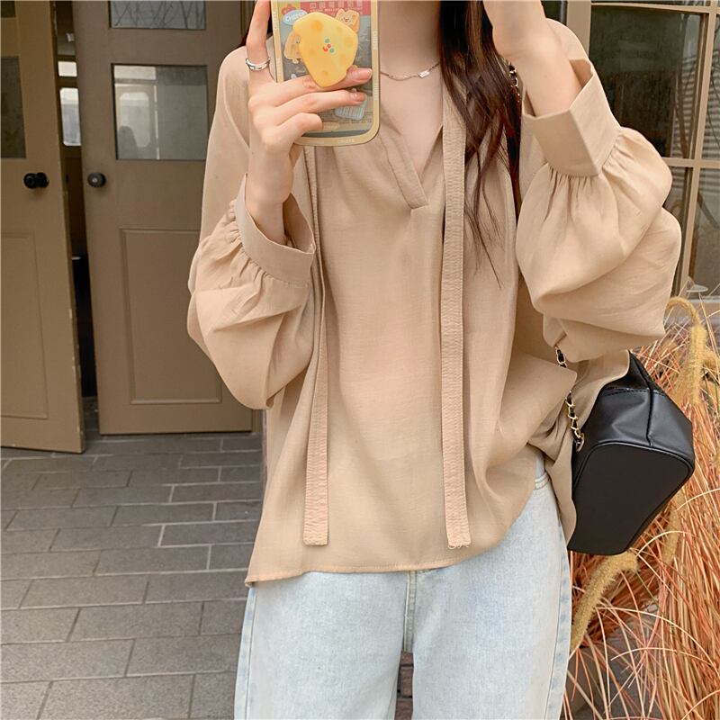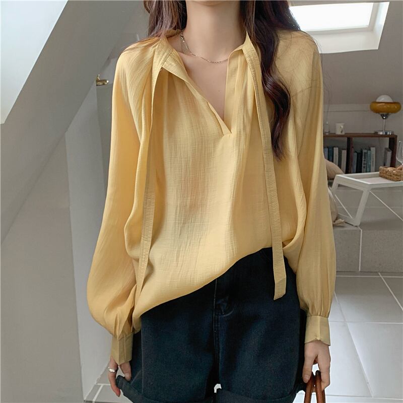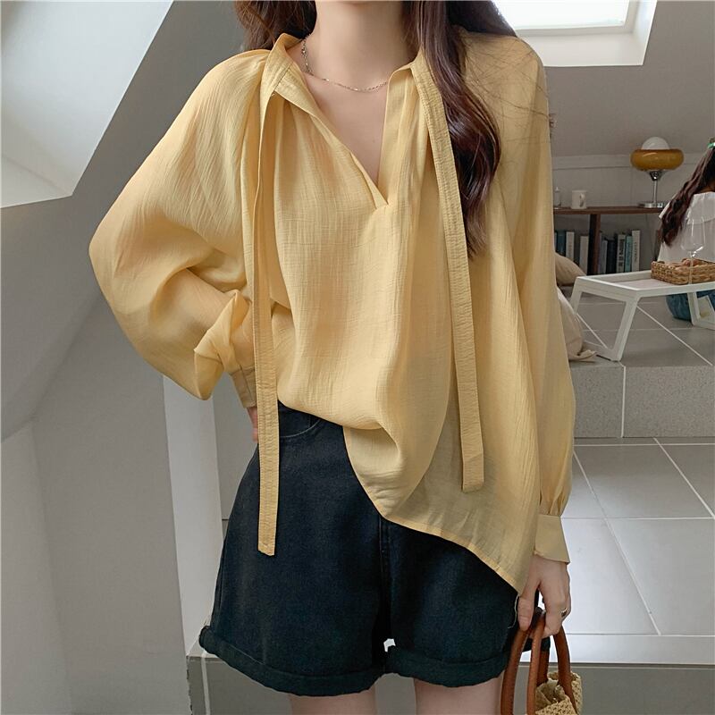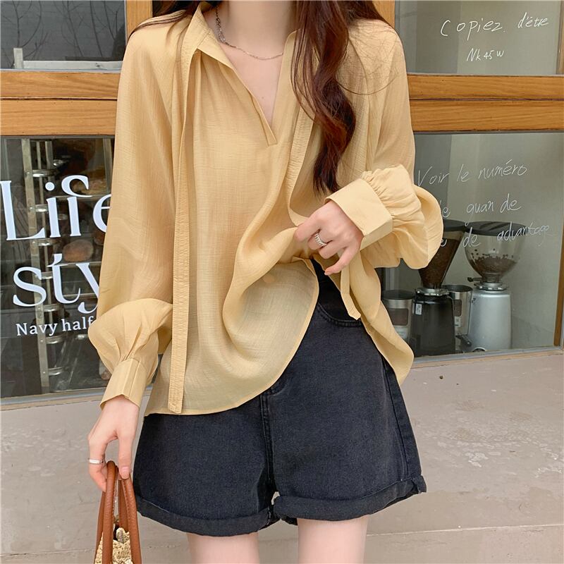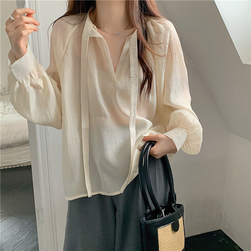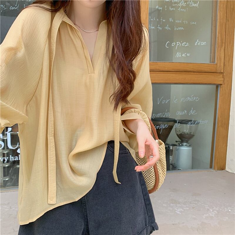 シフォン 日焼け止め レディース 夏 薄手 長袖 シャツ ニッチ デザイン ゆったり 外側 やや透け感 レースアップ トップス トレンド ロング サマー 夏物 7460031761961852 | framboise21