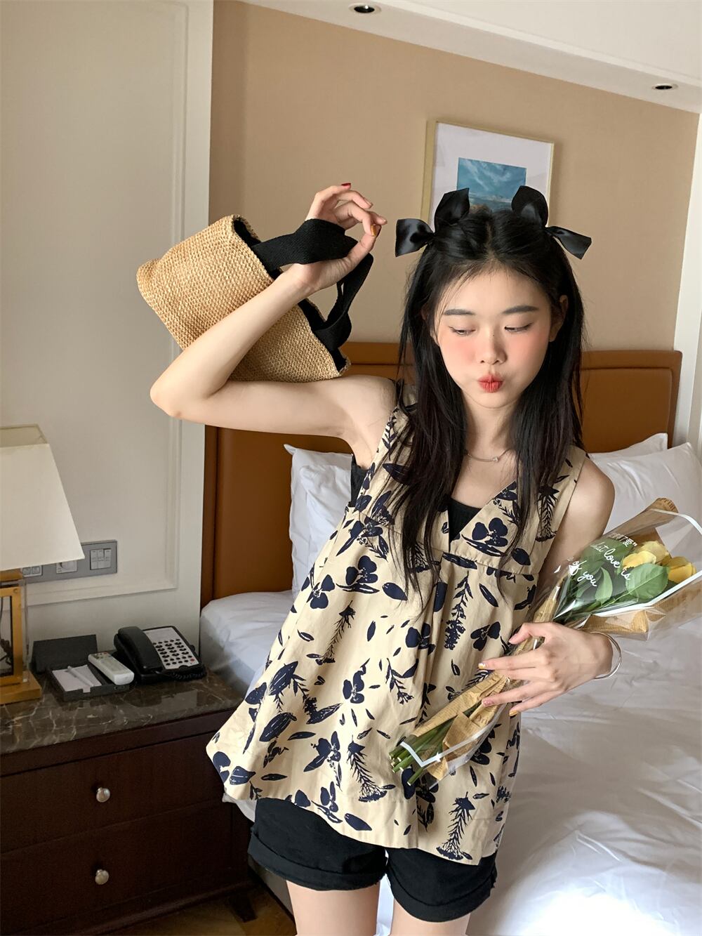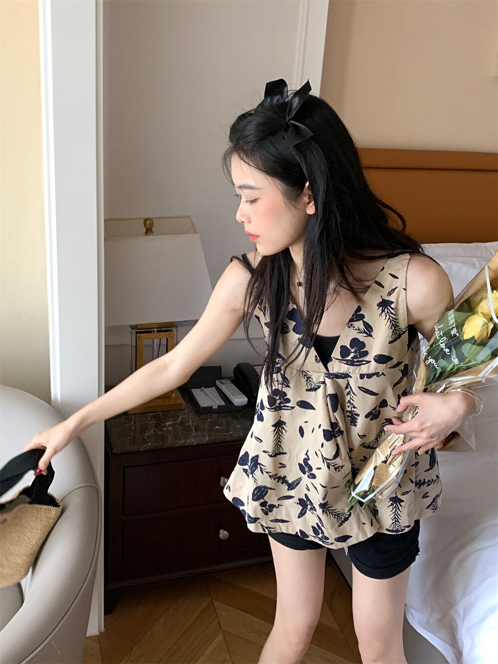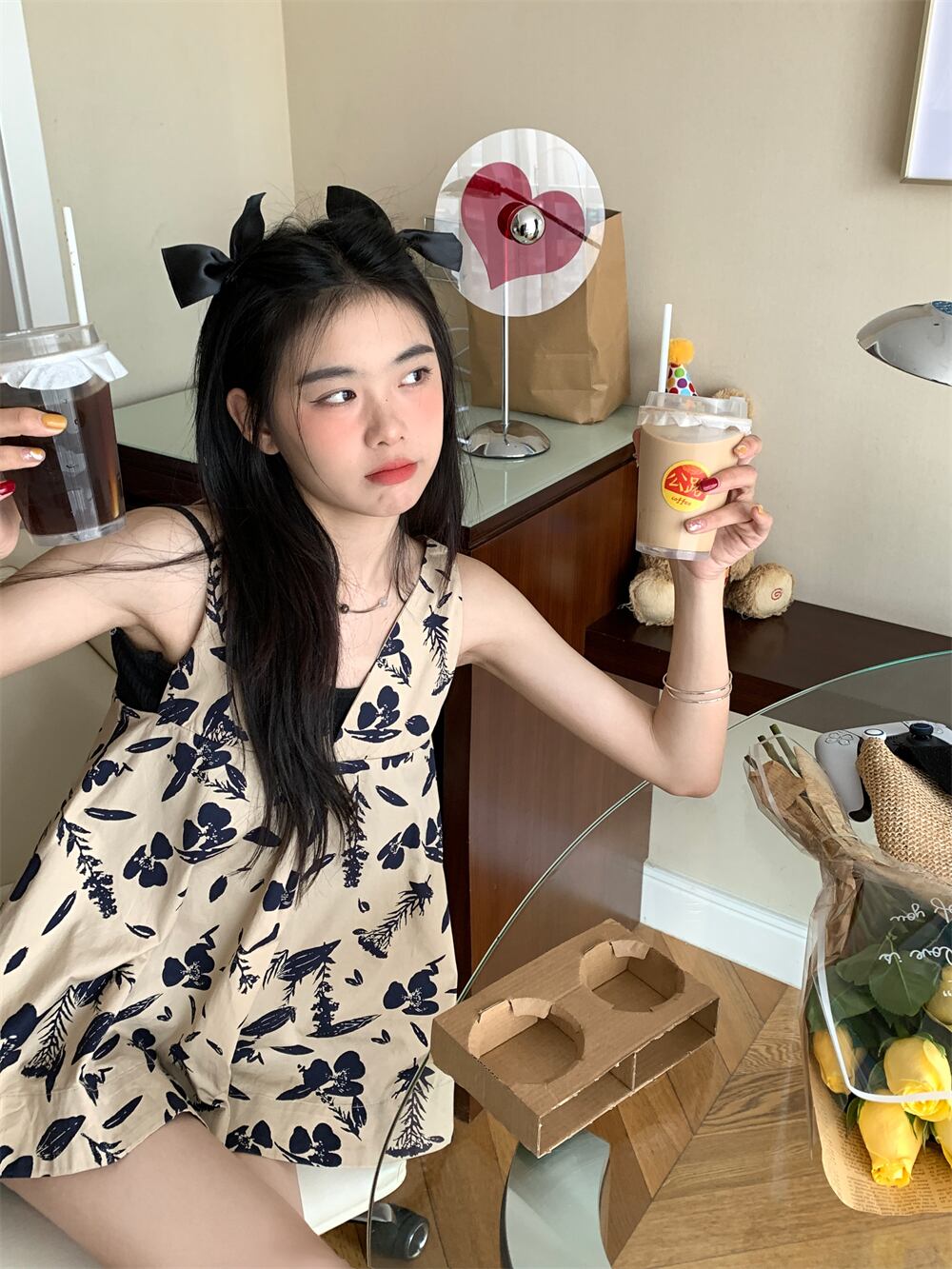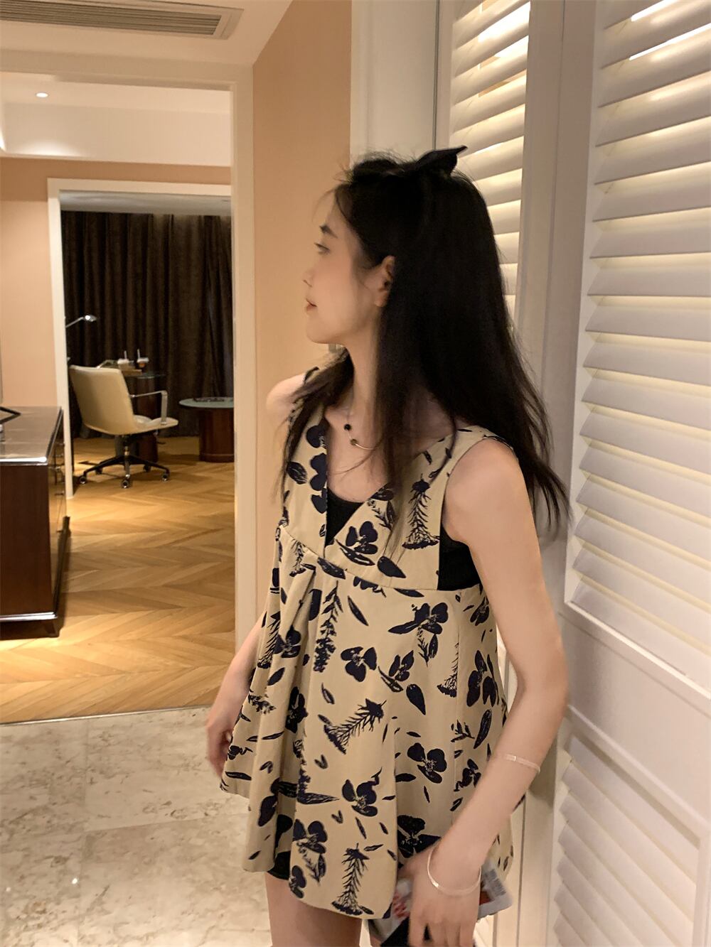 フローラル ベスト レディース サマー アウターウェア ノースリーブ サスペンダー ドール シャツ デザイン フレンチ 甘辛チョッキ ふっくらトップ 大人ガーリー スウィート キュート カジュアル 夏物 花柄 746006964106718 | framboise21