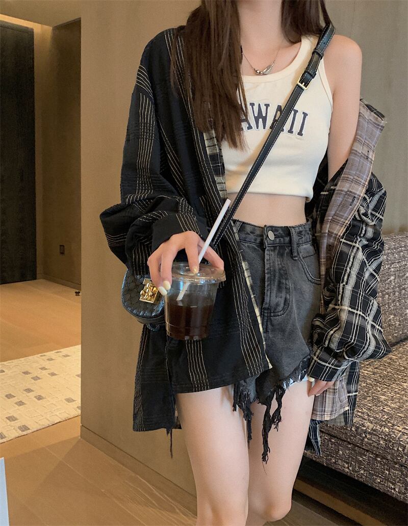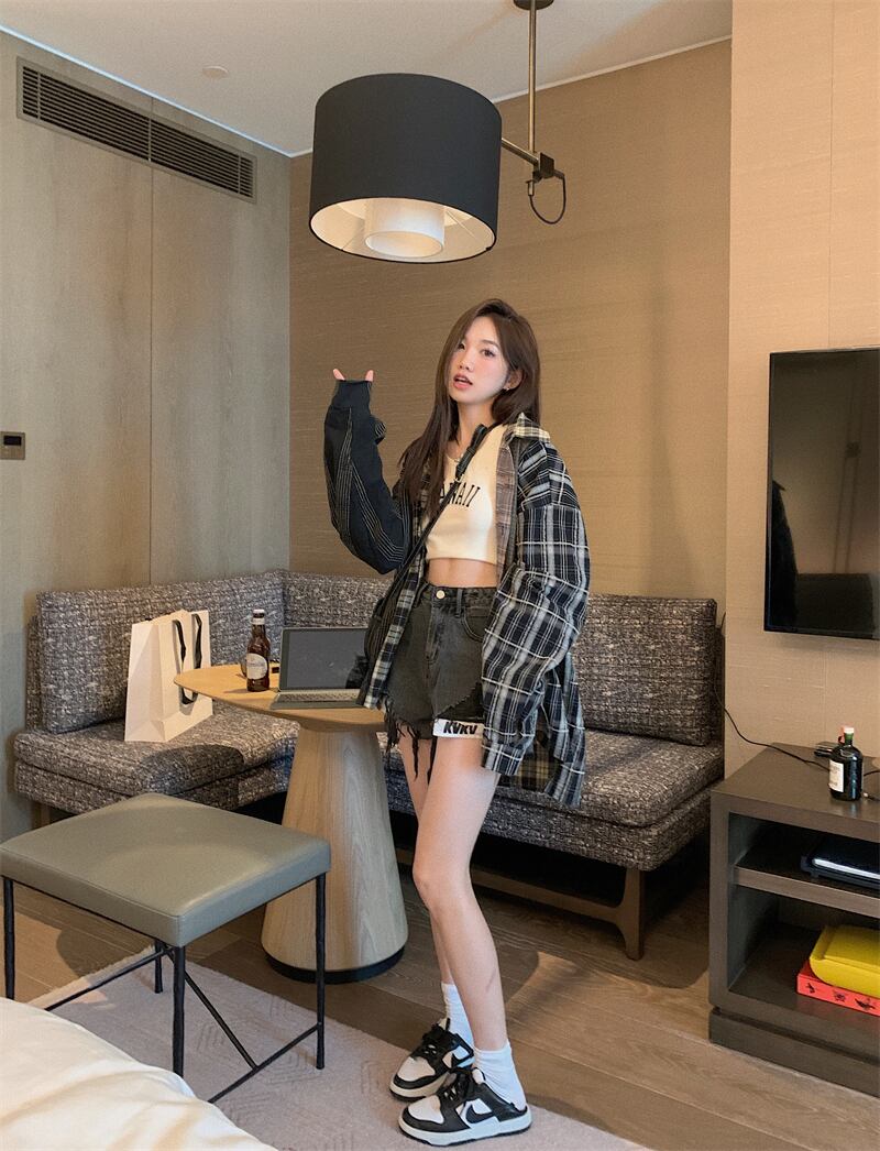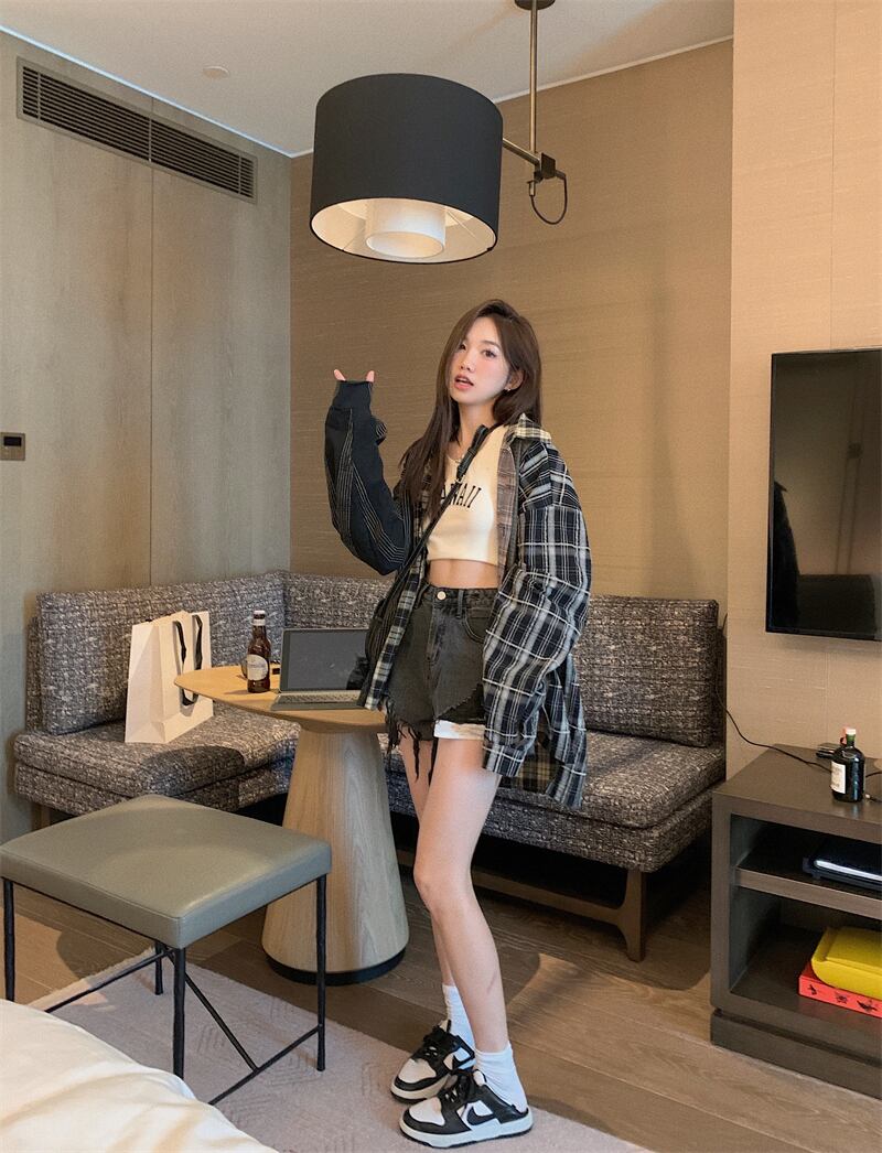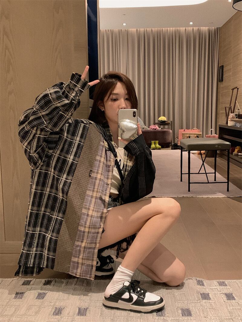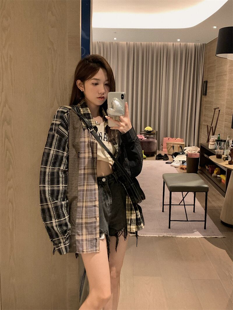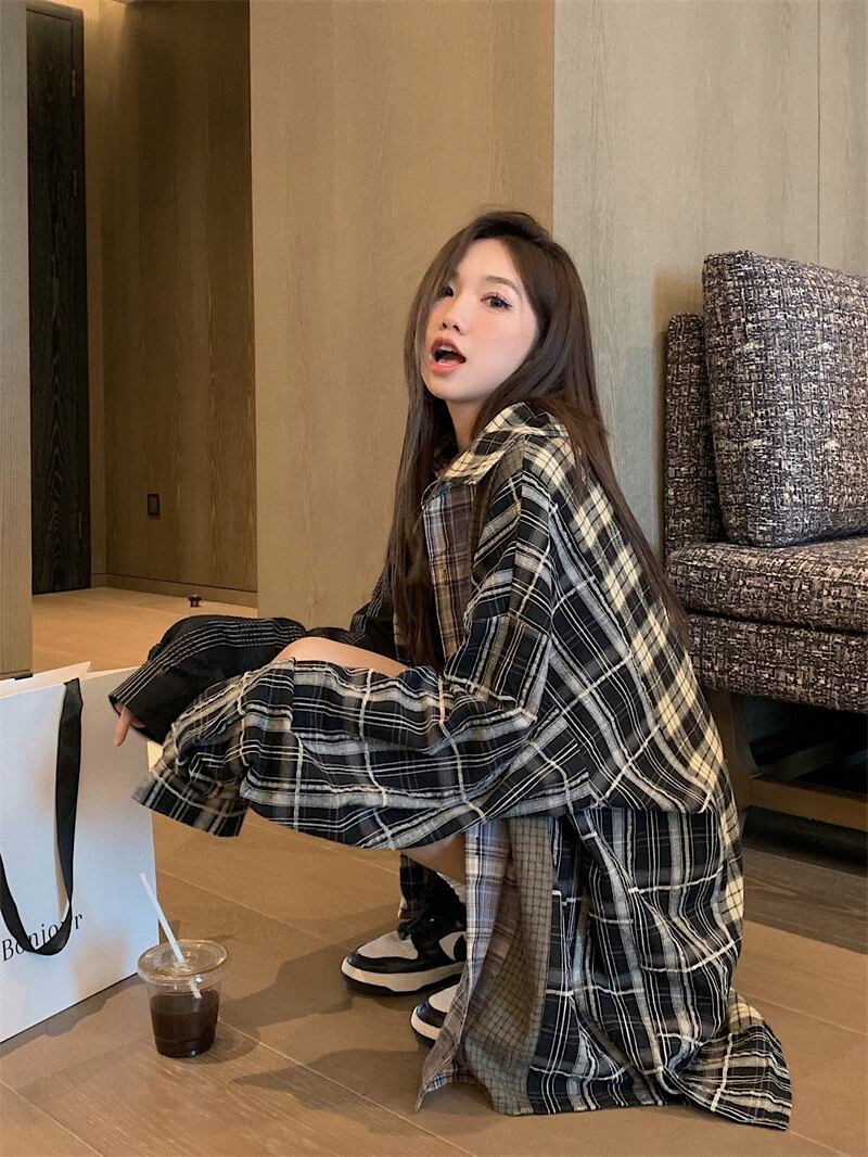 格子縞のシャツのジャケットの女性の夏の2022年の新しいレトロなデザインの感覚の外側の長袖の日焼け止めの上春と秋 ロング スプリング 春物 サマー 夏物 オータム 秋物 7460010626160139 | framboise21
