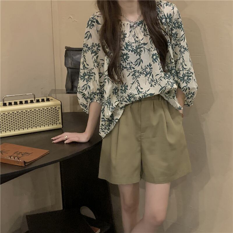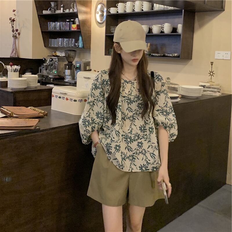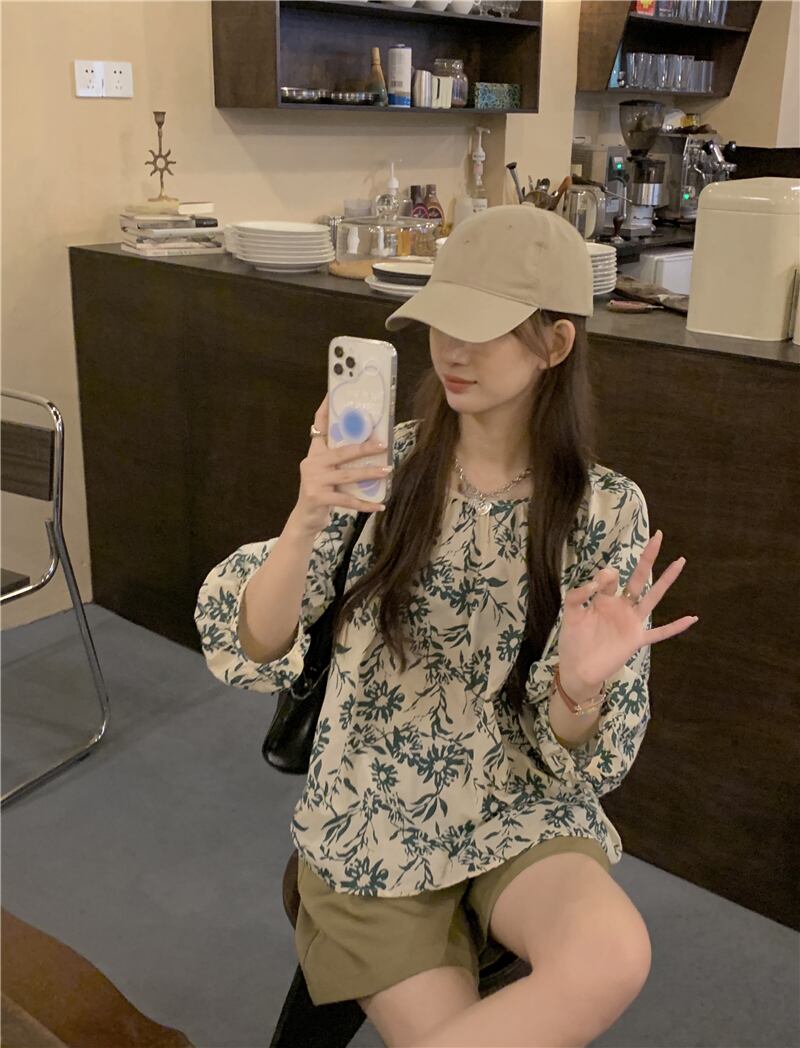 夏 中そで 花柄 シャツ トップス レディース ドール シャツ フレンチ ニッチ 甘くて 個性的 特別 小さめ シャツ シフォン 優しい 大人ガーリー スウィート キュート カジュアル サマー 夏物 7460010929430098 | framboise21