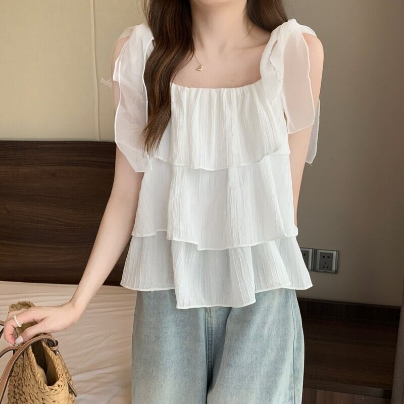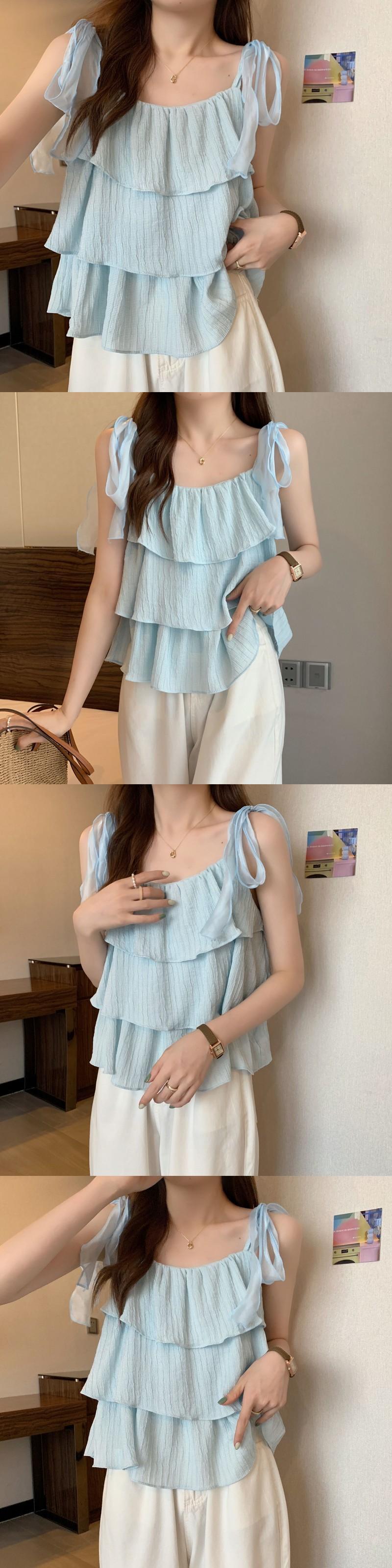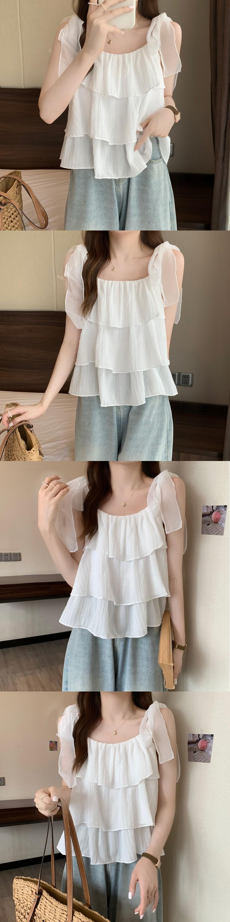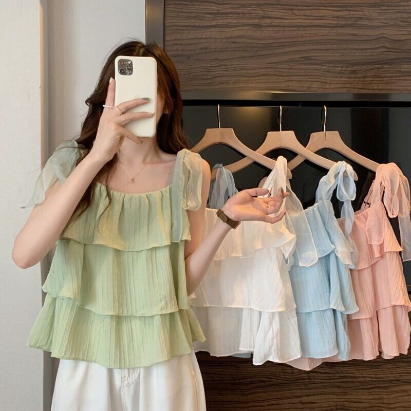 グリーンサスペンダーシフォンシャツレディースサマーデザインセンスニッチハスリーフピュアスイートウィンドノースリーブトップベビーシャツ 大人ガーリー スウィート キュート カジュアル 夏物 7460090499774204 | framboise21
