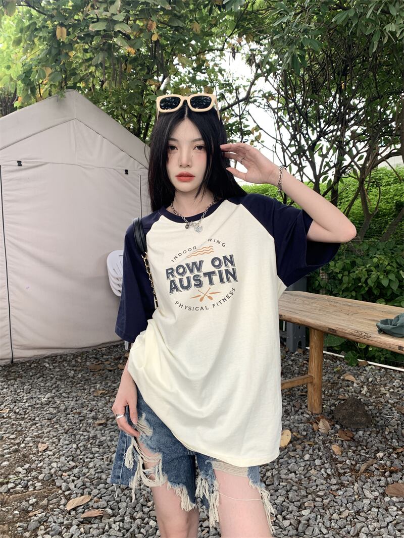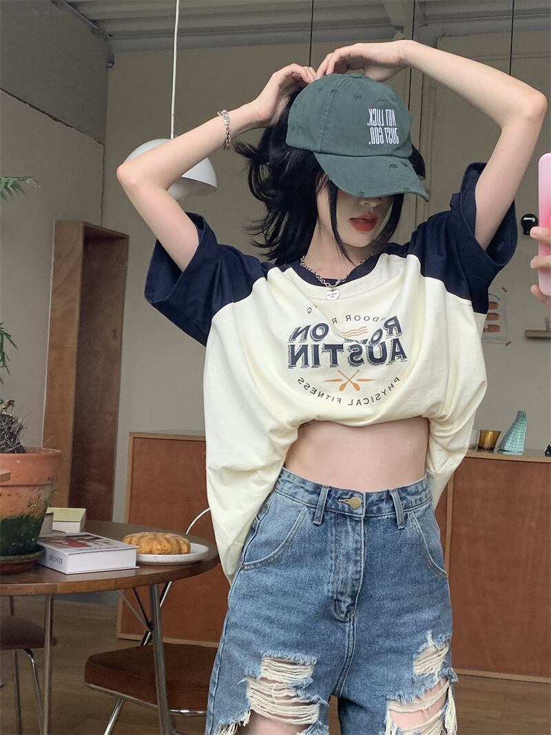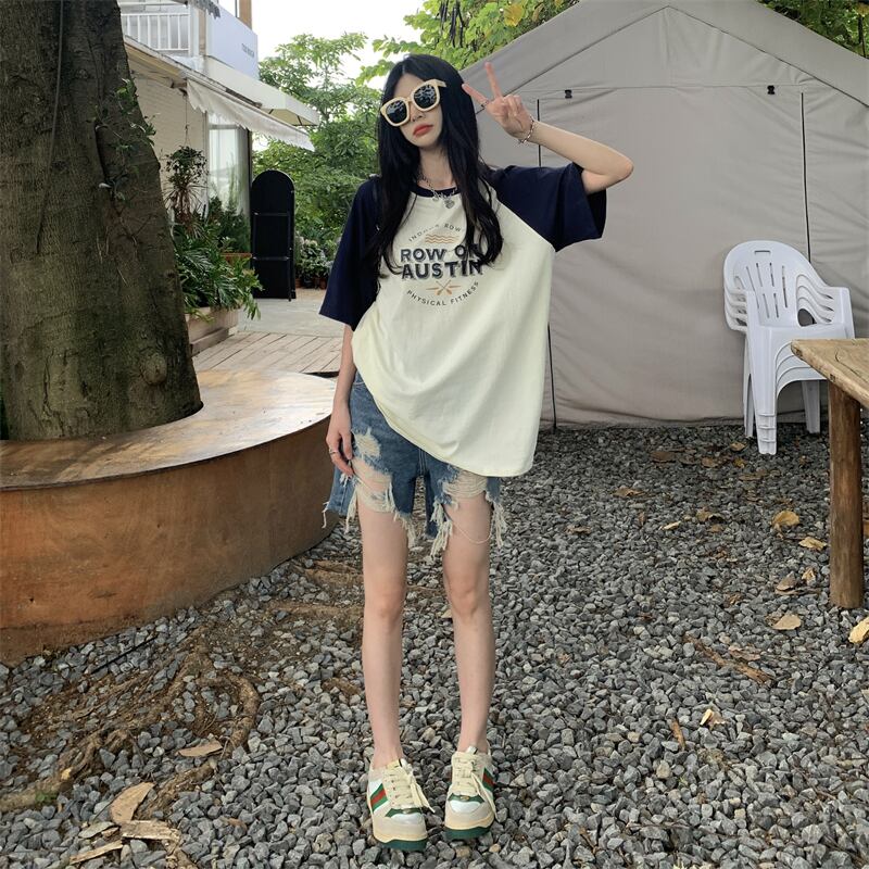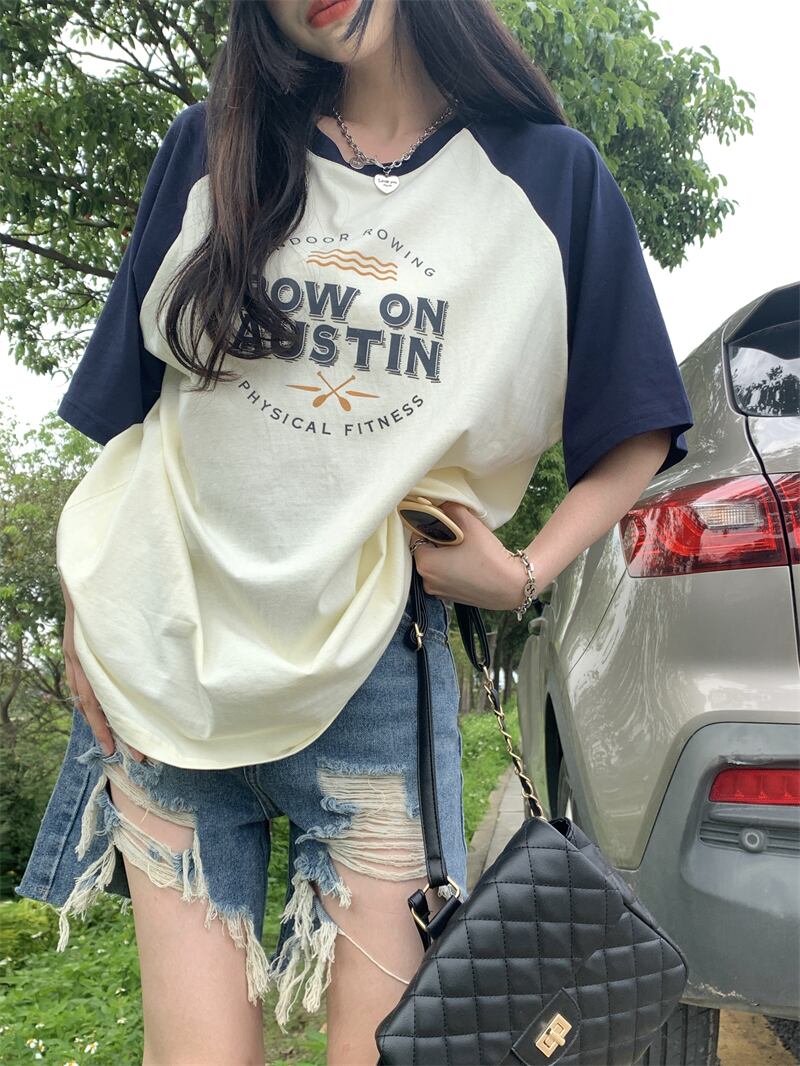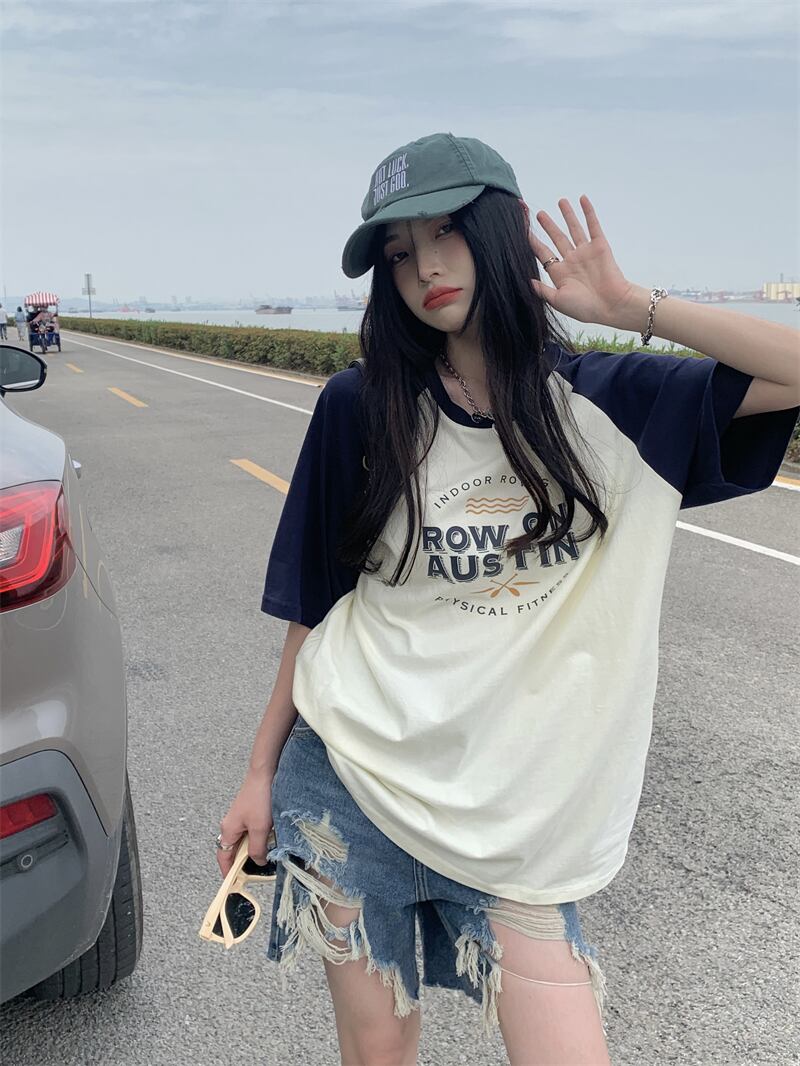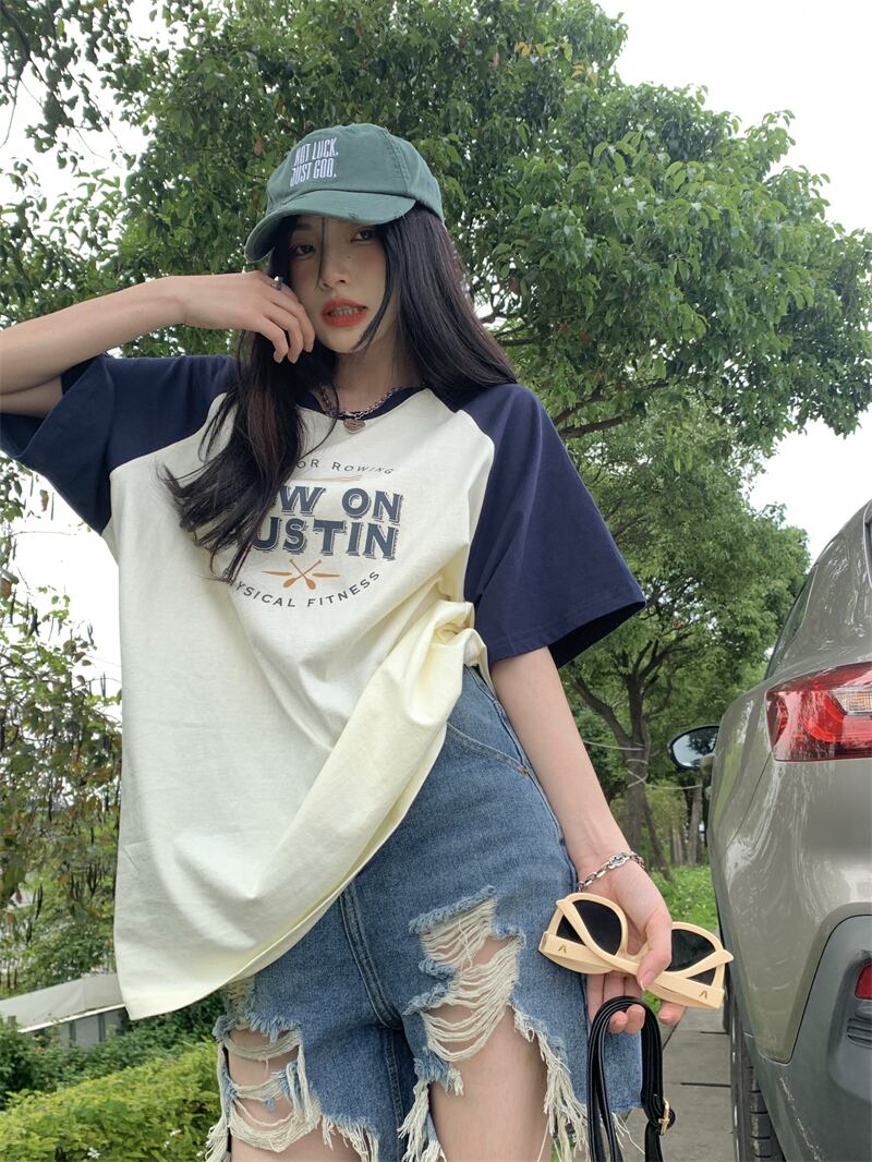 フロントショルダー 半袖 Tシャツ レディース 2022年夏 新作 アメリカンデザインセンス ニッチ 薄手 ミドル丈 半袖 トップス サマー 夏物 7460044268924789 | framboise21