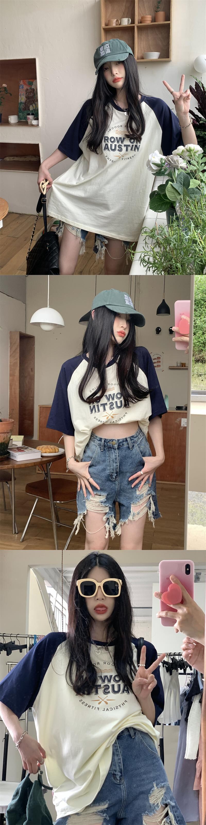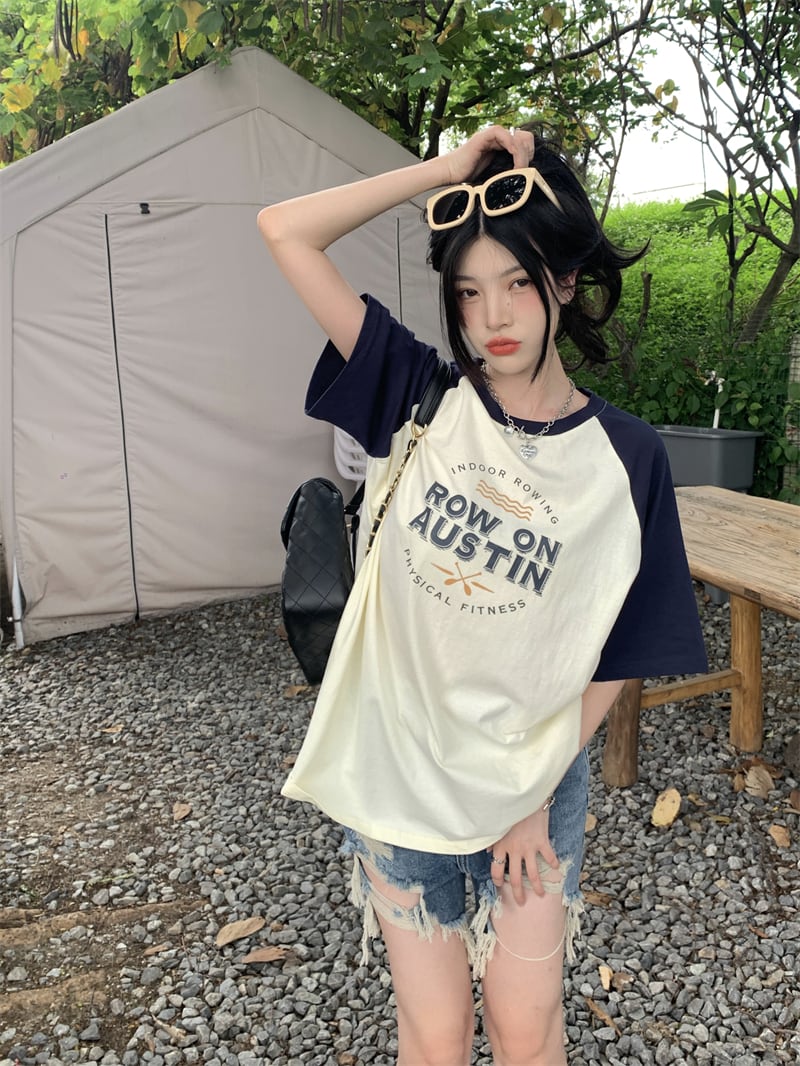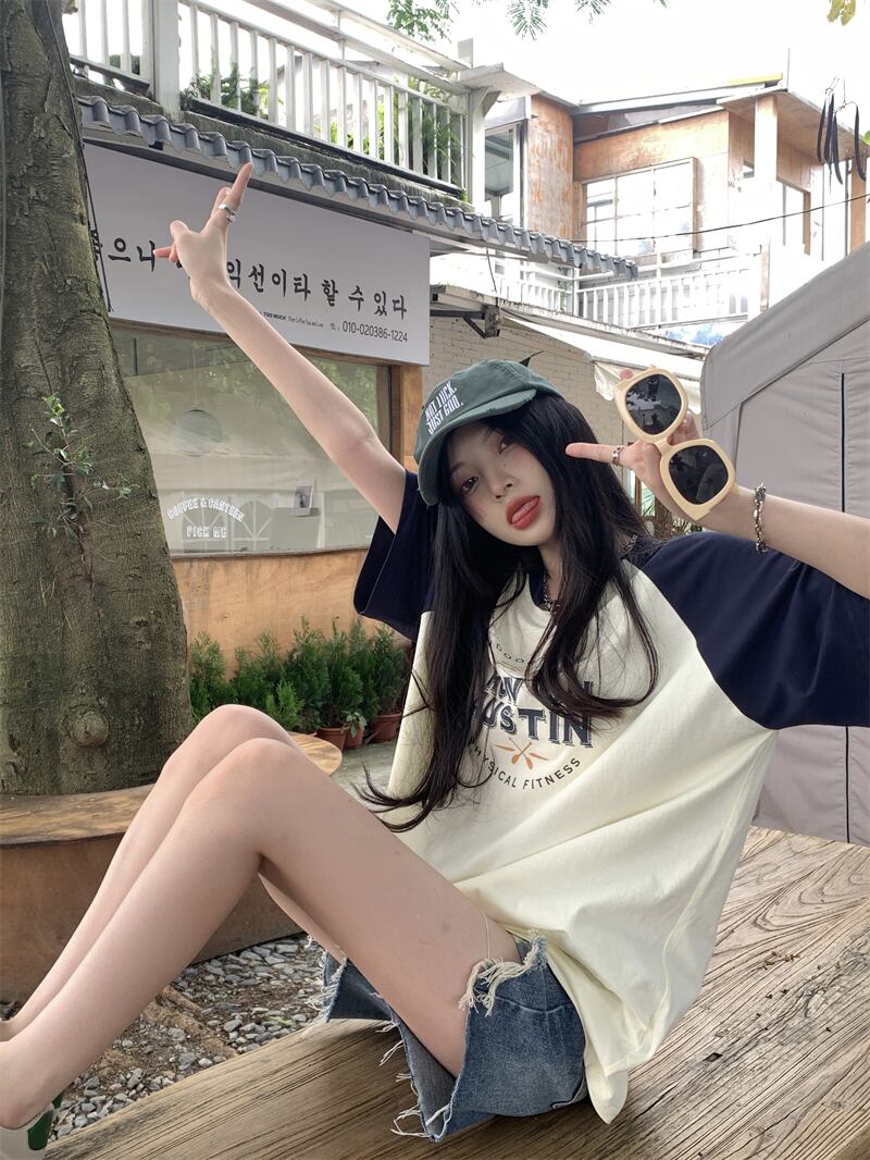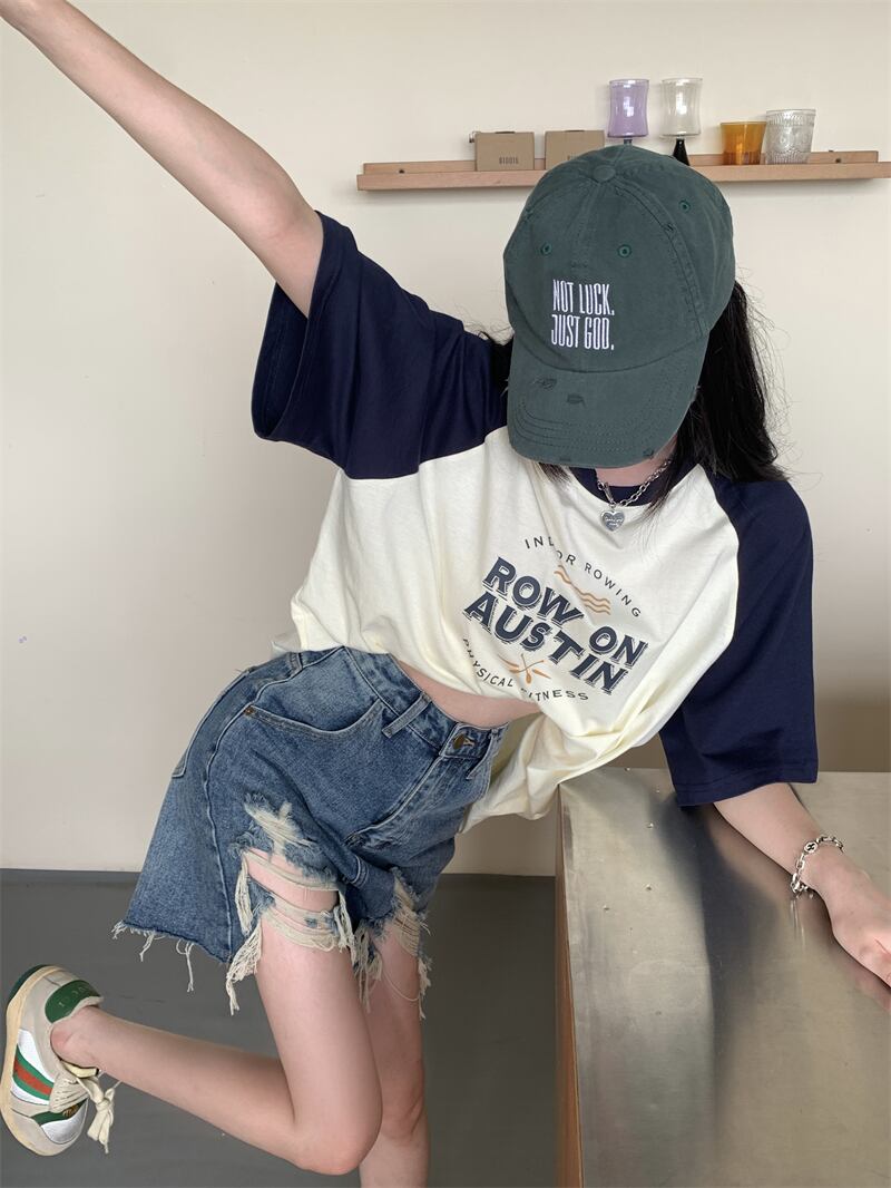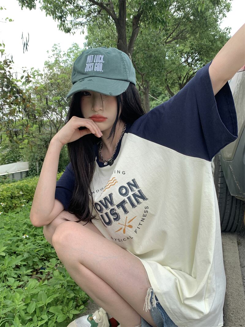 フロントショルダー 半袖 Tシャツ レディース 2022年夏 新作 アメリカンデザインセンス ニッチ 薄手 ミドル丈 半袖 トップス サマー 夏物 7460044268924789 | framboise21