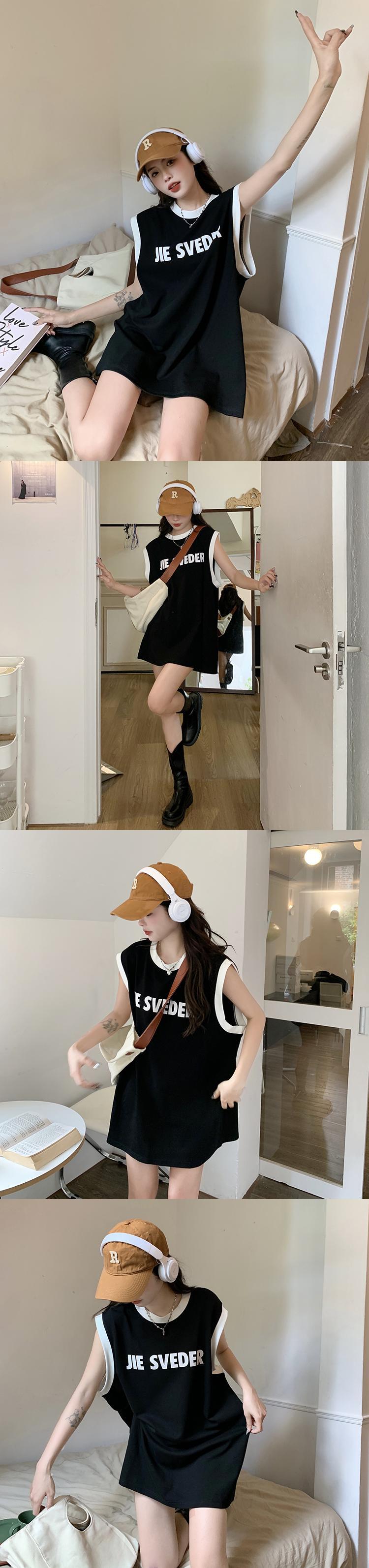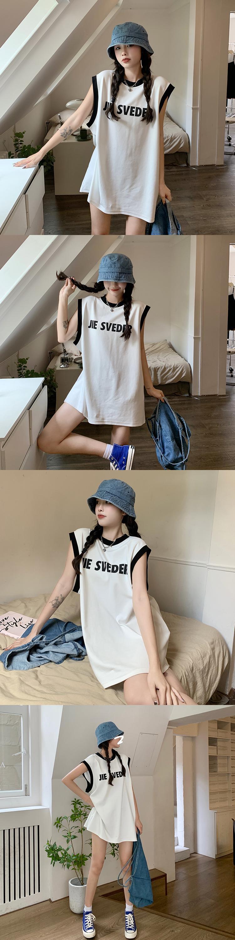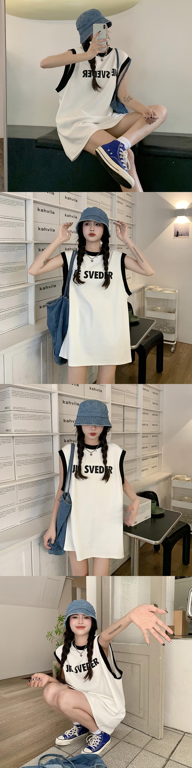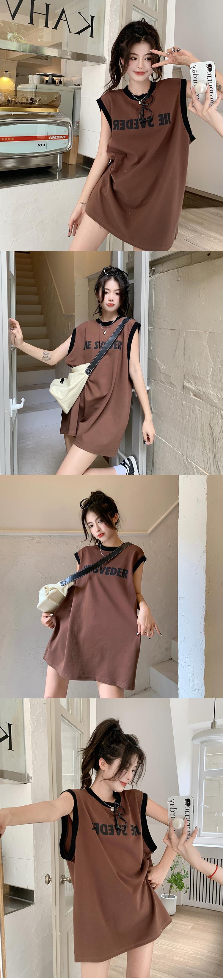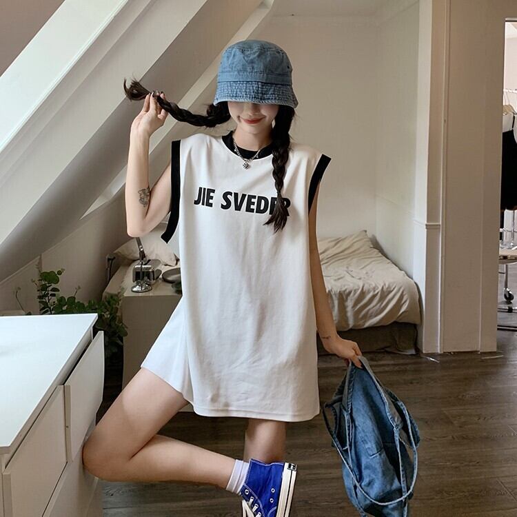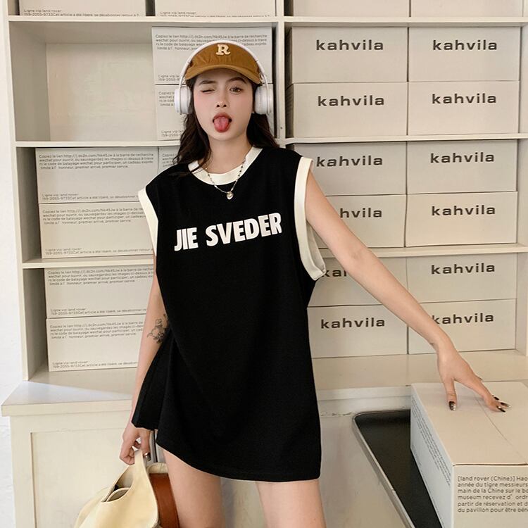 ボトムス ノースリーブ Tシャツ レディース 夏 ゆったり ミドル丈 レタープリント ハードルベスト カジュアル BFベスト トップス サマー 夏物 7460021918745761 | framboise21