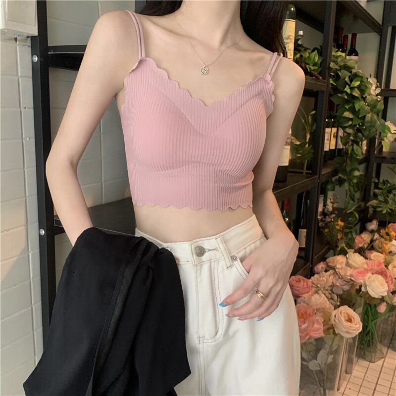 甘辛小さめキャミソール レディース インナーストラップ チェストパッド チューブトップ アンダーウェア フレンチデザインセンス アウター ショート ボトムス トップス 大人ガーリー スウィート キュート カジュアル 7460042893872384 | framboise21