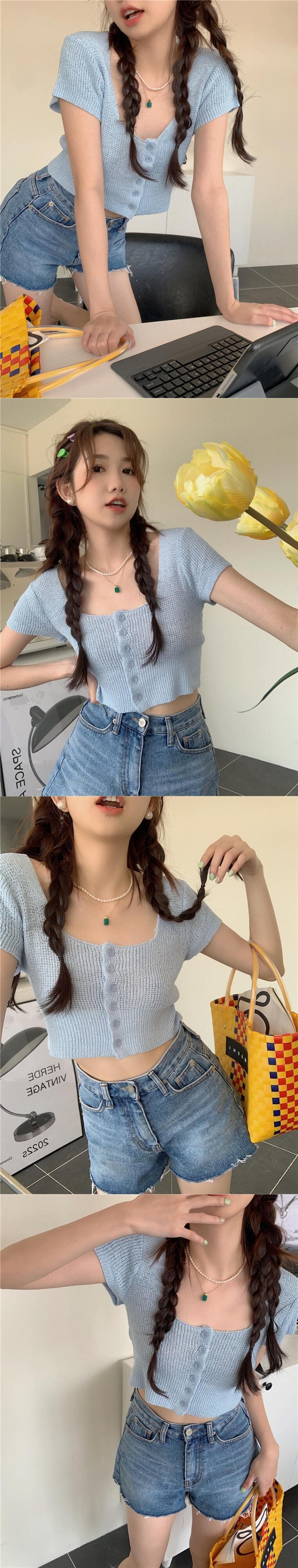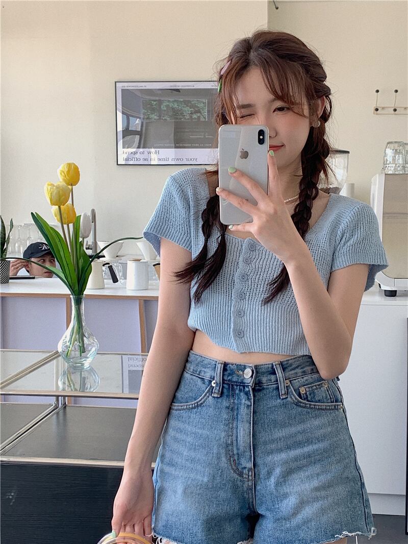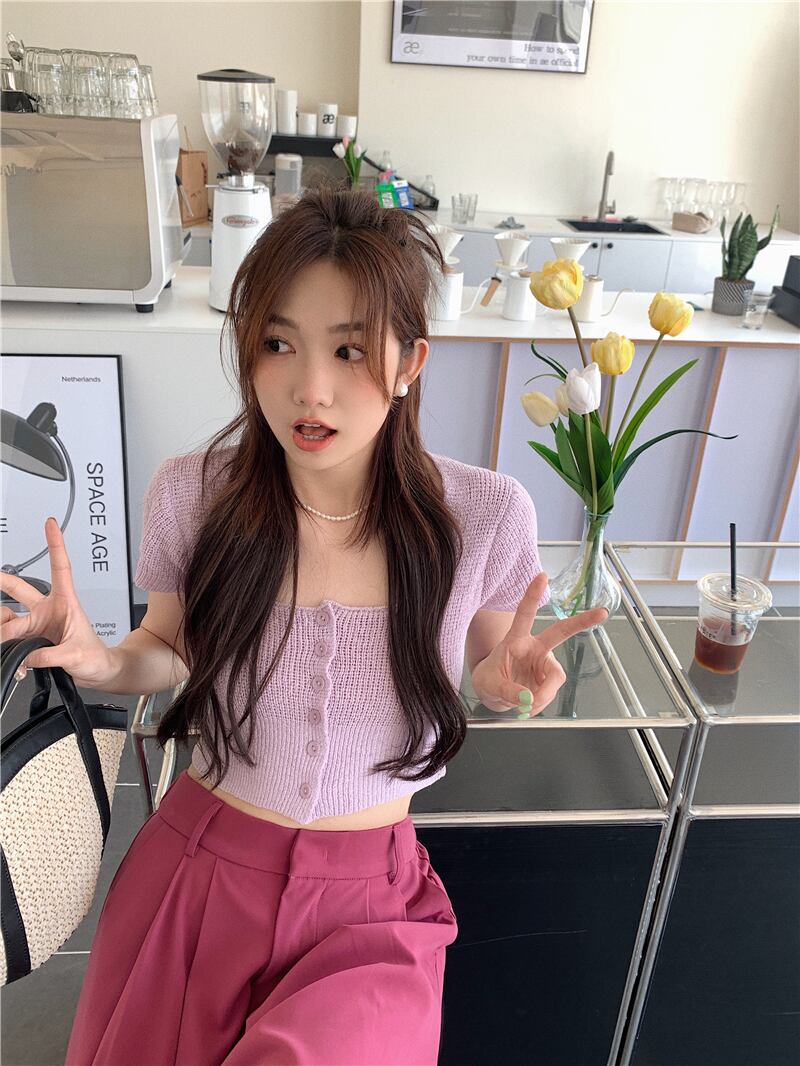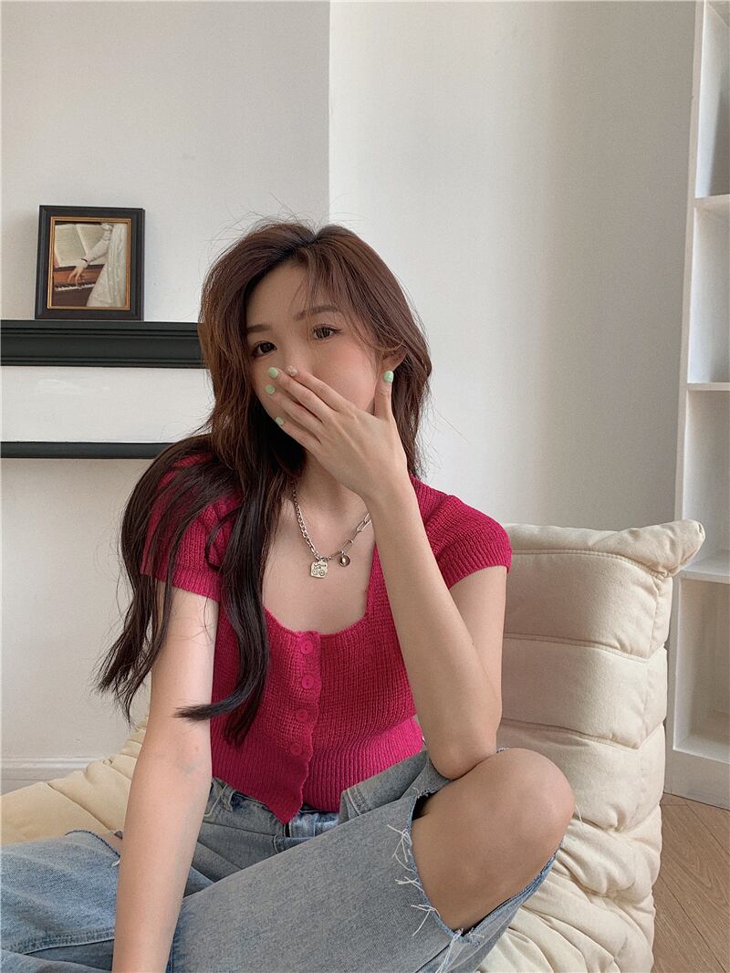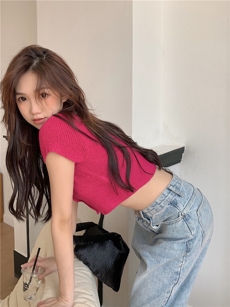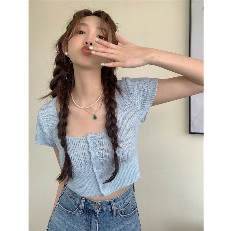 スウィート ベイビー シック スクエア カラー クロップド ネーブル ニット Tシャツ レディース サマー 自己修養 ハイウエスト BM 半袖 アイスシルク ウルトラショート トップ ハイウェスト 大人ガーリー キュート カジュアル 夏物 スクウェア 7460014796185595 | framboise21