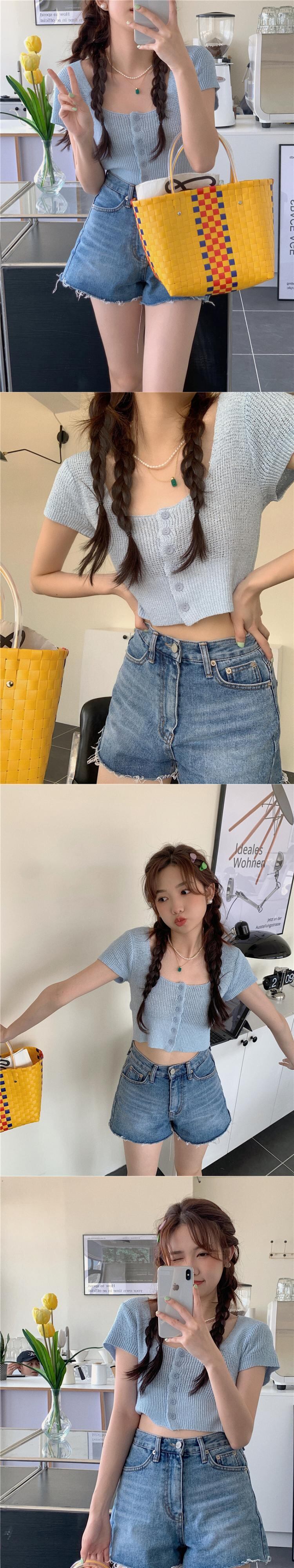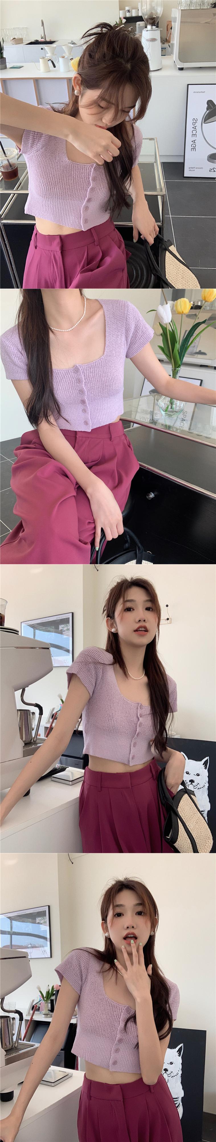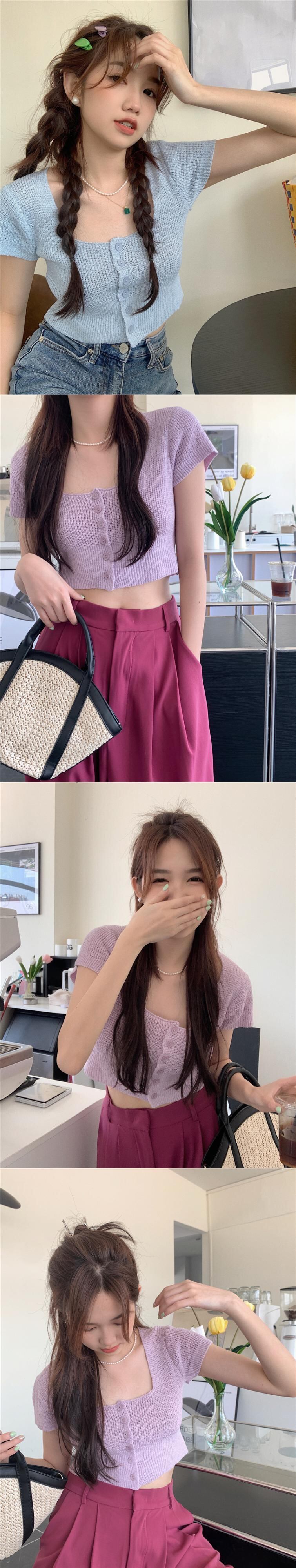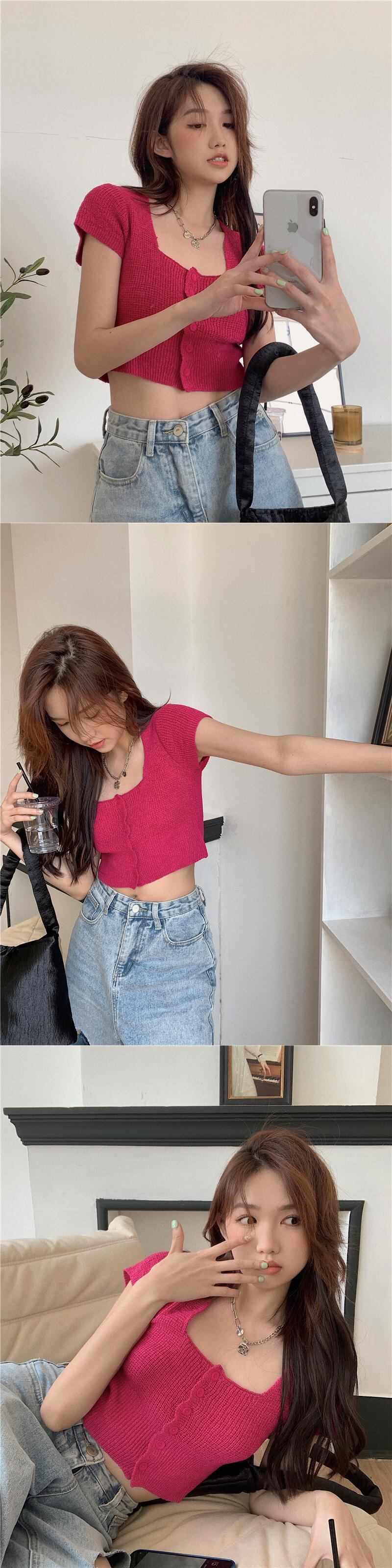 スウィート ベイビー シック スクエア カラー クロップド ネーブル ニット Tシャツ レディース サマー 自己修養 ハイウエスト BM 半袖 アイスシルク ウルトラショート トップ ハイウェスト 大人ガーリー キュート カジュアル 夏物 スクウェア 7460014796185595 | framboise21