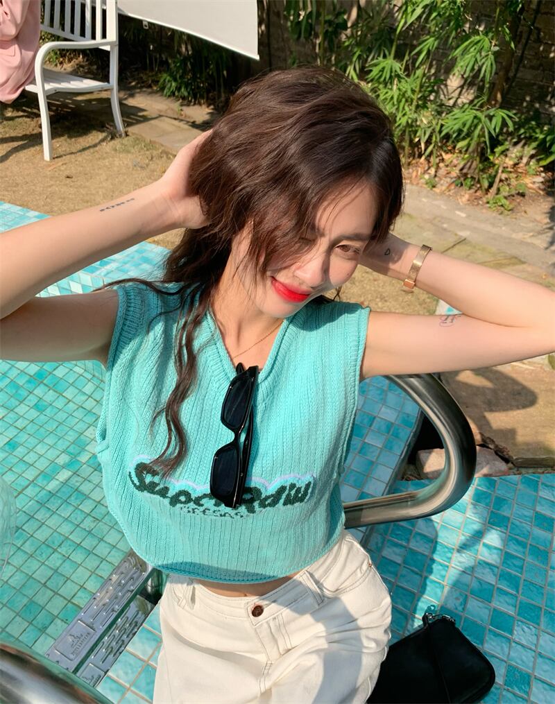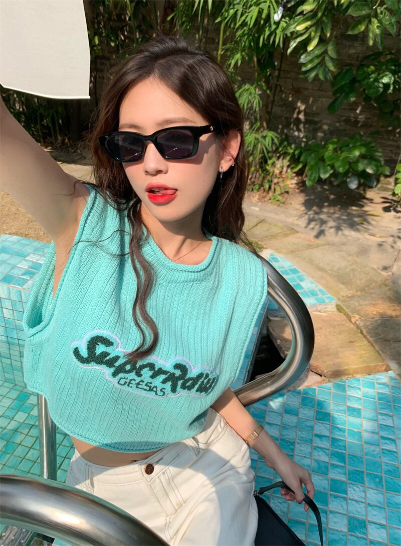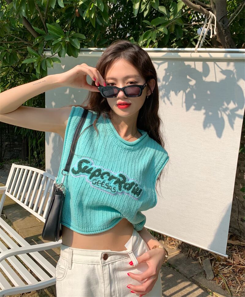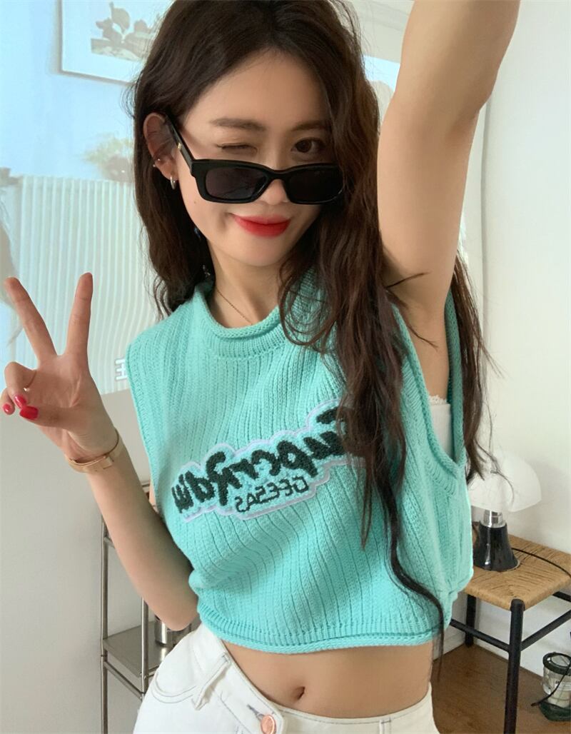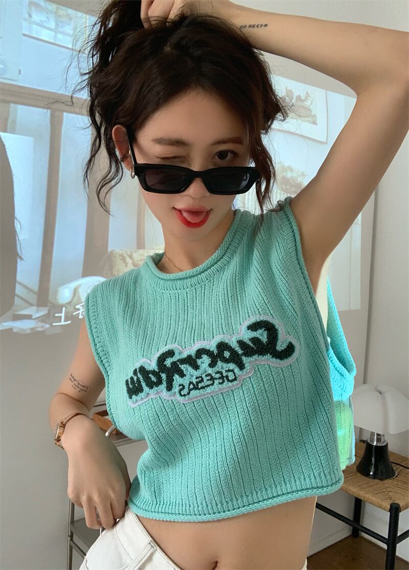 アメリカンレトロ ゆったり ショート丈 おへそ 小さい キャミソール 女性 夏 アウター ノースリーブ tシャツ ニットトップ サマー 夏物 746004659310384 | framboise21