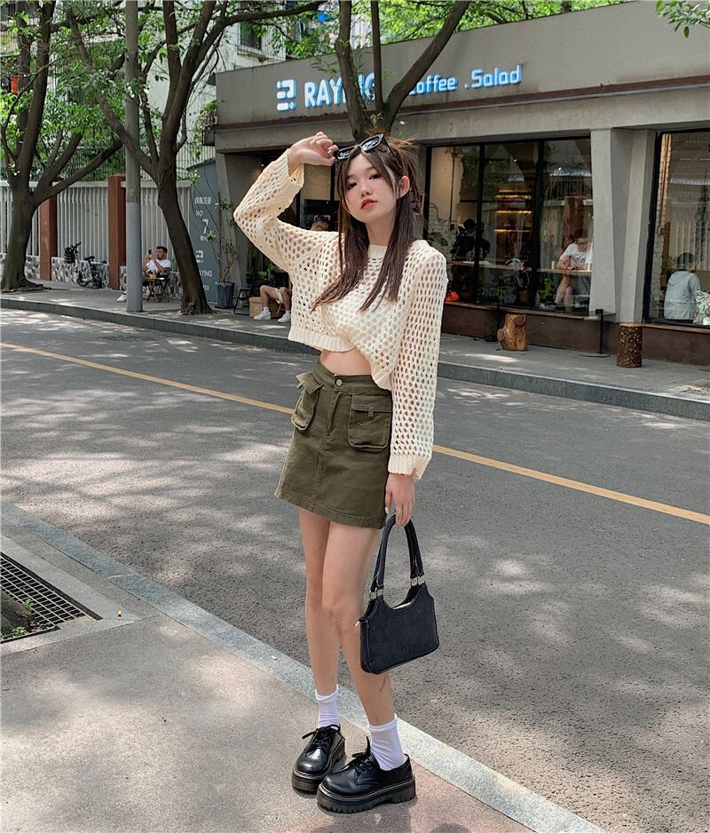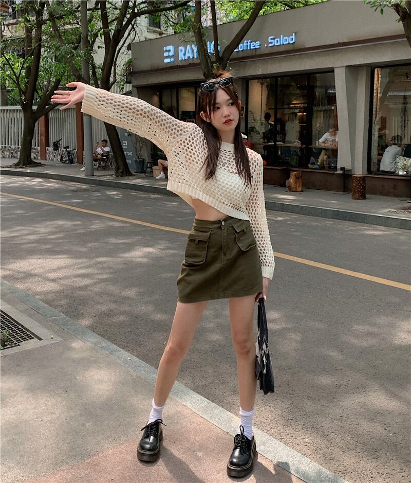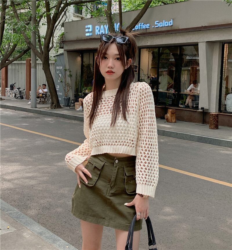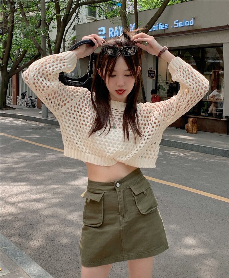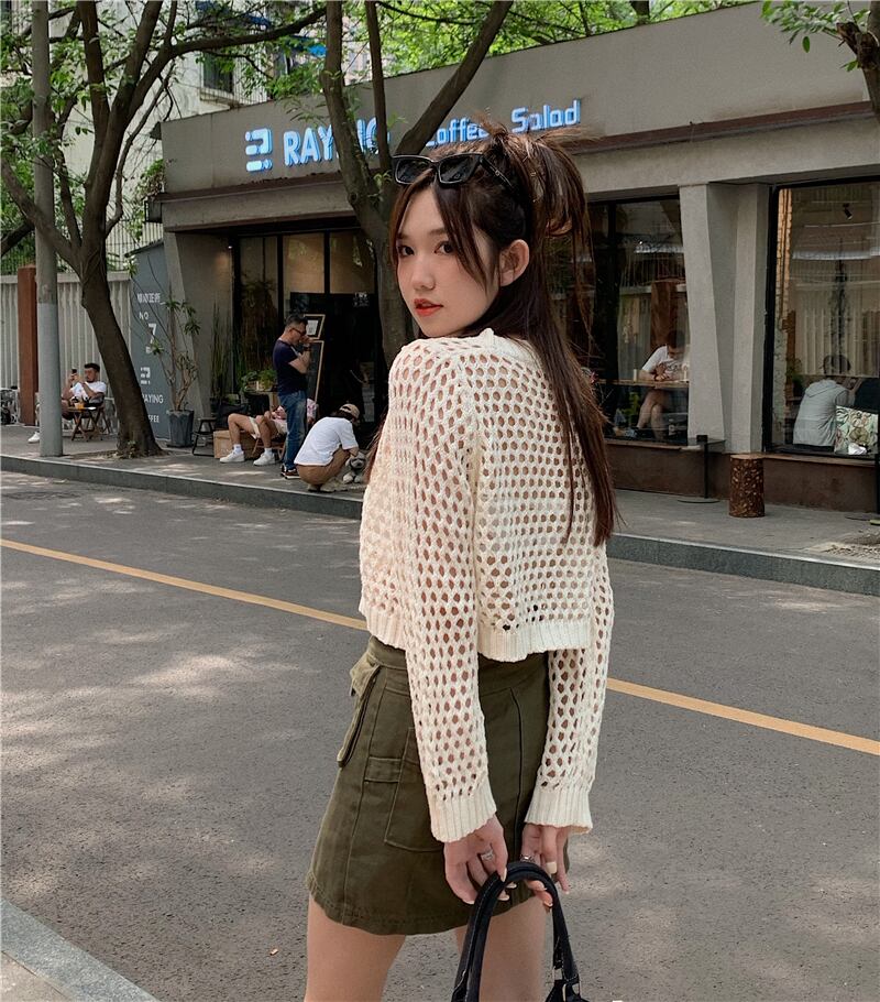 ホワイト日焼け止めブラウスレディース夏デザイン感のある薄手の長袖トップスとくり抜いたショート丈のアイスシルクニットTシャツ ロング サマー 夏物 7460067042581812 | framboise21