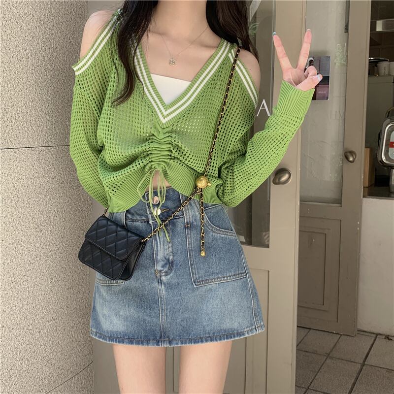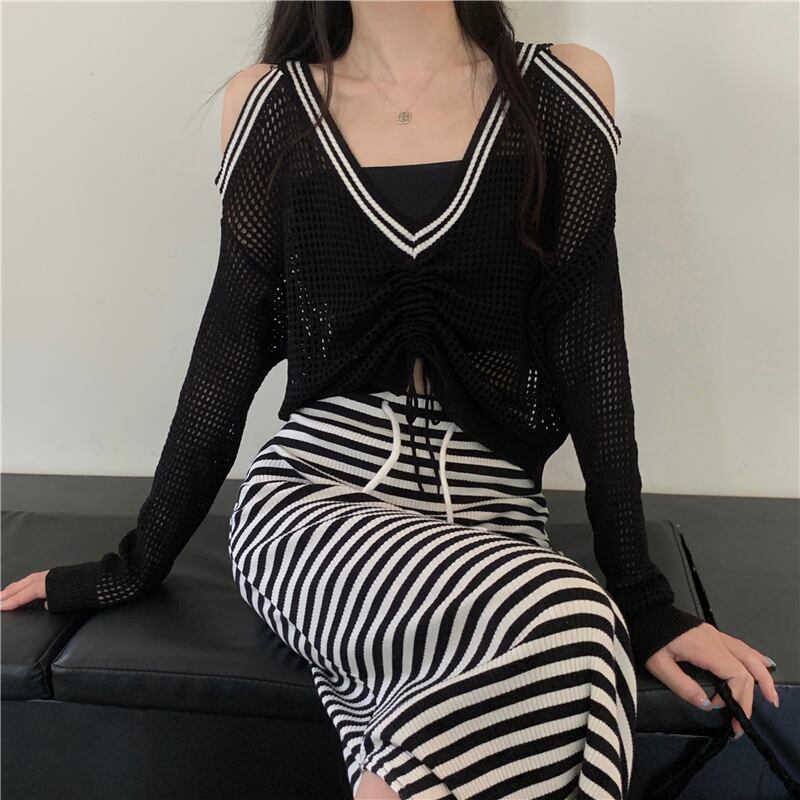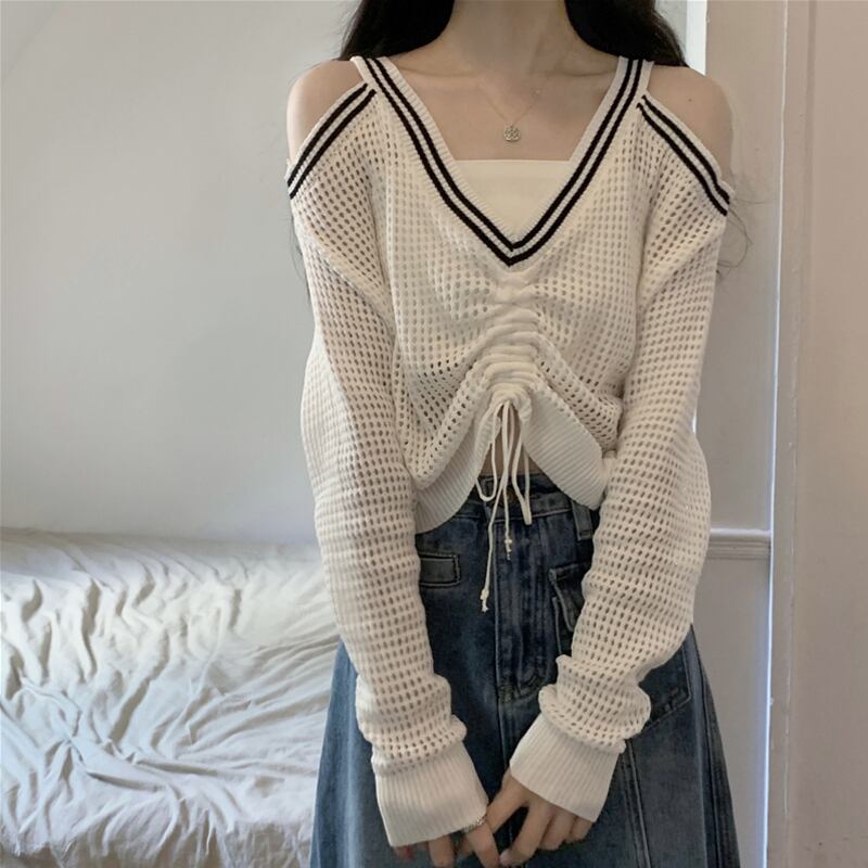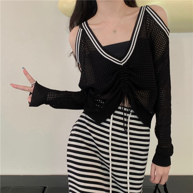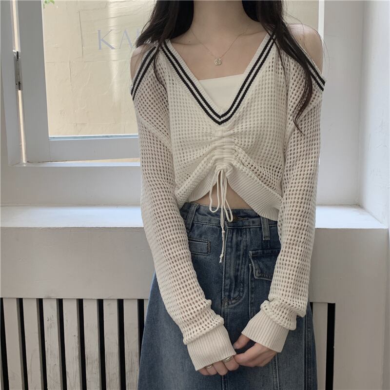 中空長袖トップ女性の夏の薄い日焼け止めブラウスゆったりしたデザインのユニークなドローストリング ショート ストラップレス t シャツ ロング サマー 夏物 Tシャツ 7460058100913574 | framboise21