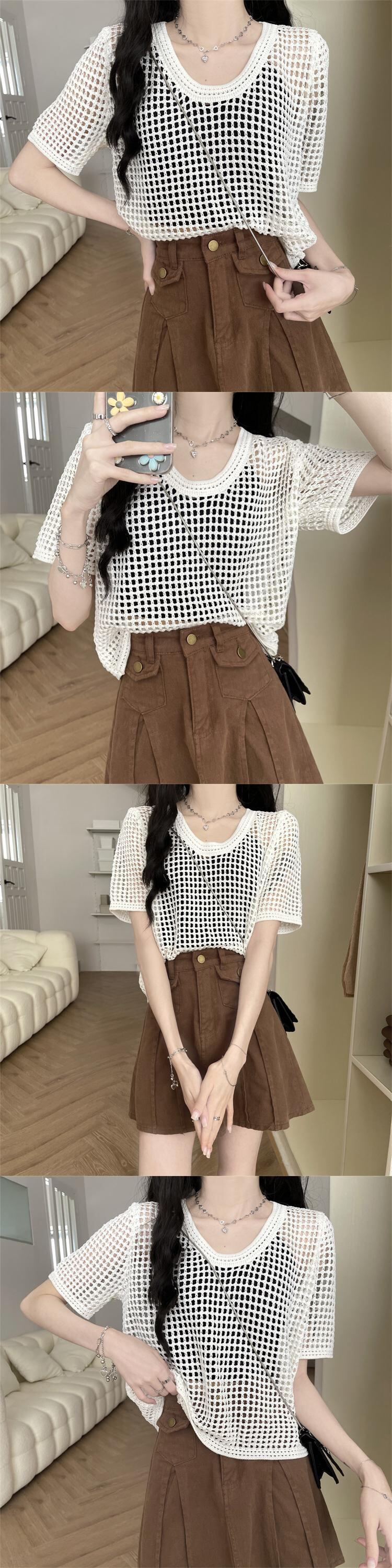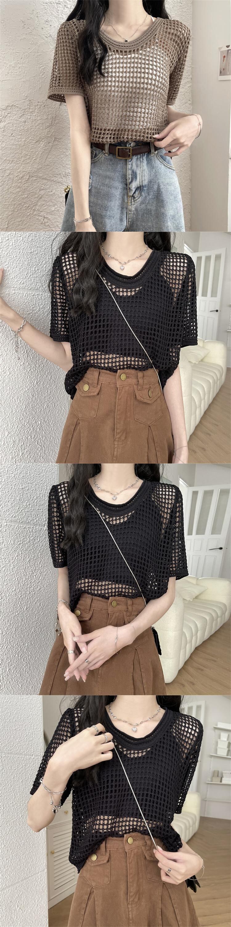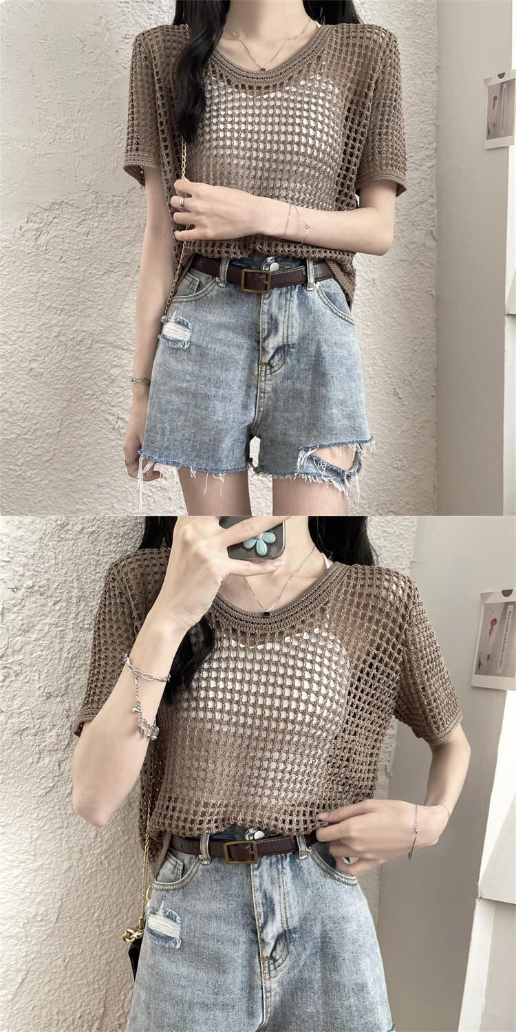 アウター ブラウス 夏 薄手 中空 半袖 Tシャツ レディース デザインニッチ アイスシルク ニット 日焼け止め ショートトップ サマー 夏物 7460017703975963 | framboise21
