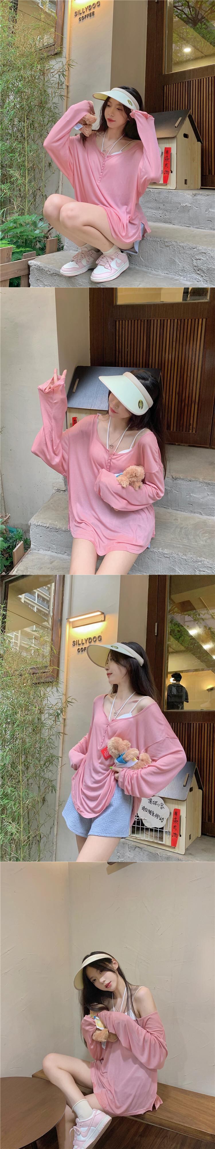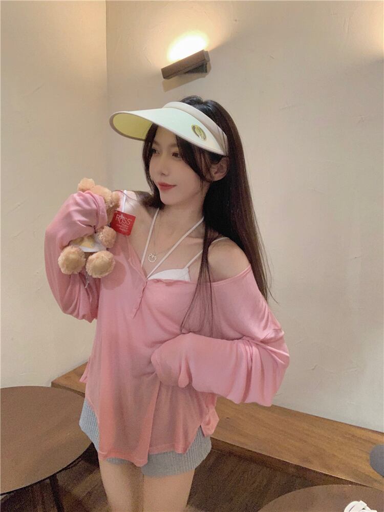 色:グレーの日焼け止めシャツ,ピンクの日焼け止めシャツ