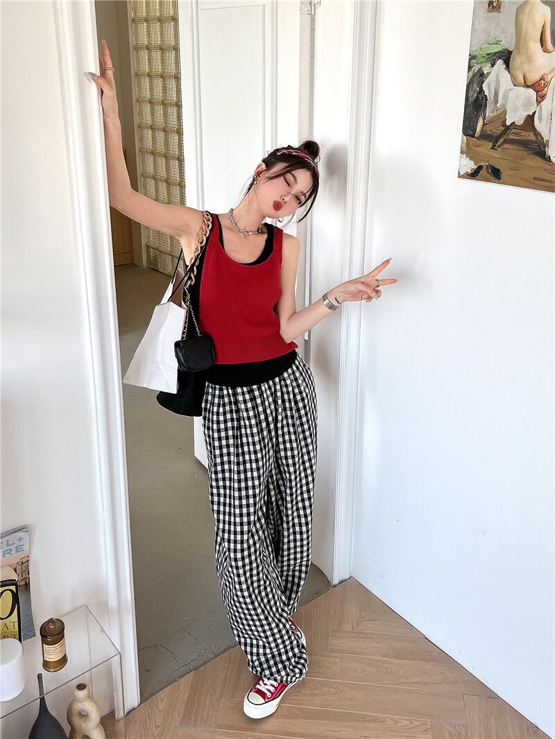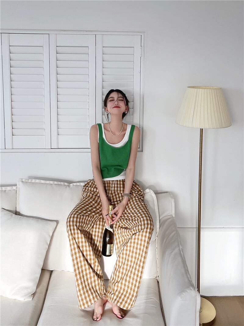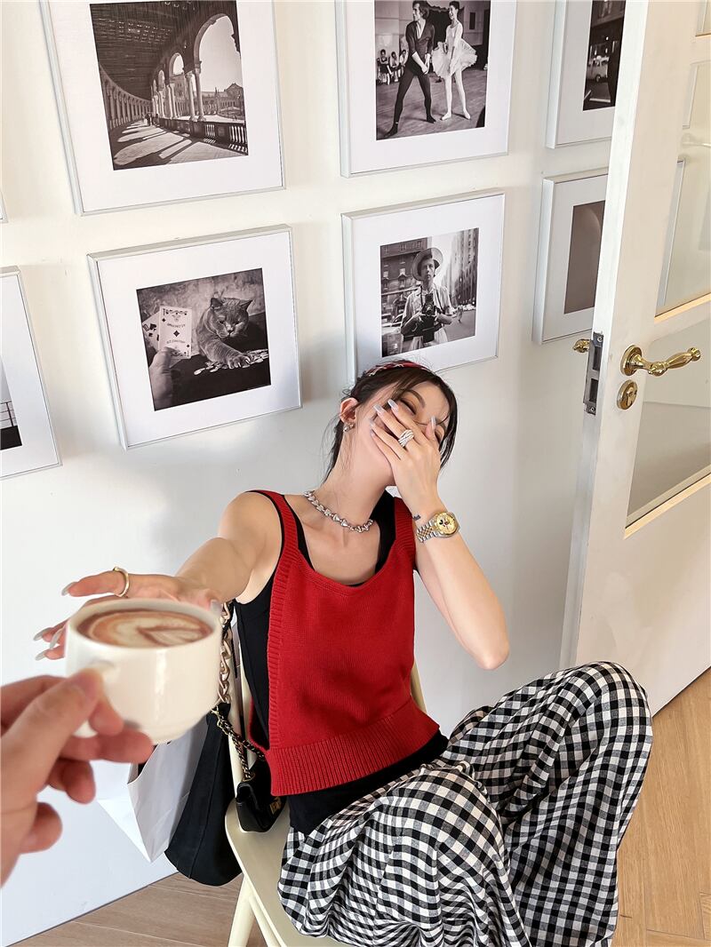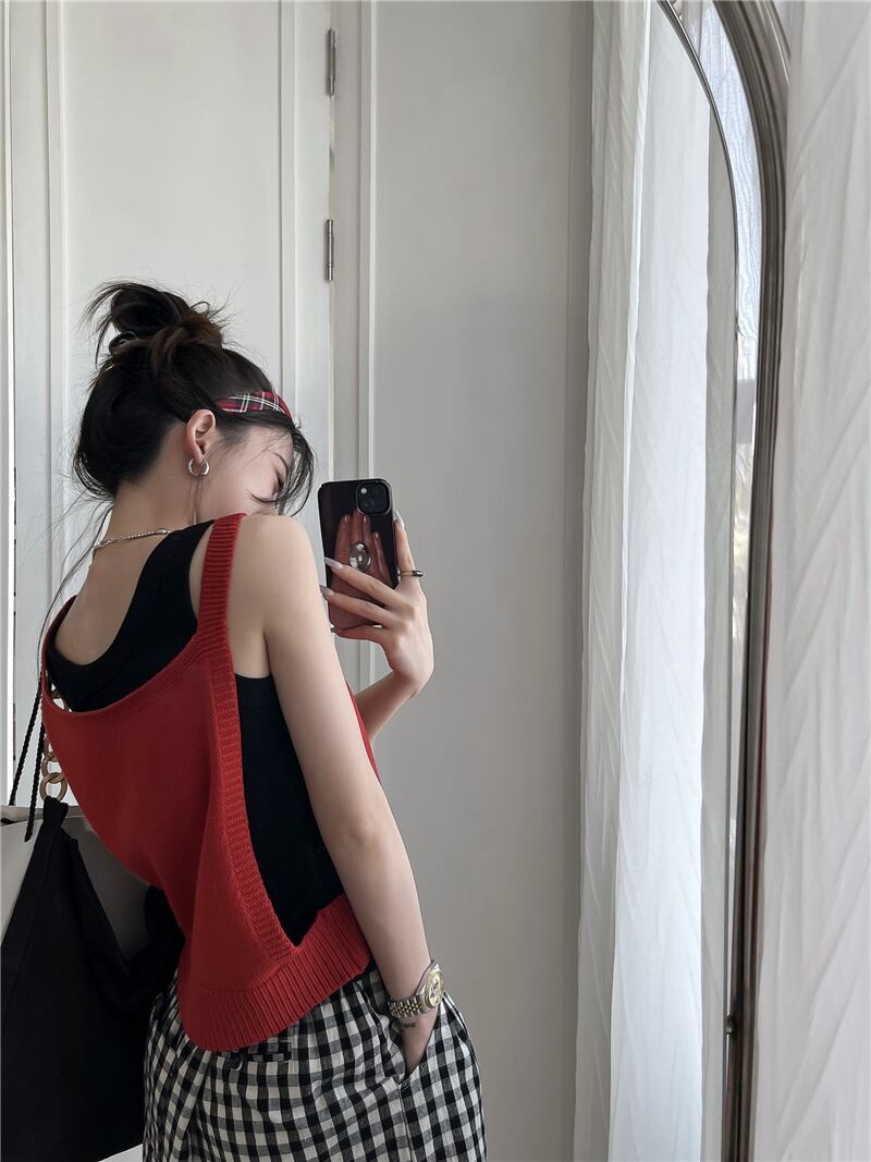 グリーンフェイクツーピースノースリーブニットベストTシャツレディース2022年夏新デザインセンスニッチスタッキングシントップ サマー 夏物 7460020982044394 | framboise21