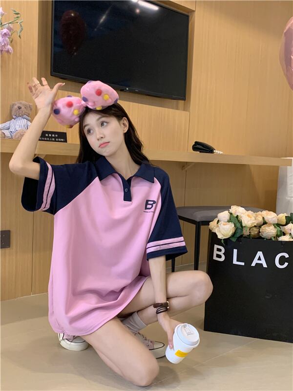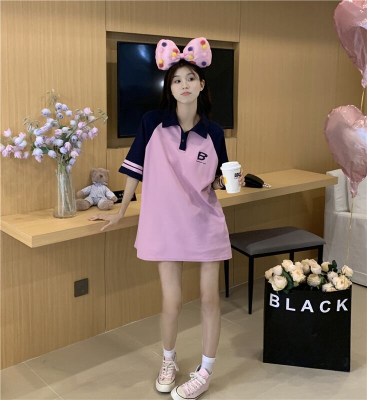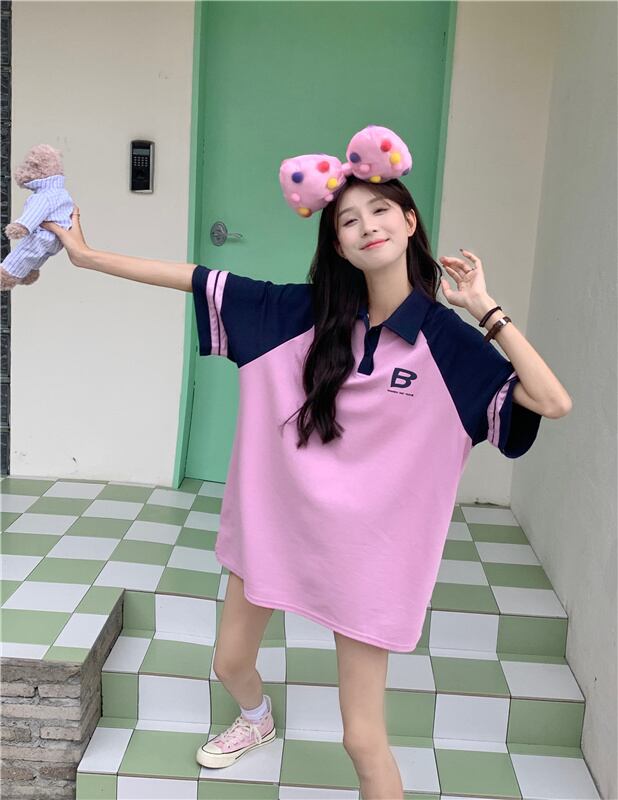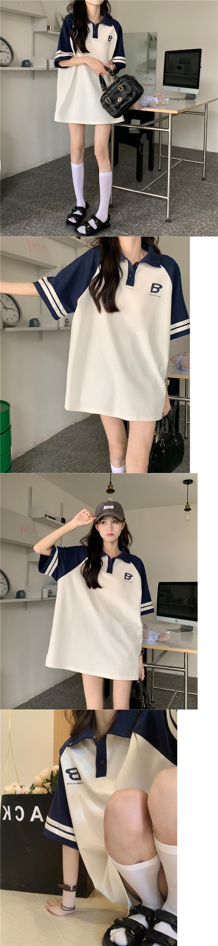 ポロ襟 Tシャツ ドレス レディース フェイク 2ピース ルーズコットン コントラストラグランスリーブ スポーツスタイル カジュアル レイジースカート 7460024819716498 | framboise21