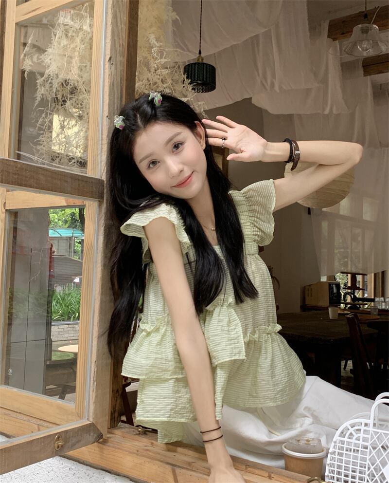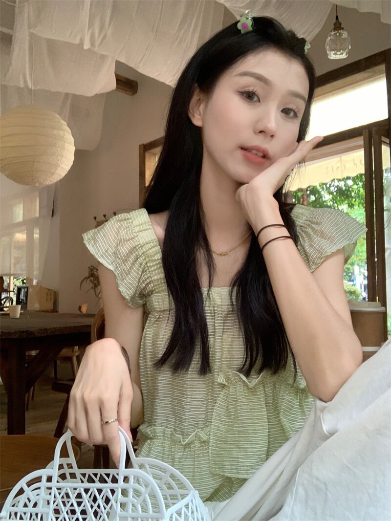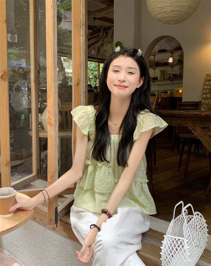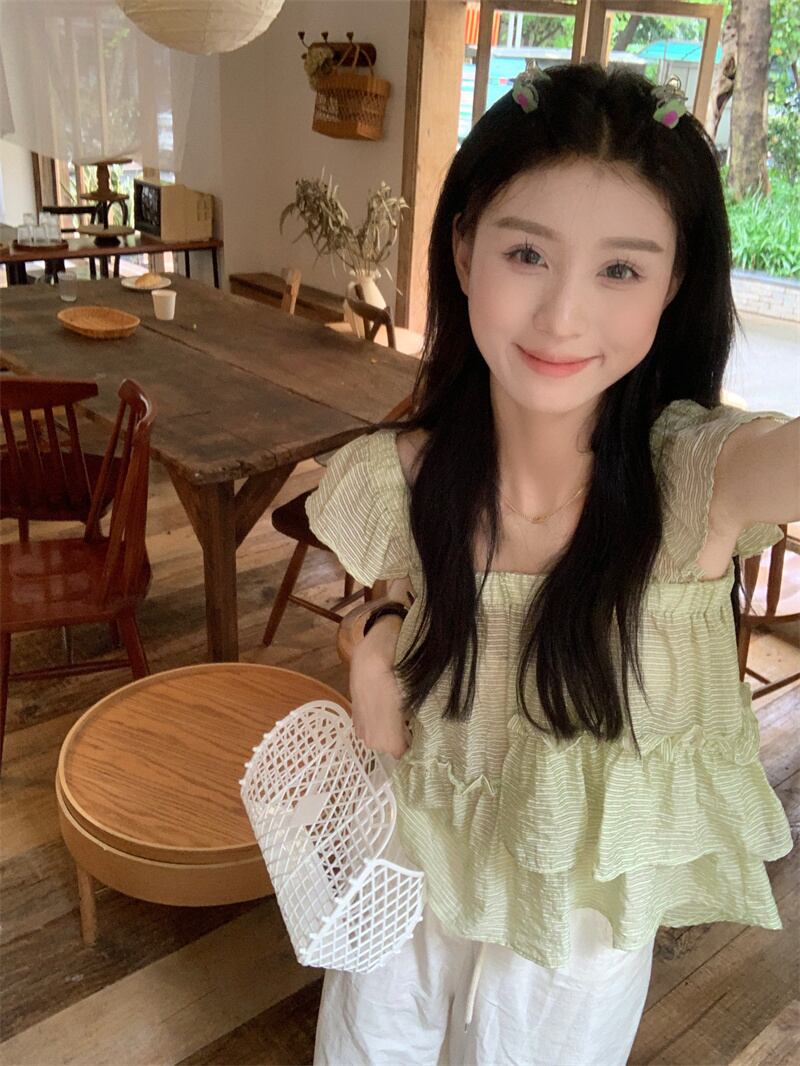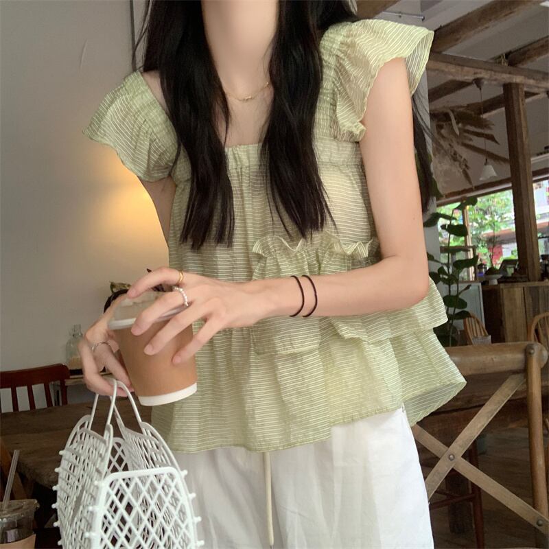 小さなフライング スリーブ トップと菌のエッジ夏人形シャツ 2022 新しい夏のノースリーブかわいい小さなスリング外着デザイン センス 大人ガーリー スウィート キュート カジュアル サマー 夏物 746006980810530 | framboise21