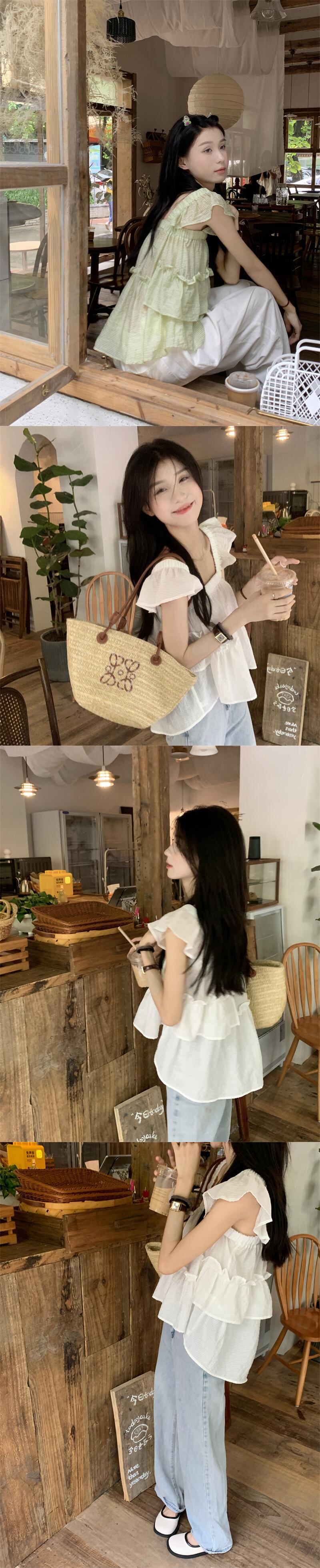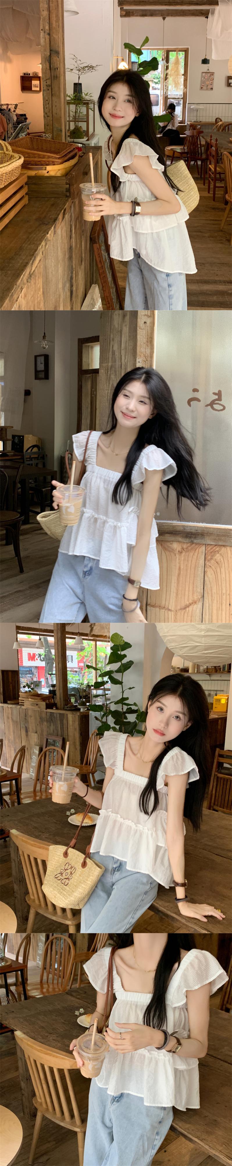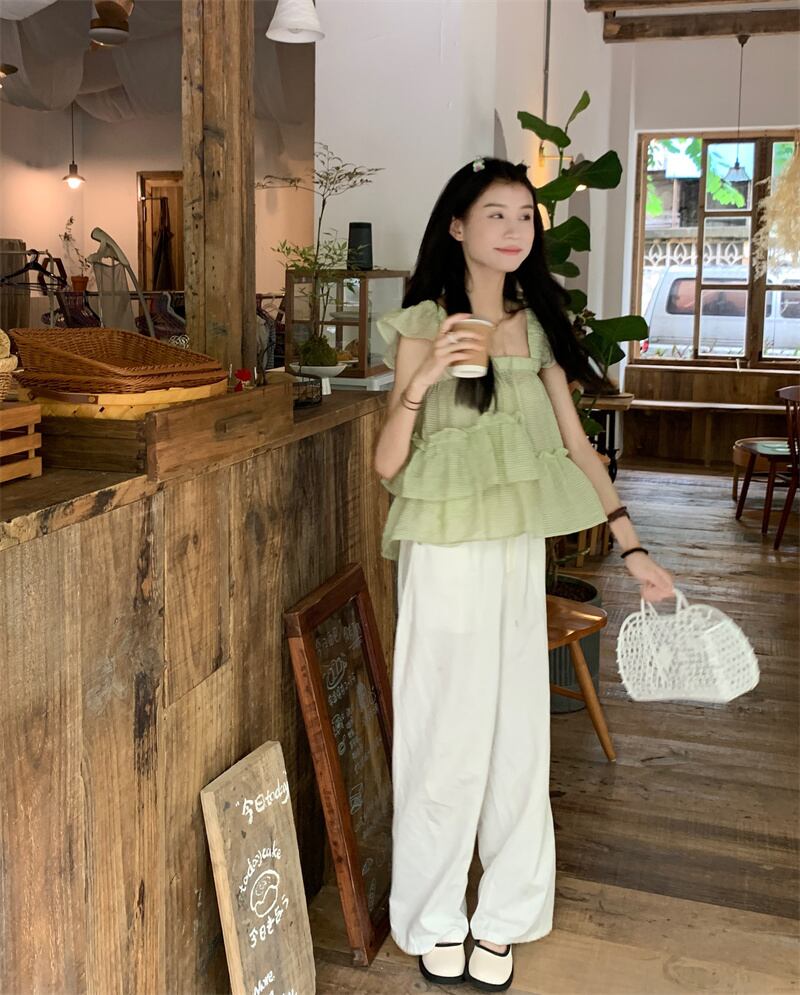小さなフライング スリーブ トップと菌のエッジ夏人形シャツ 2022 新しい夏のノースリーブかわいい小さなスリング外着デザイン センス 大人ガーリー スウィート キュート カジュアル サマー 夏物 746006980810530 | framboise21