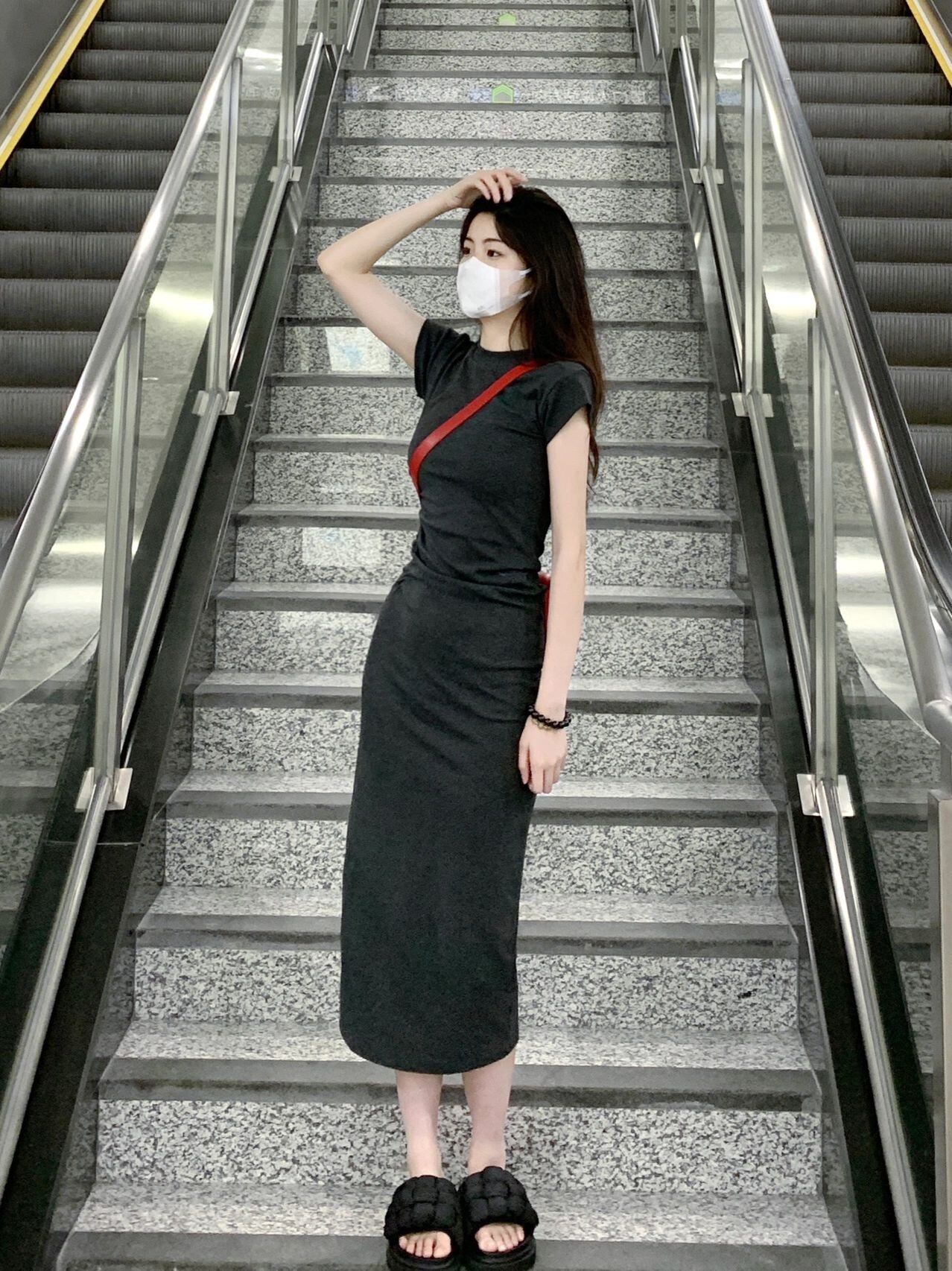 フランスのレトロなデザインのニッチなハイエンドセンスのパッケージヒップスリムフィットTシャツロングスカートピュアな欲望スタイルのドレス スリムヒップ 7460091036809026 | framboise21