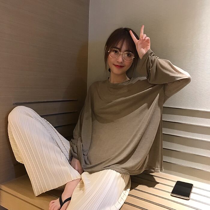 2022 新アイスシルク長袖 Tシャツ女性の夏のゆるい日焼け止めブラウス薄手のセクション怠惰なスタイルのシックなニッチトップ ロング サマー 夏物 7460093977844598 | framboise21