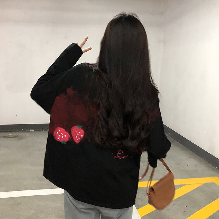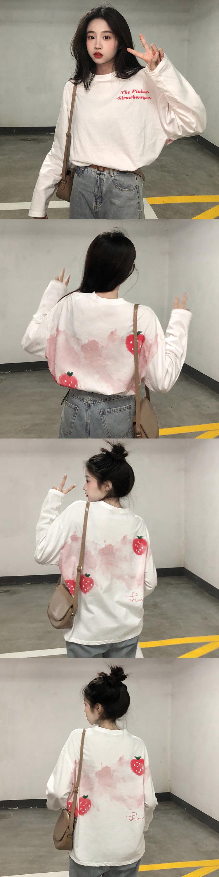 色:ホワイトバックストロベリーロングスリーブT,ブラックバックストロベリーロングスリーブT
