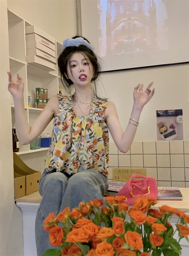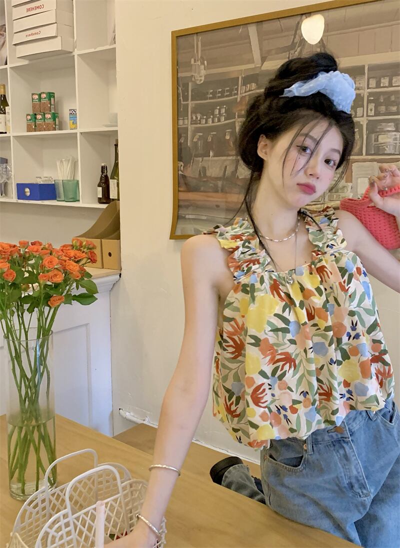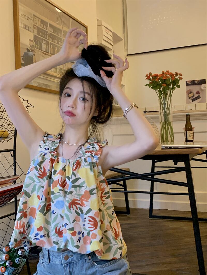 花柄 ノースリーブ キャミソール レディース 夏 シック 甘く 年齢 を 減らす ショート アウター トップス 大人ガーリー スウィート キュート カジュアル サマー 夏物 7460060699057583 | framboise21