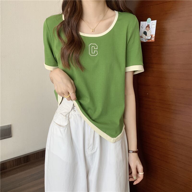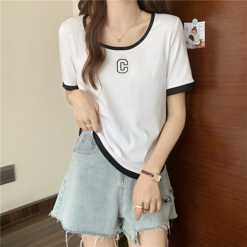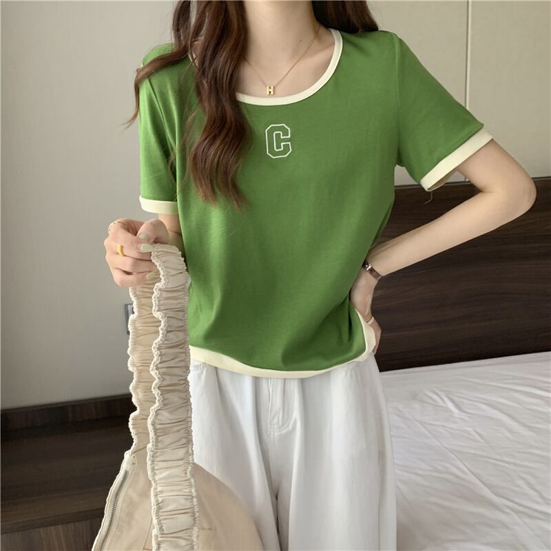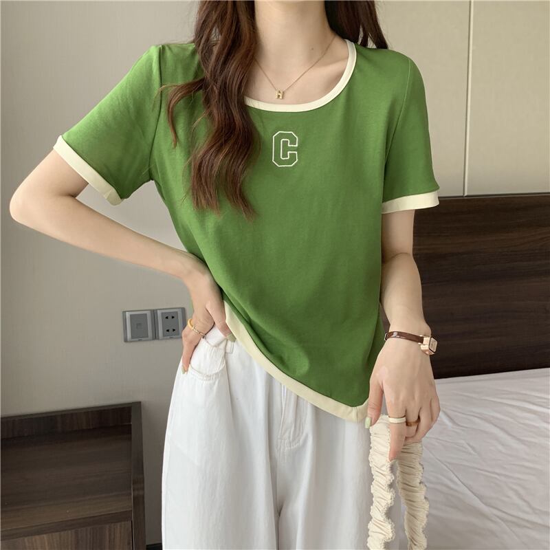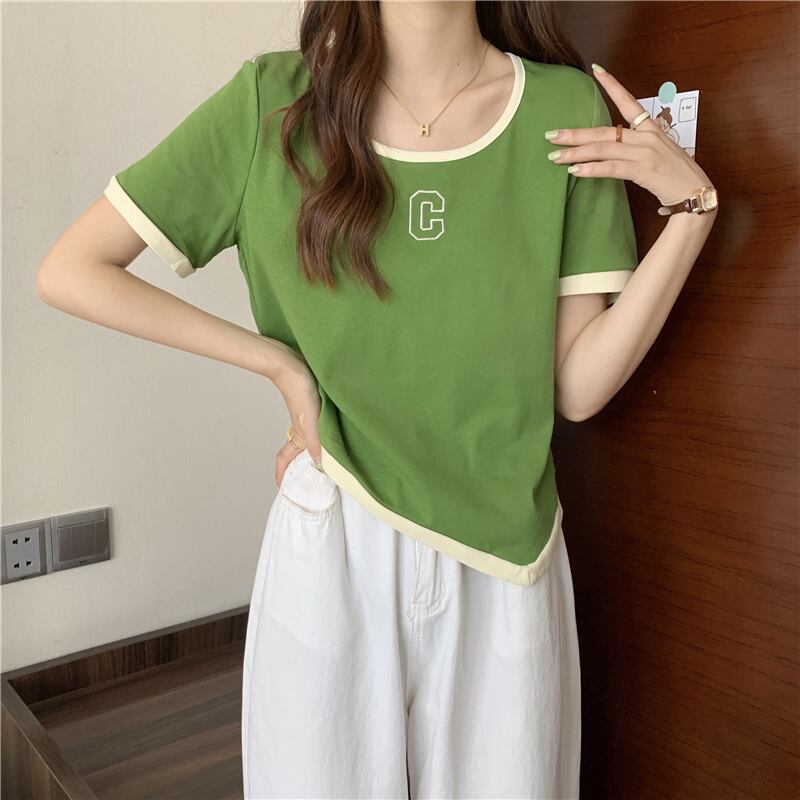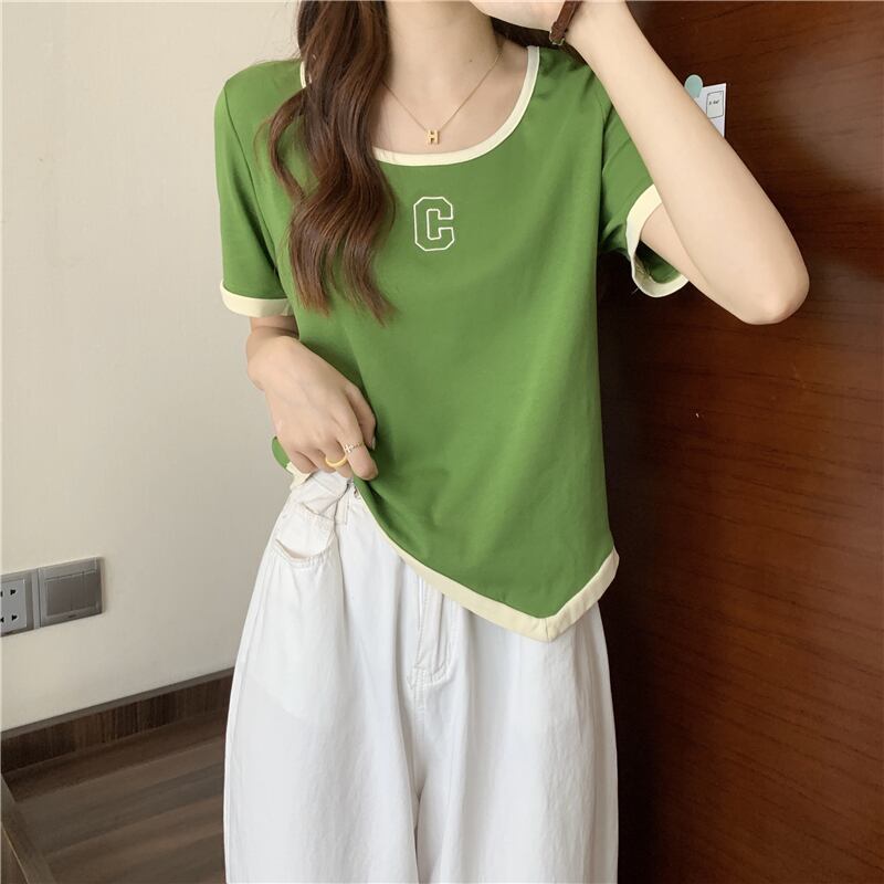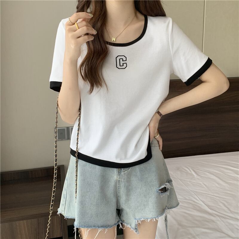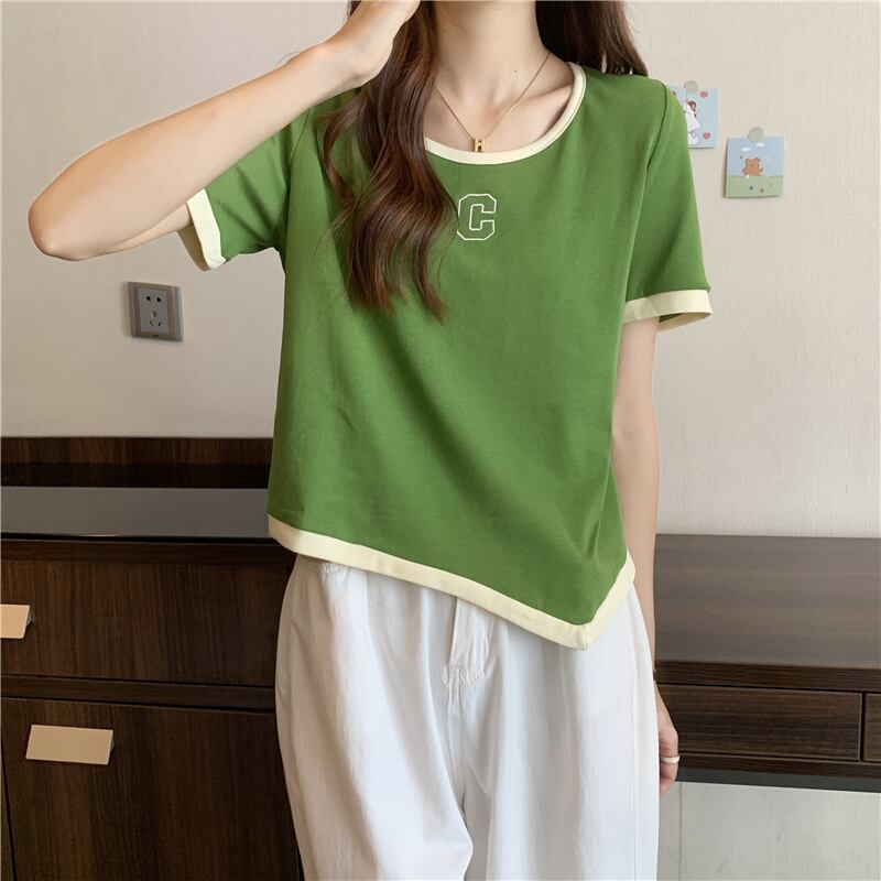 刺繍 ショルダー 半袖 Tシャツ レディース 夏 イレギュラー デザイン 小さめバージョン ゆったり ハイウエスト ショートトップ トレンド ハイウェスト レッド サマー 夏物 7460089034147010 | framboise21
