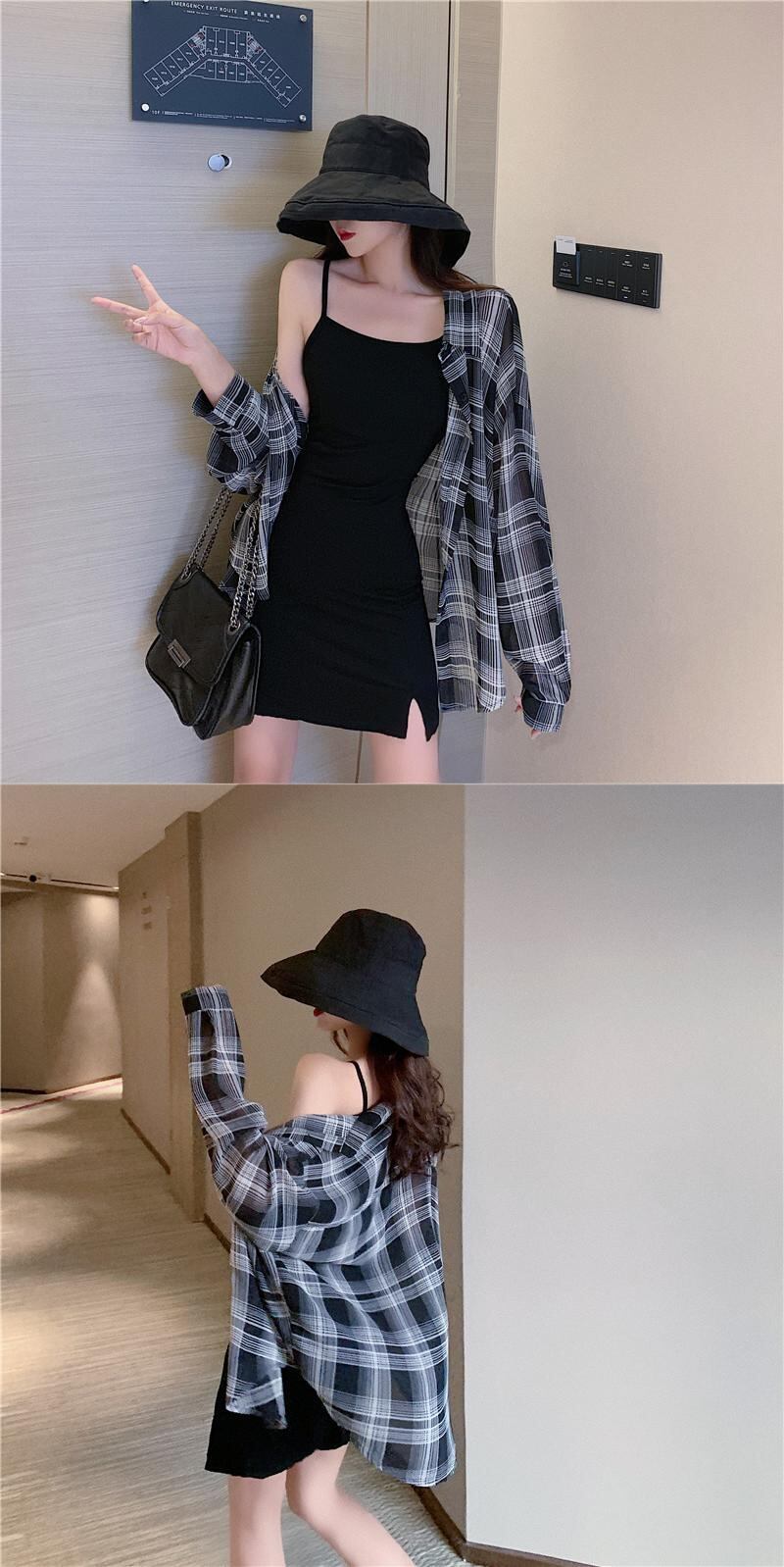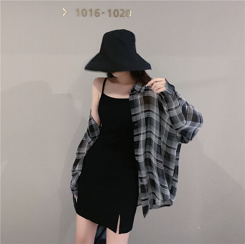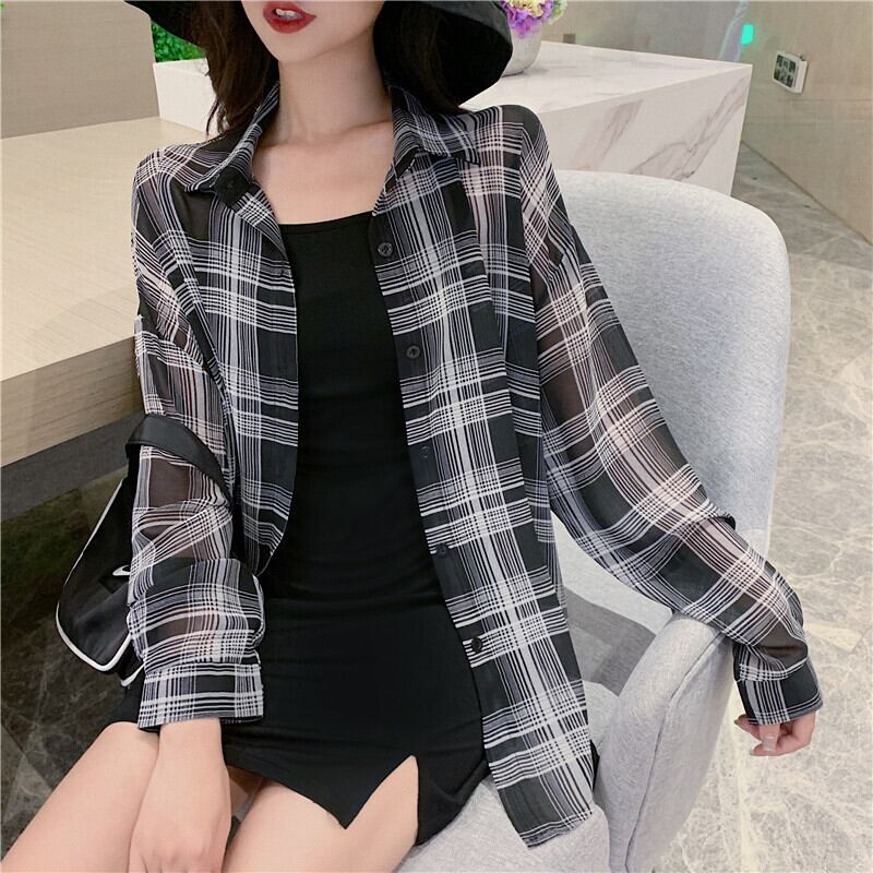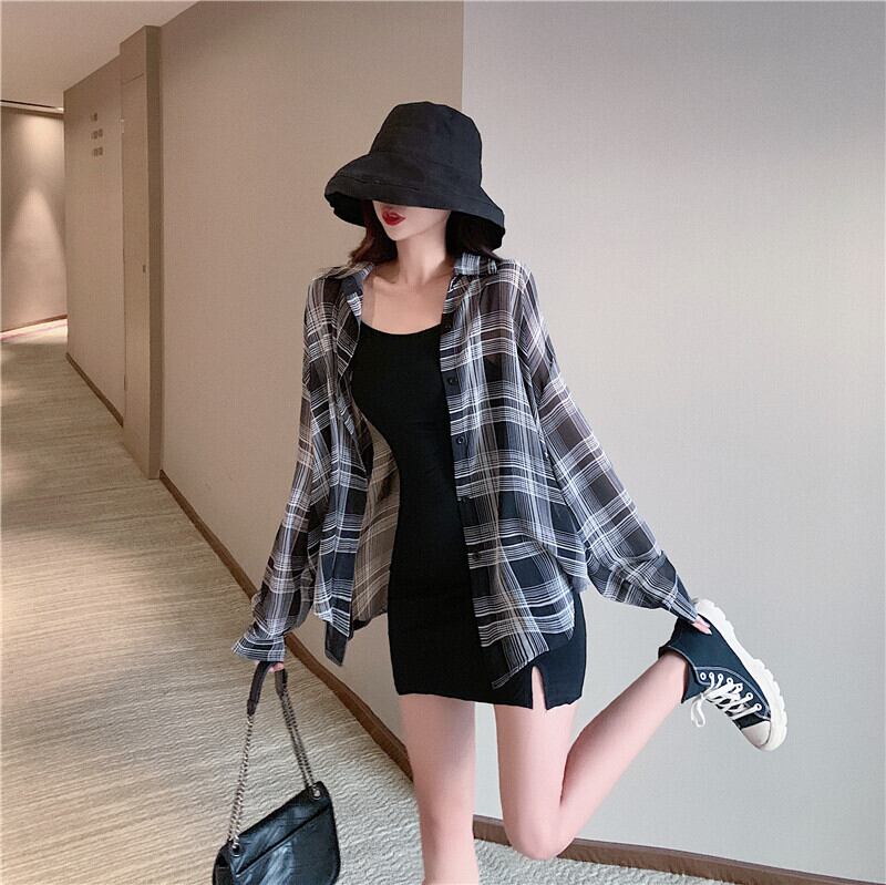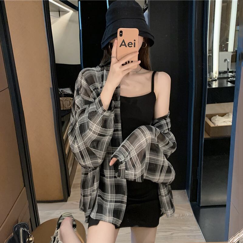 チェック柄日焼け止めシャツ レディース 夏 薄手 カーディガン ジャケット レトロ デザイン ゆったり アウター ミドル丈 トップス サマー 夏物 7460079503892177 | framboise21