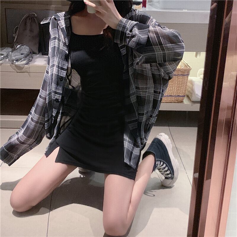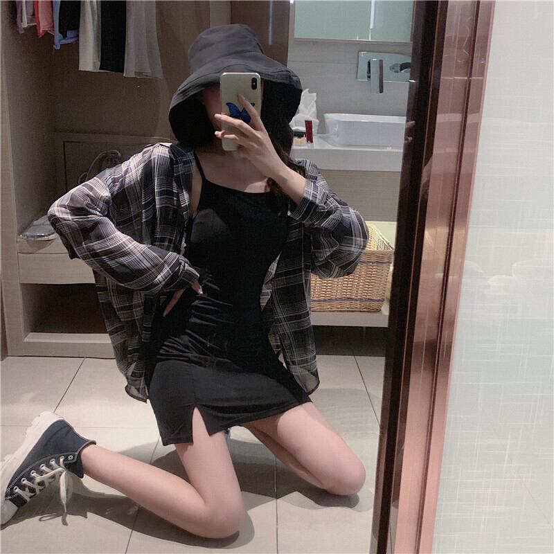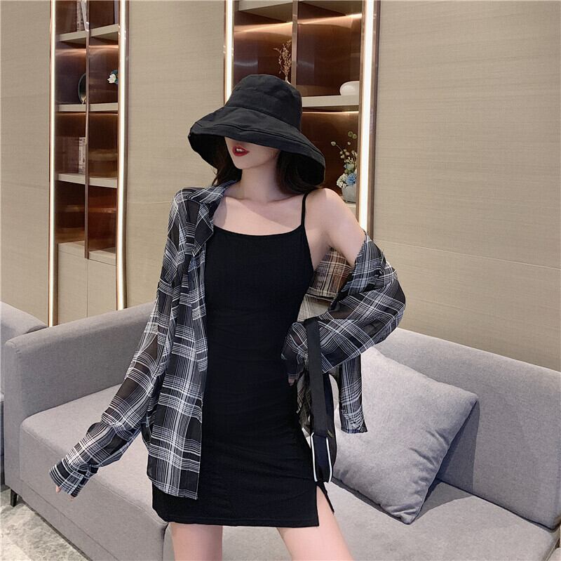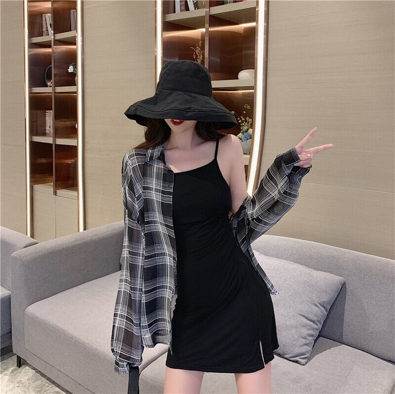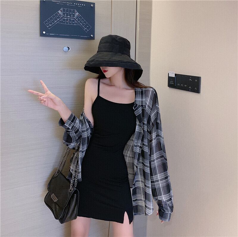 チェック柄日焼け止めシャツ レディース 夏 薄手 カーディガン ジャケット レトロ デザイン ゆったり アウター ミドル丈 トップス サマー 夏物 7460079503892177 | framboise21