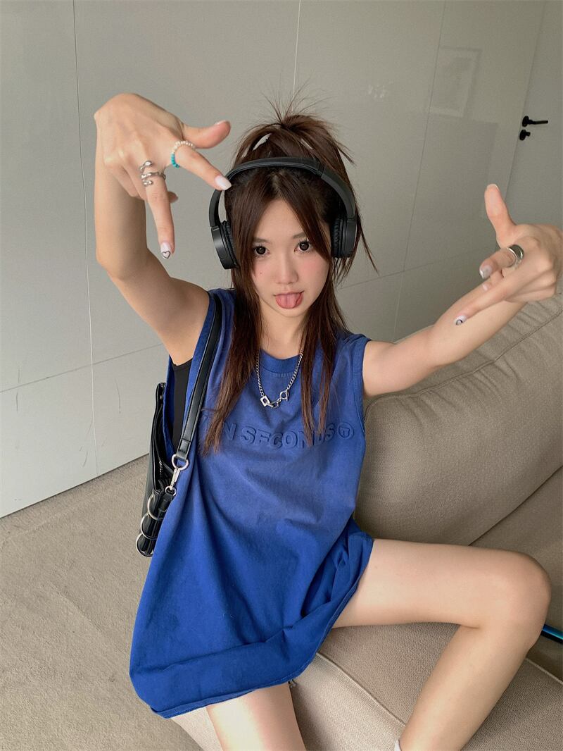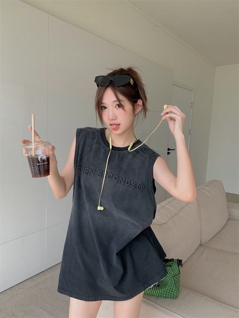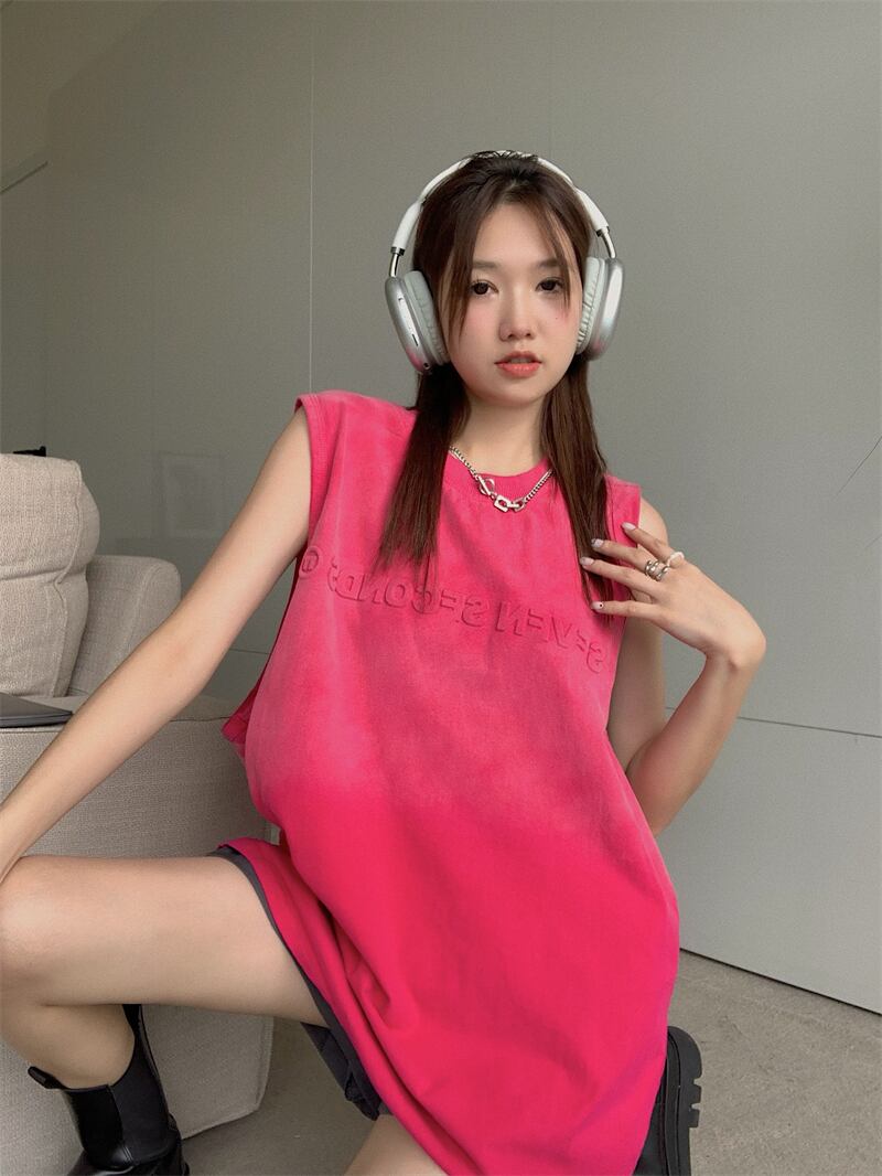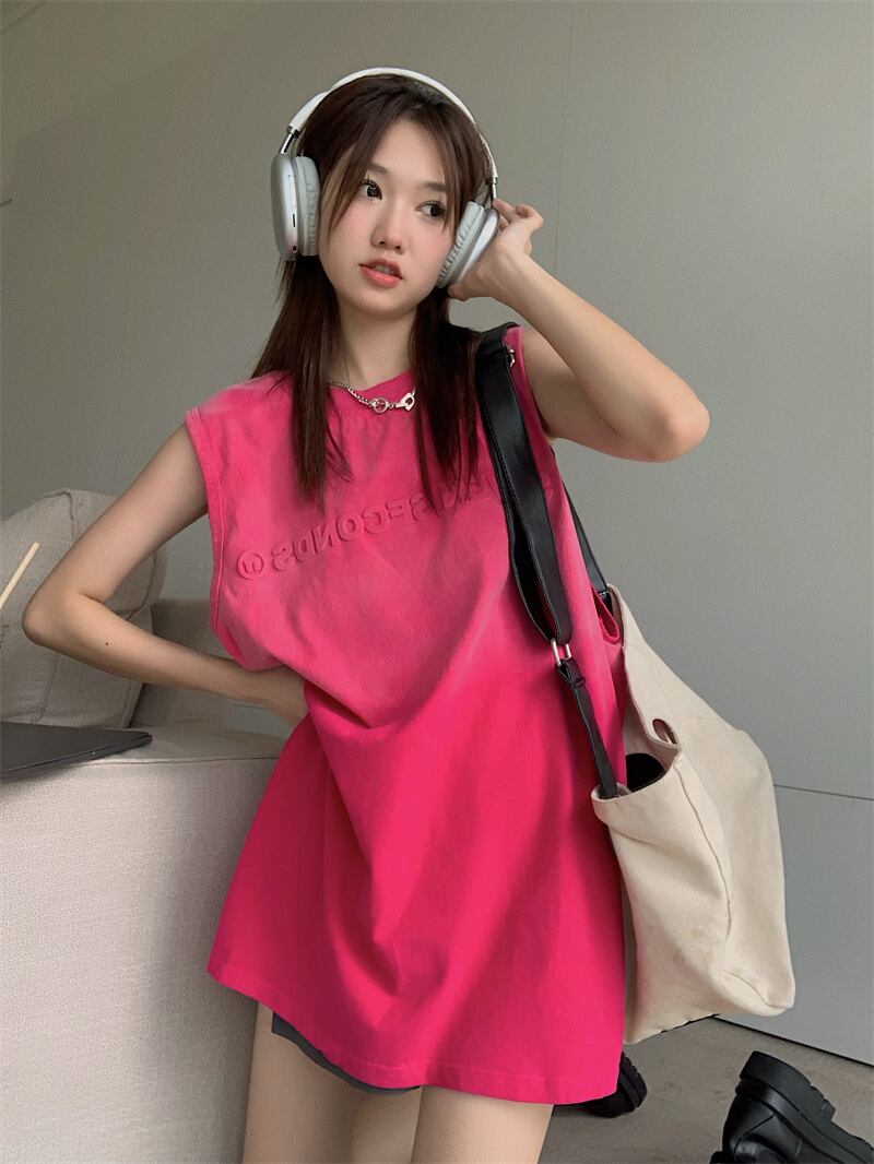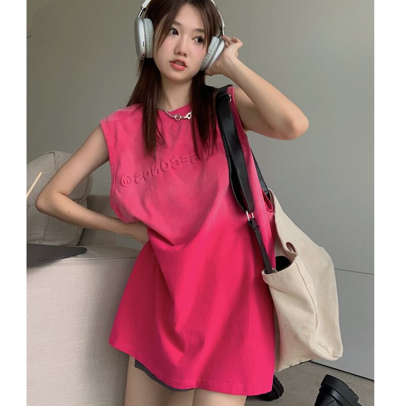 アメリカンスタイル スポーツ ベスト ノースリーブ キャミソール レディース 夏 アウター ウォッシュド カジュアル ゆったり ミドル丈 Tシャツ トップス サマー 夏物 7460017129000879 | framboise21