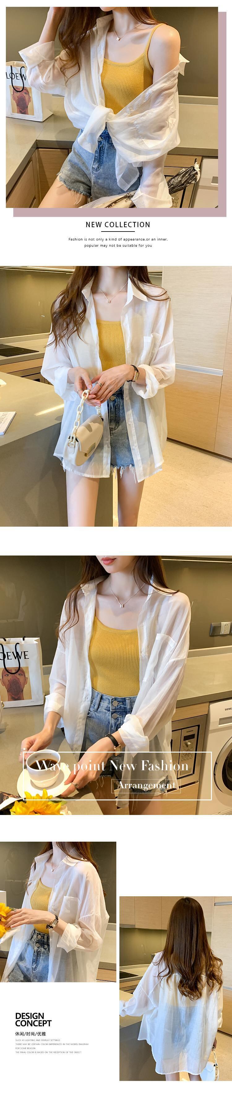 白い日焼け止めシャツ女性の夏の薄いカーディガン ジャケット シフォン トップ ショール サスペンダー スカートとブラウス ホワイト サマー 夏物 7460026989398994 | framboise21