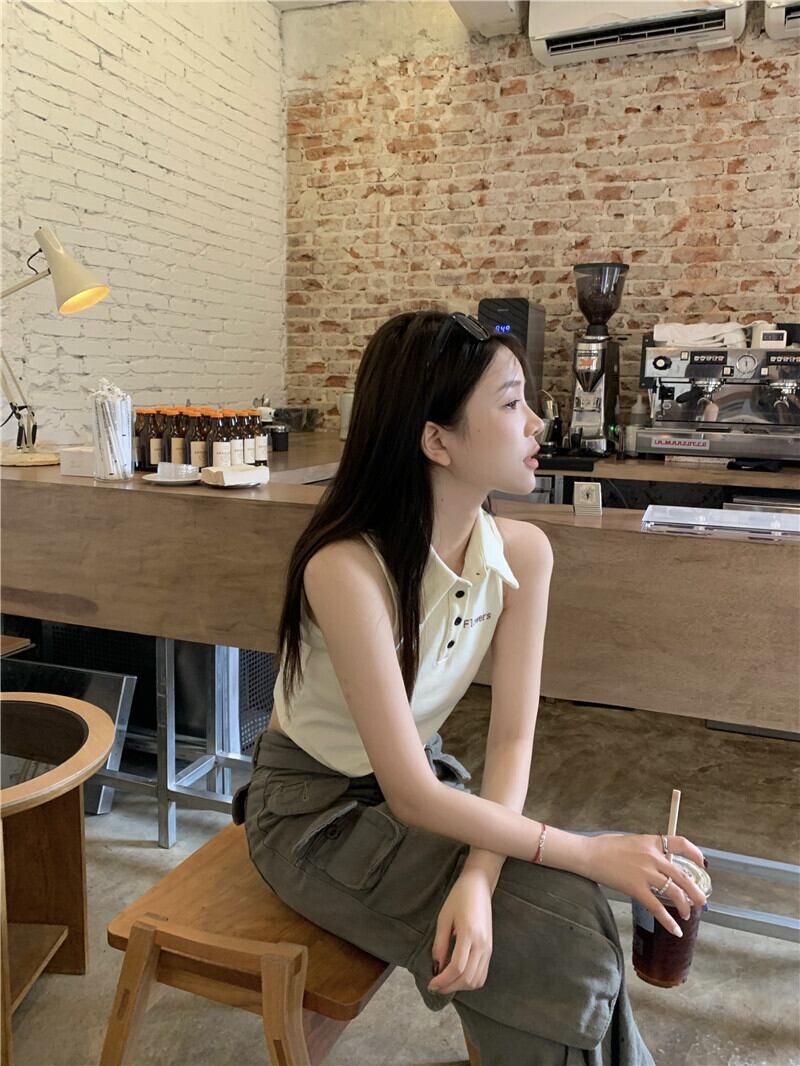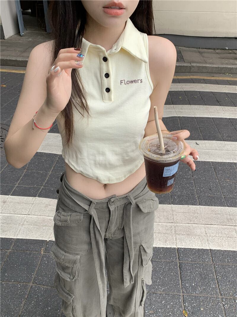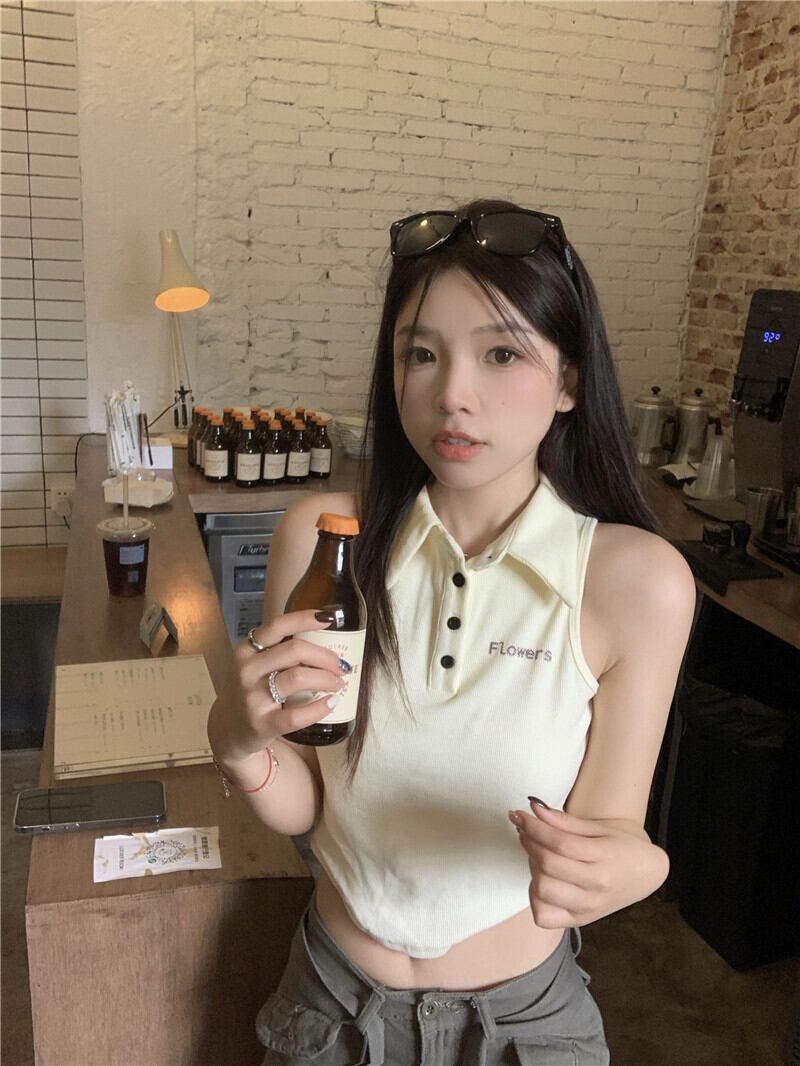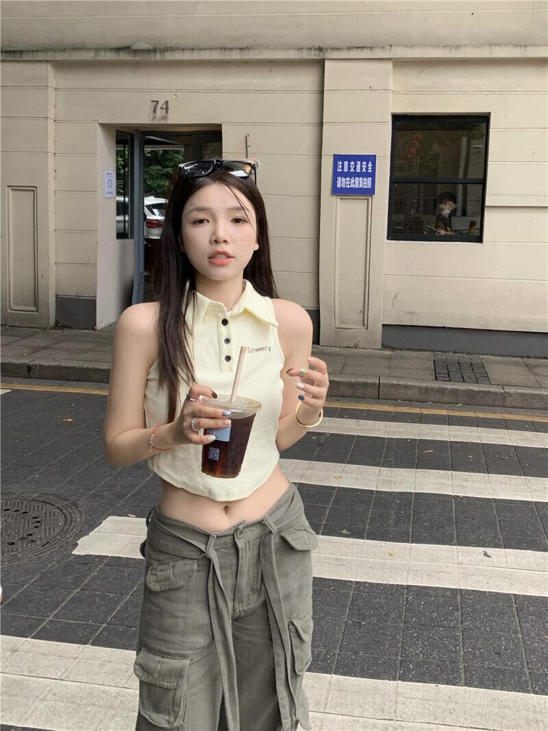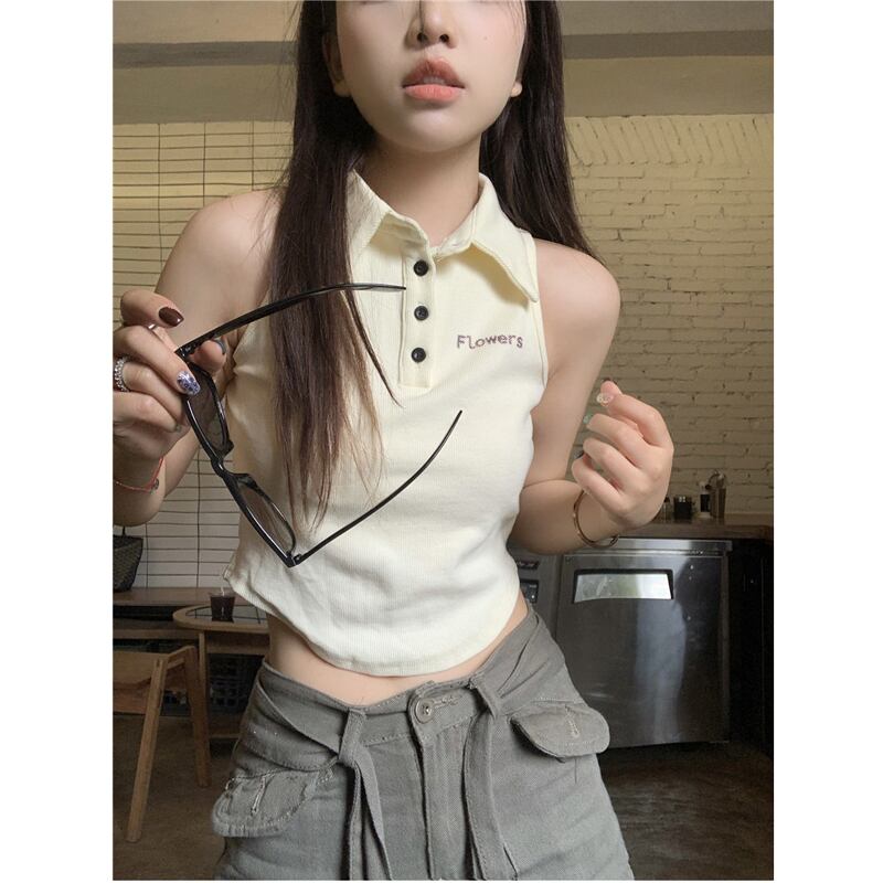 ポロカラー キャミソール レディース 夏 ノースリーブ アウター ショートラペル ホットガール パイパン ショルダー ホルター トップス アメリカン レトロ サマー 夏物 7460094719496671 | framboise21