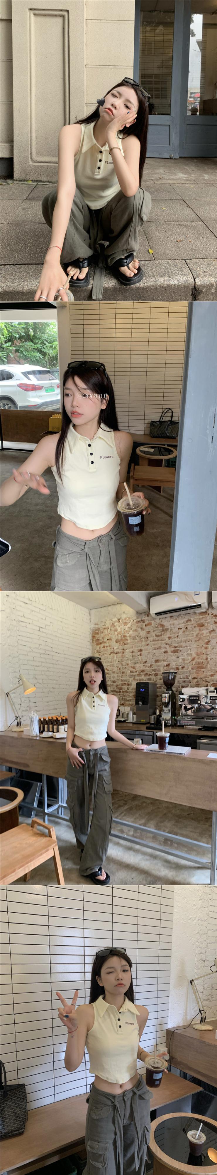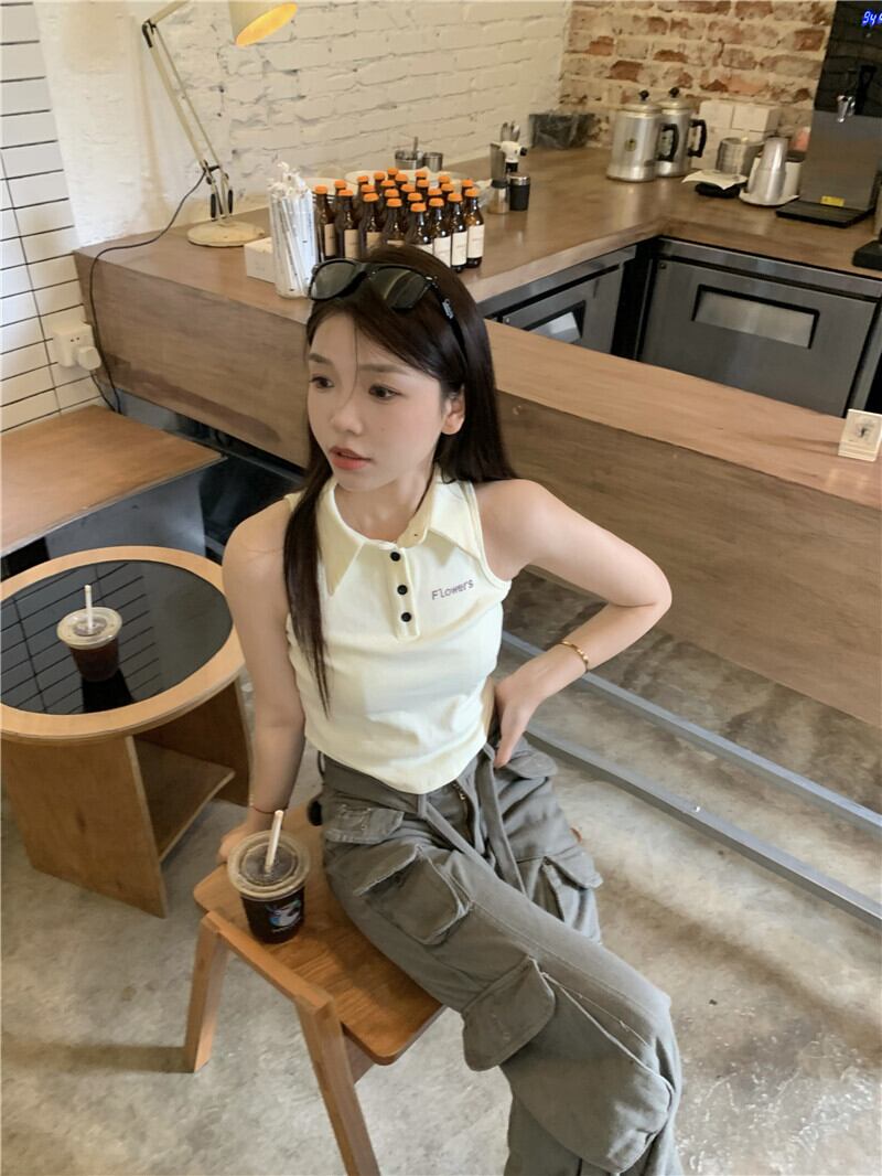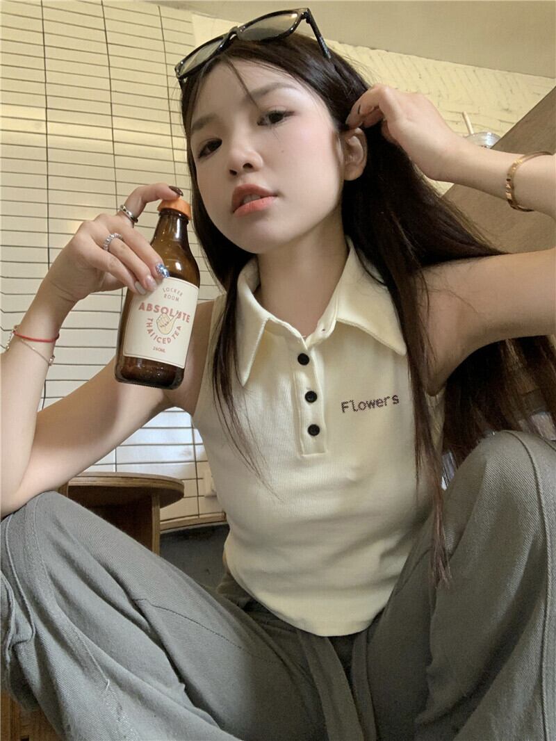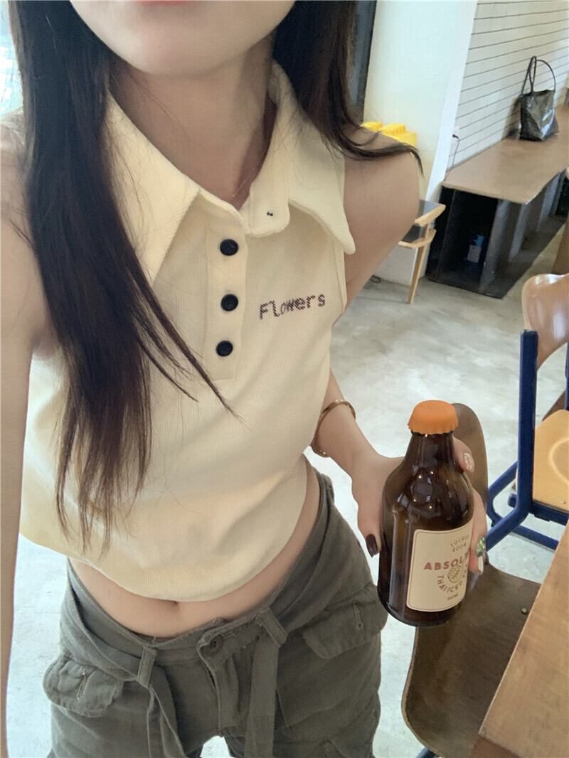 ポロカラー キャミソール レディース 夏 ノースリーブ アウター ショートラペル ホットガール パイパン ショルダー ホルター トップス アメリカン レトロ サマー 夏物 7460094719496671 | framboise21
