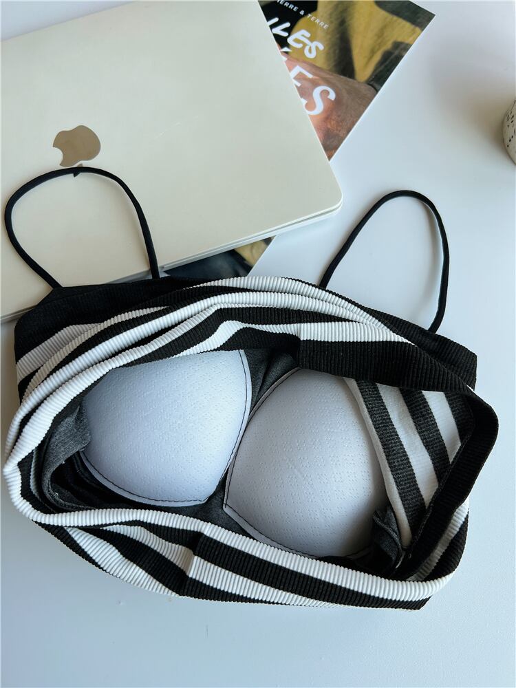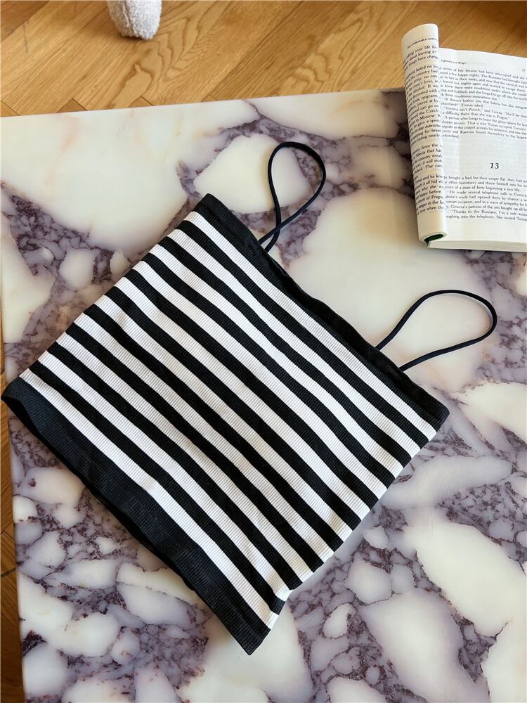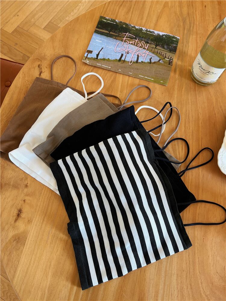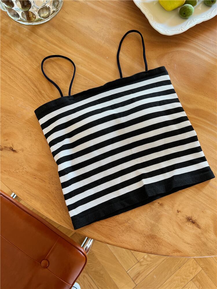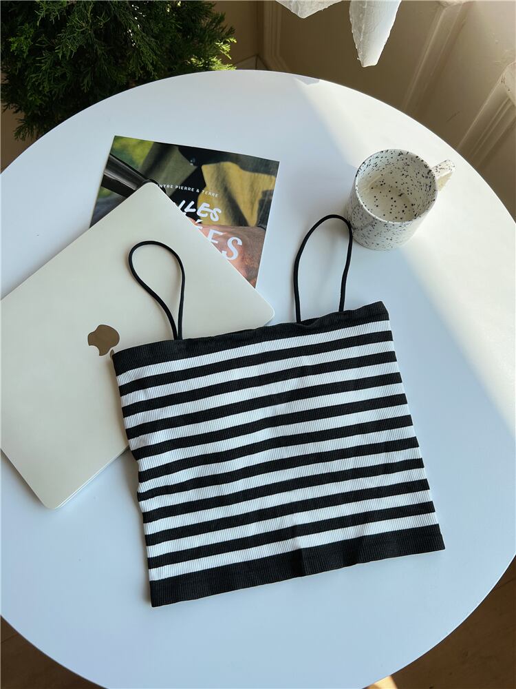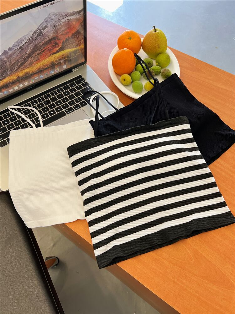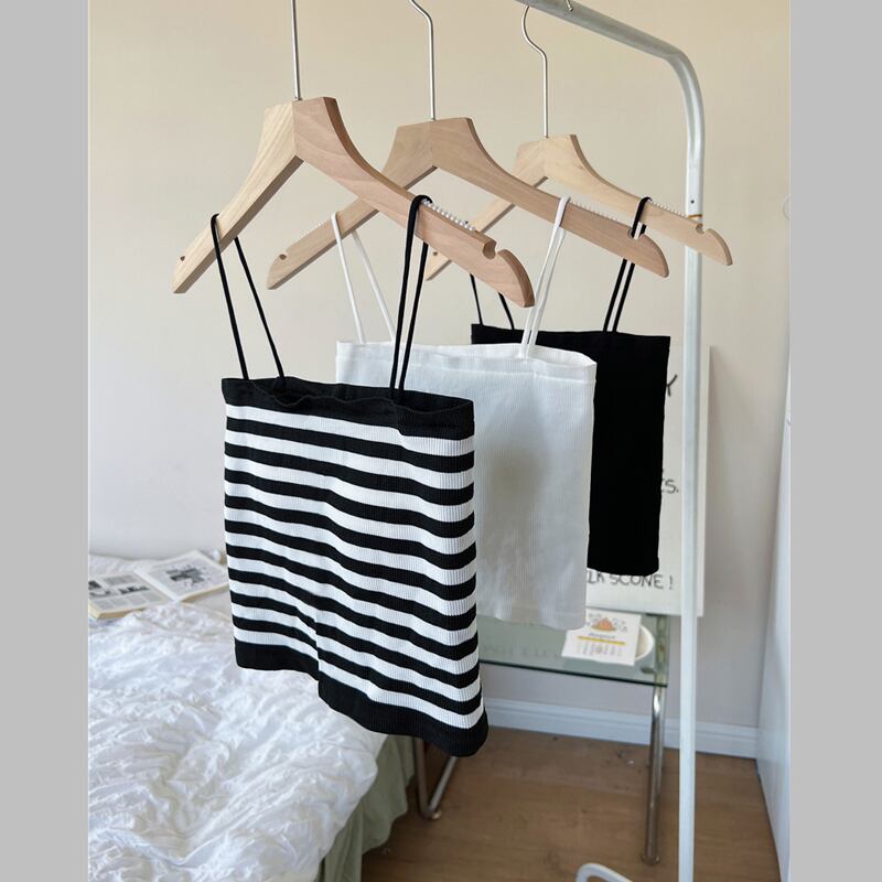 ニット ストライプ キャミソール レディース 夏 ショート チューブトップ 上着 アウター ノースリーブ Tシャツ ラップ 胸元 ボトムス シャツ サマー 夏物 7460095960178357 | framboise21