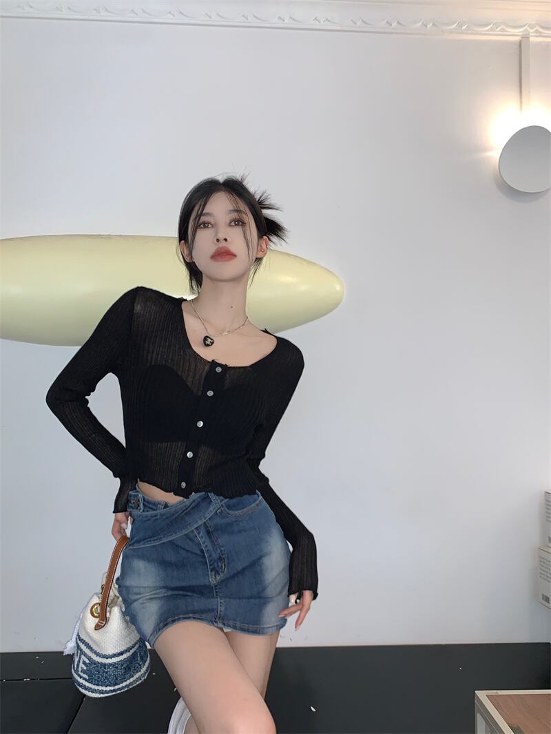 日焼け止めカーディガン、薄手のアイスシルクニットセーター、レディースサマー、スモールスリング、ショール、ショート丈エアコンシャツ、トップス 夏物 7460011044055957 | framboise21
