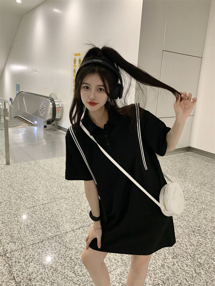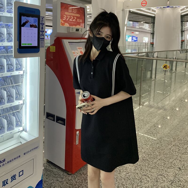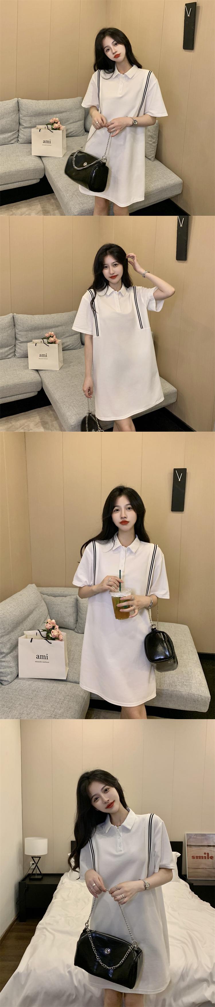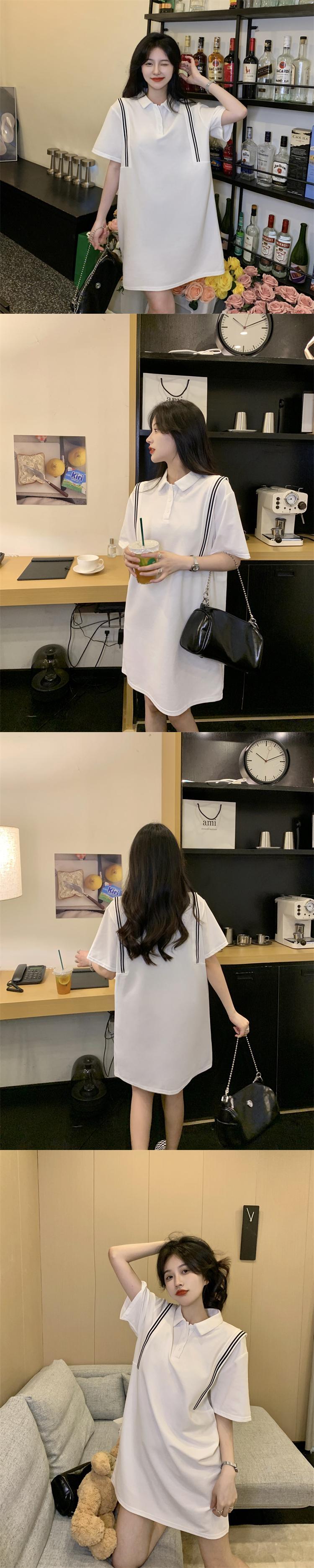 夏ポロ襟ワンピース レディース ゆったり 大きいサイズ ダブルショルダー ストライプ ステッチ Tシャツ スカート BF 大きめサイズ サマー 夏物 7460069447320442 | framboise21