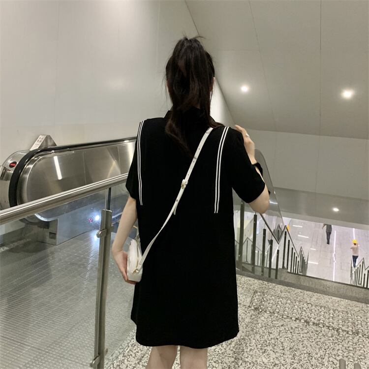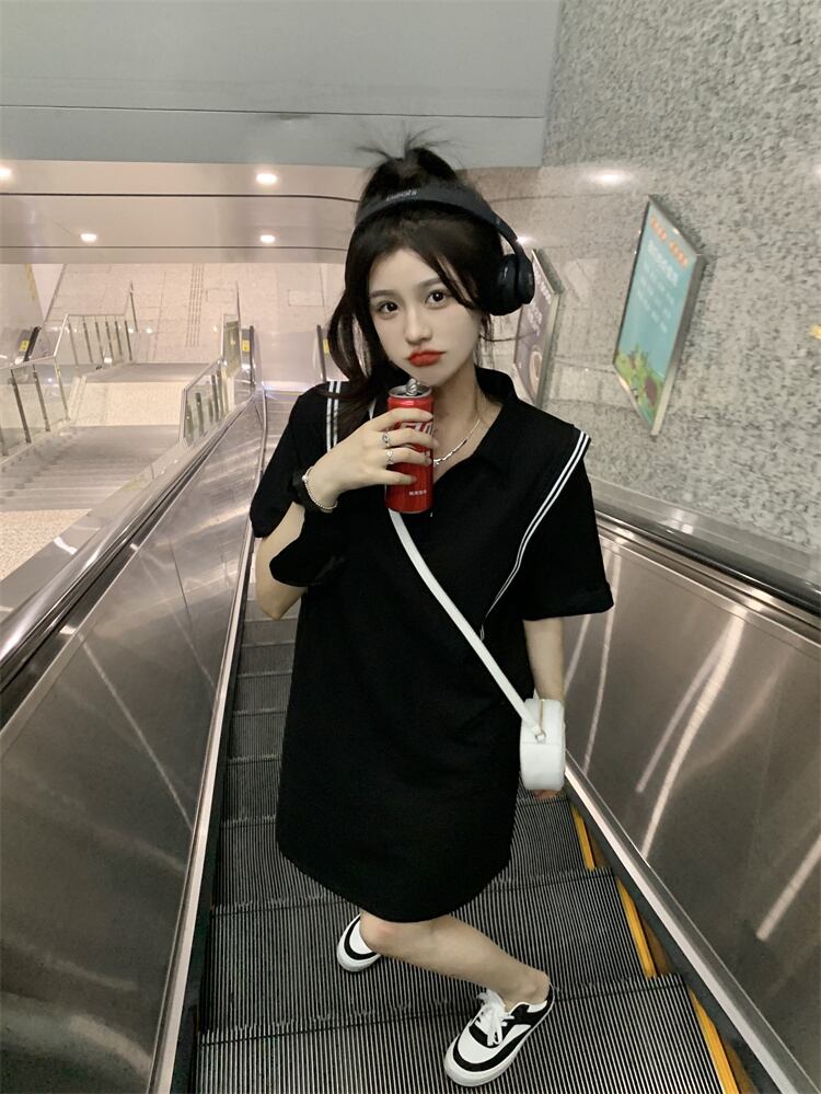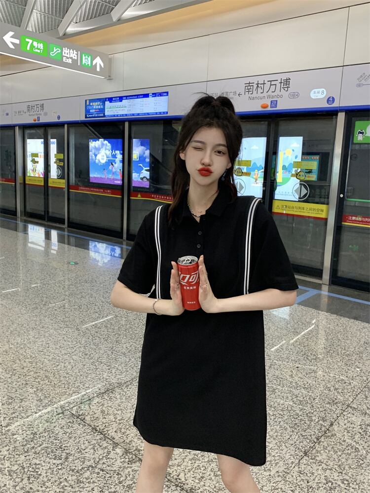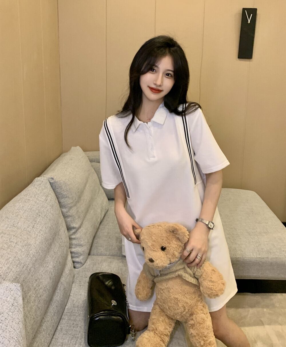 夏ポロ襟ワンピース レディース ゆったり 大きいサイズ ダブルショルダー ストライプ ステッチ Tシャツ スカート BF 大きめサイズ サマー 夏物 7460069447320442 | framboise21