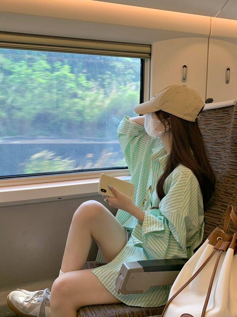 日焼け止めストライプ シャツ女性の秋の薄いセクション 2022 新しいルーズ ミッドレングス グリーン ポロ長袖シャツ コート ロング オータム 秋物 7460059142369620 | framboise21