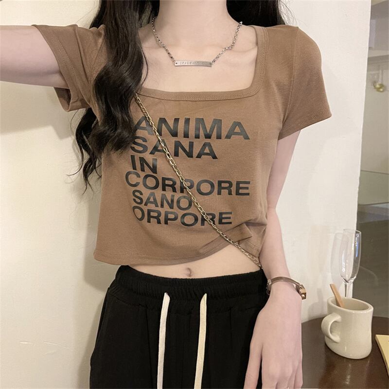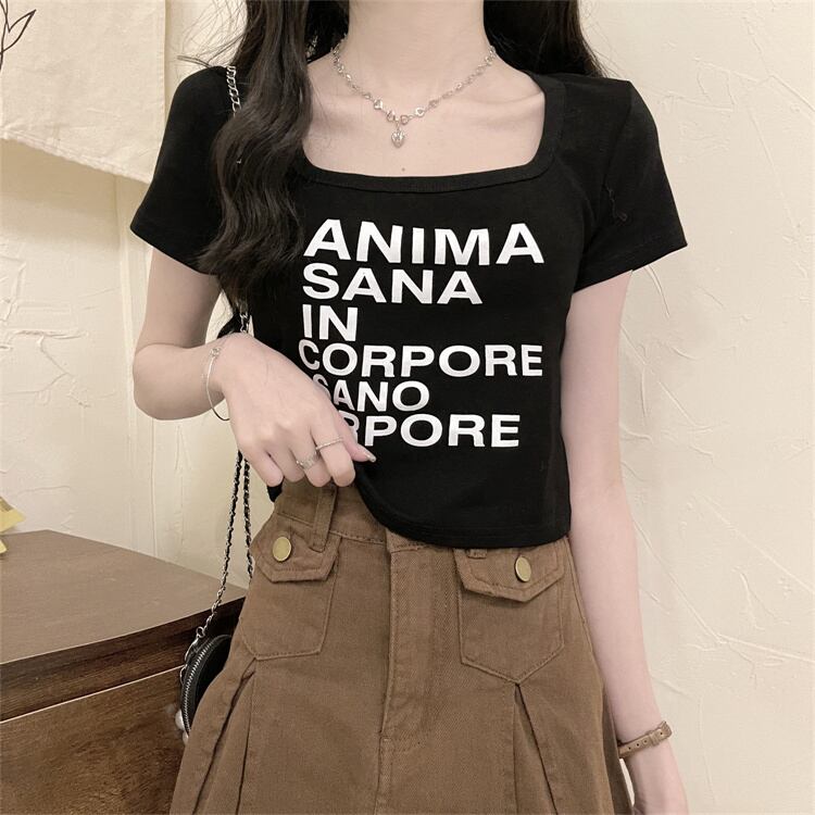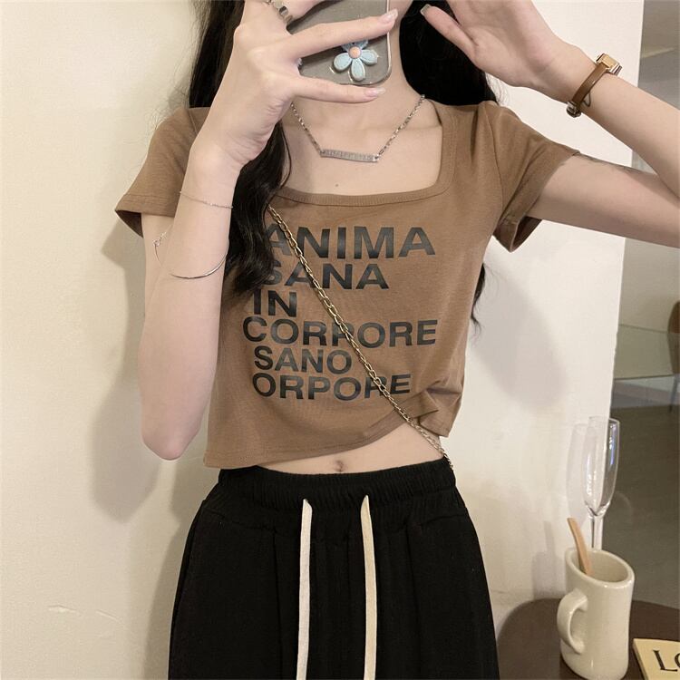 半袖 フロントショルダー tシャツ レディース 夏 フレンチ 鎖骨 スクエアカラー 小さめ シャツ アイン スタイル ハイエンド シック 個性的 薄手 ショート トップス サマー 夏物 スクウェア 7460067124167361 | framboise21