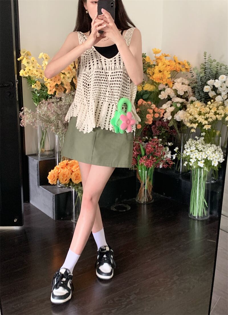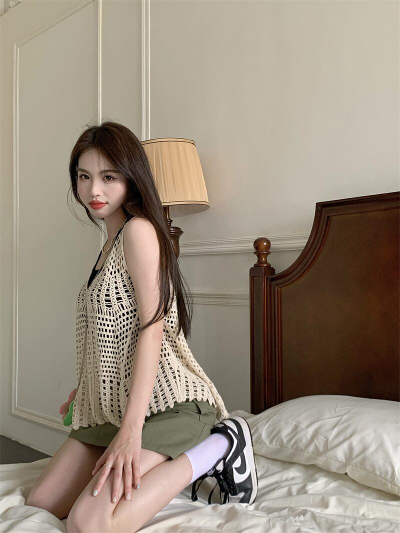 ボヘミアン風 ニット 中空 小さめ キャミソール レディース 夏 アウター ゆったり ノースリーブ トップス レディース ネット 赤 ブラウス レッド サマー 夏物 7460040283831201 | framboise21