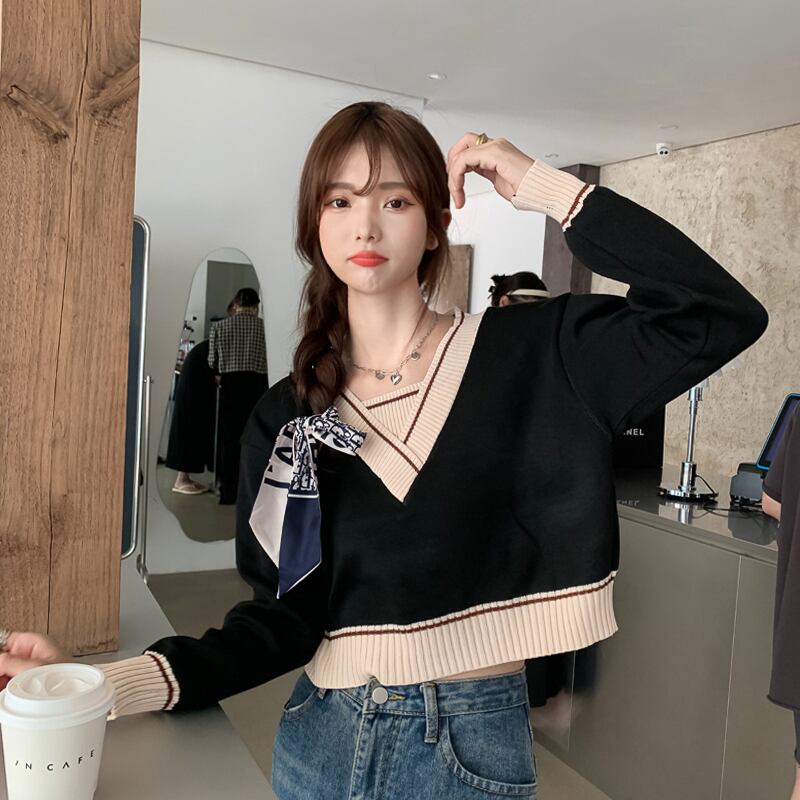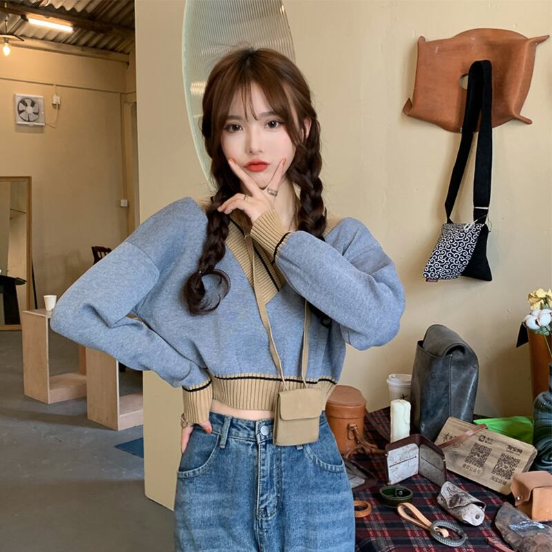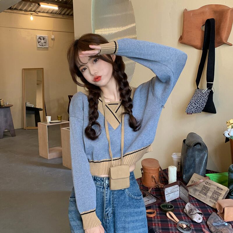 モリ レディース Vネック ニット 長袖 フロントショルダー Tシャツ レディース 初秋 ゆったり 個性的で小粋なデザイン感のショートトップス ロング オータム 秋物 7460057891813068 | framboise21